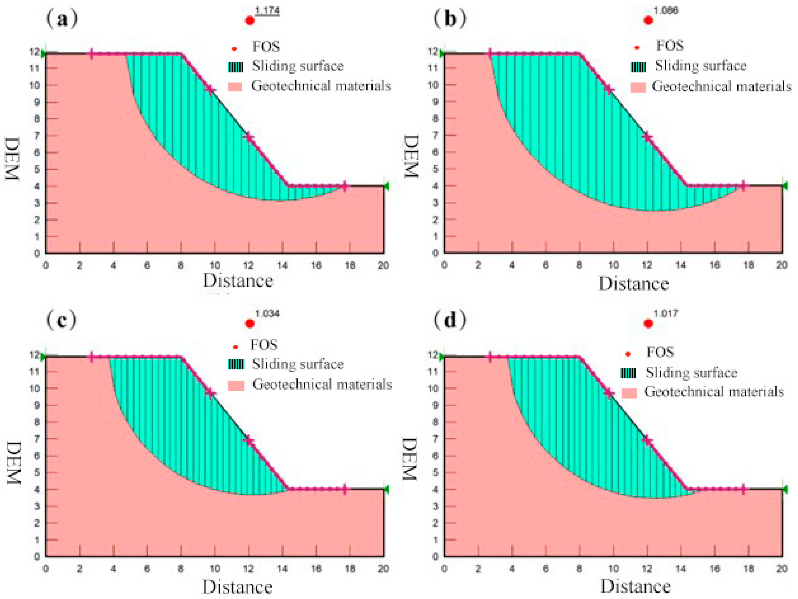- Griffiths, D.V.; Lane, P.A. Slope stability analysis by finite elements. Géotechnique 1999, 49, 387–403. [Google Scholar] [CrossRef]