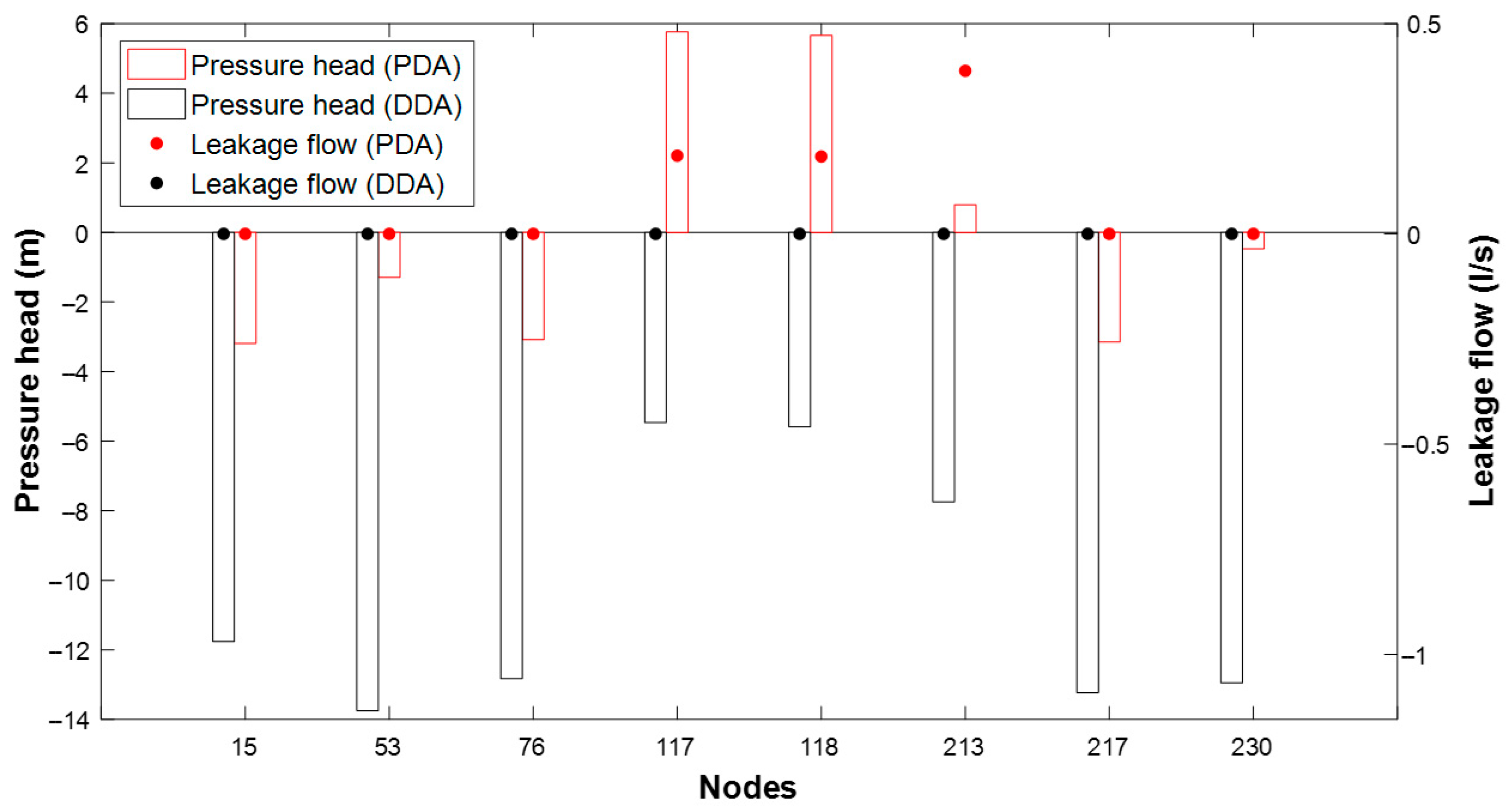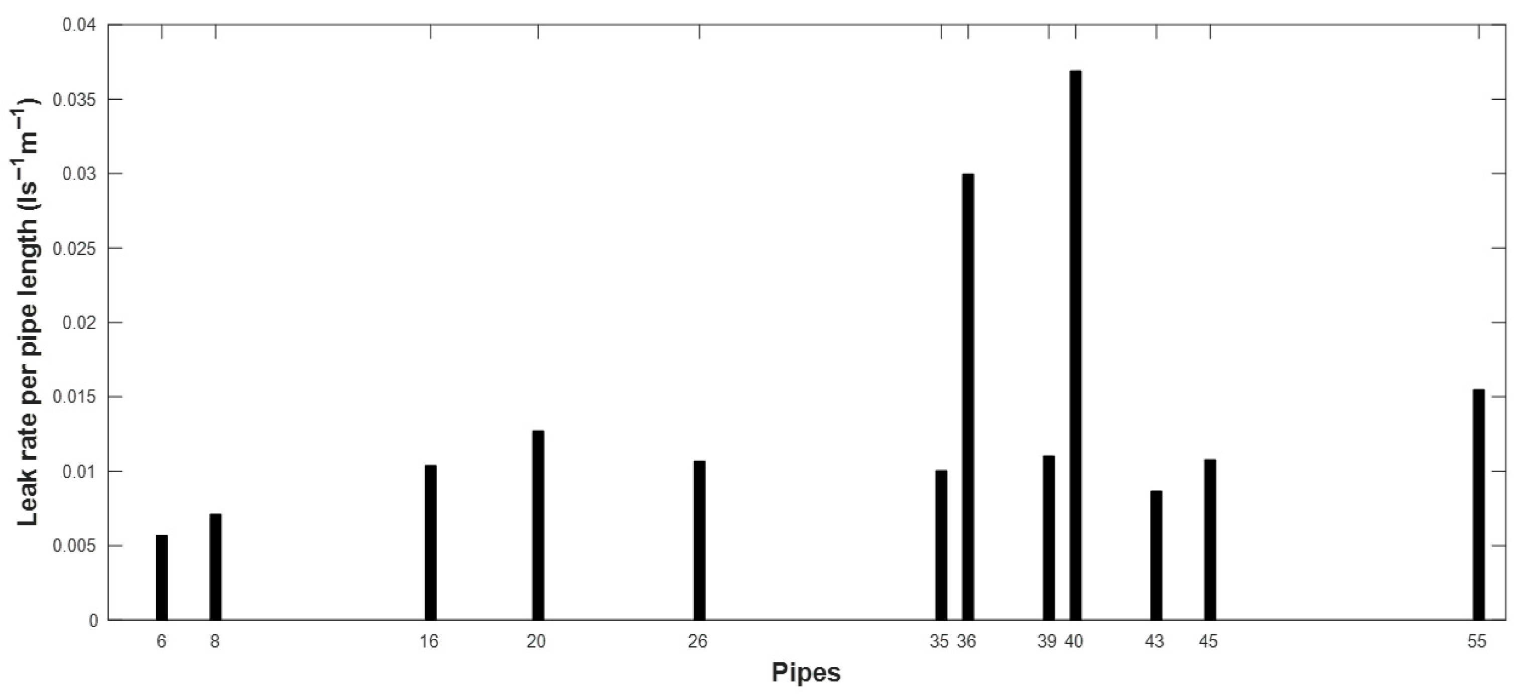 • For outputs related to pipes, the algorithm allows for evaluating leakage from each pipe separately, including cases where nodes are shared by multiple leaking pipes.