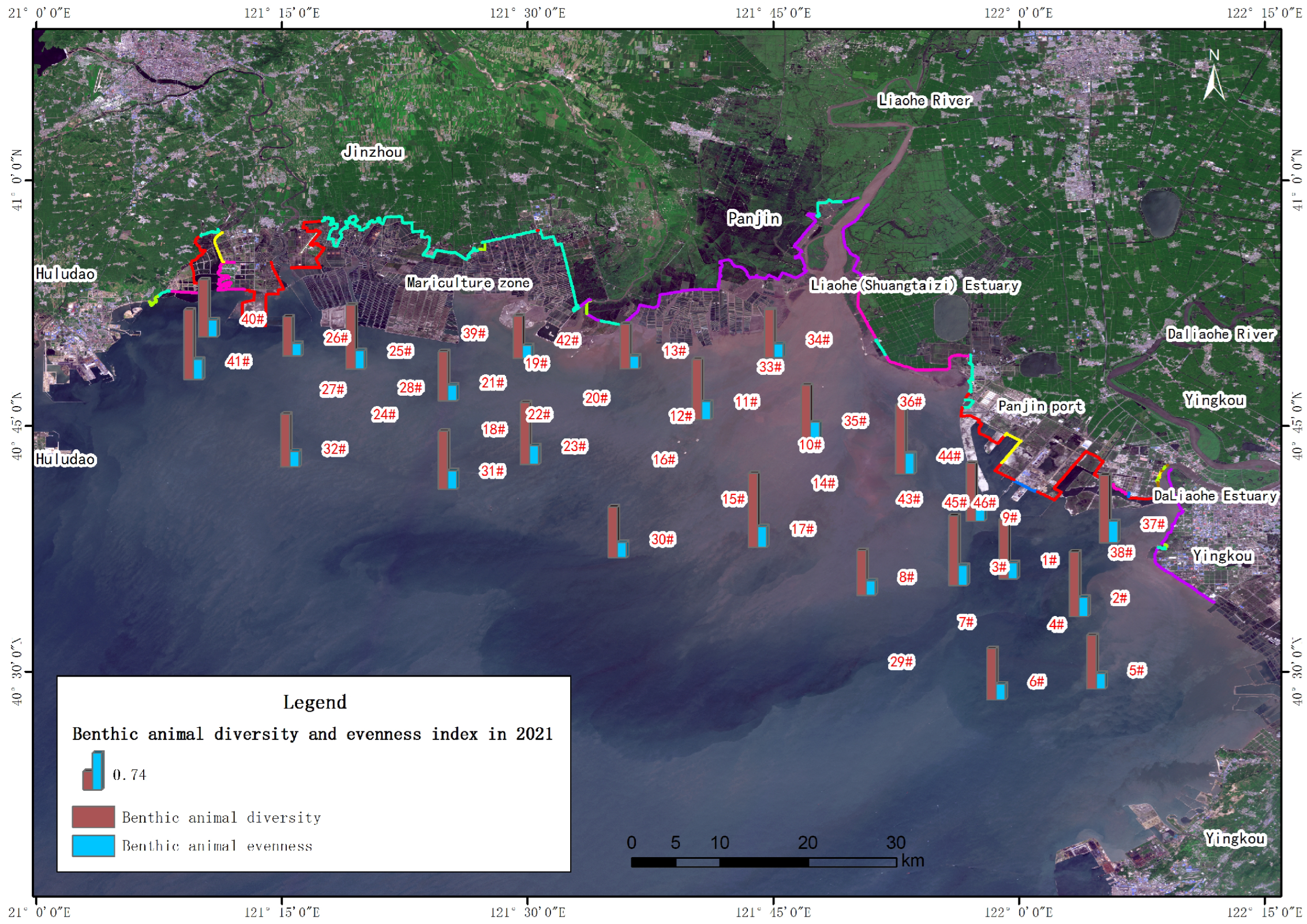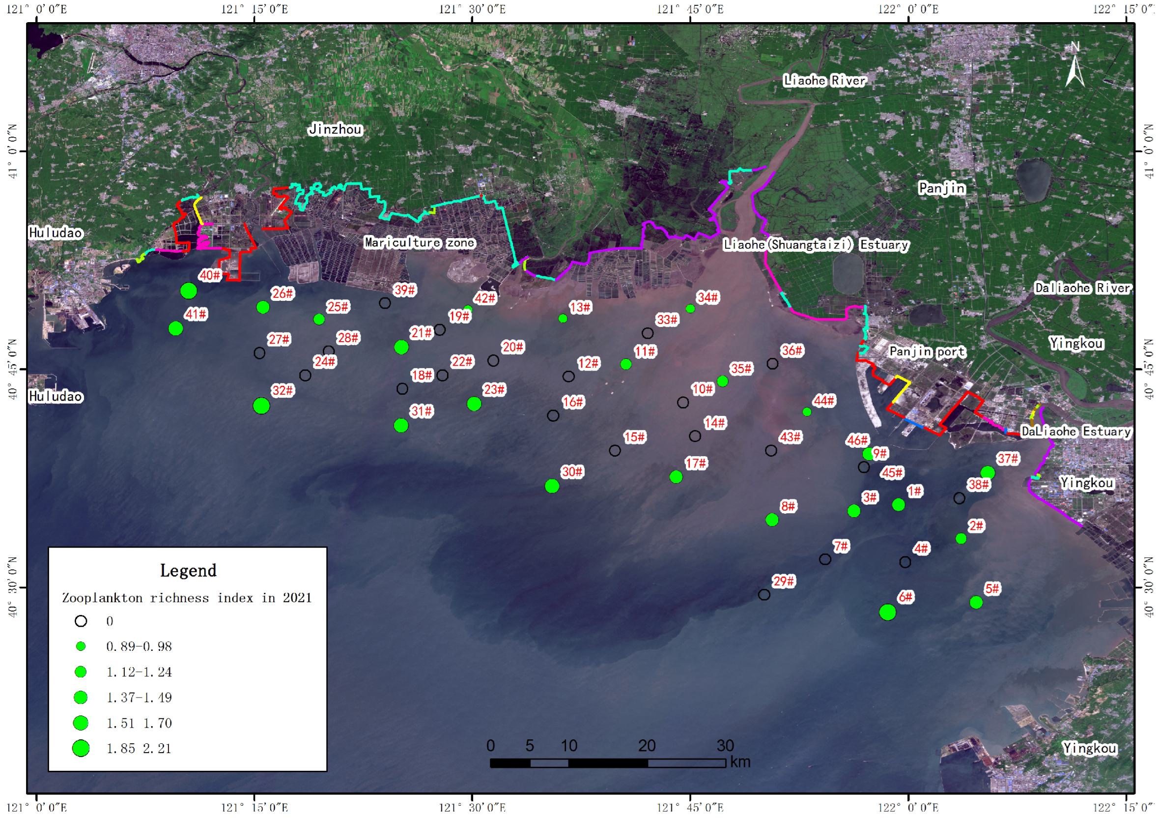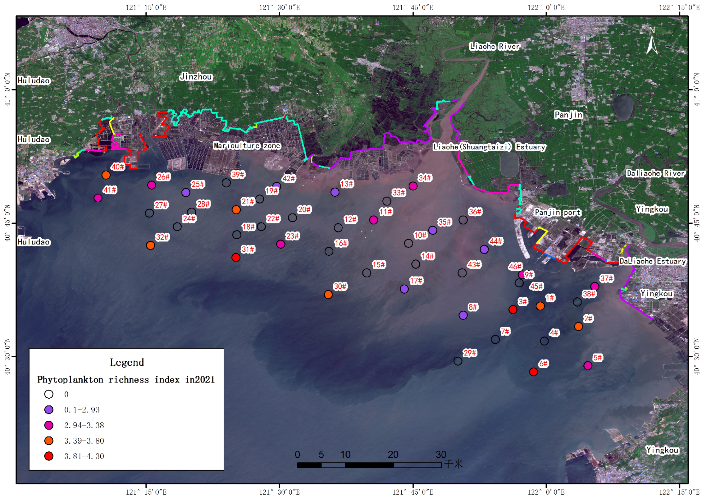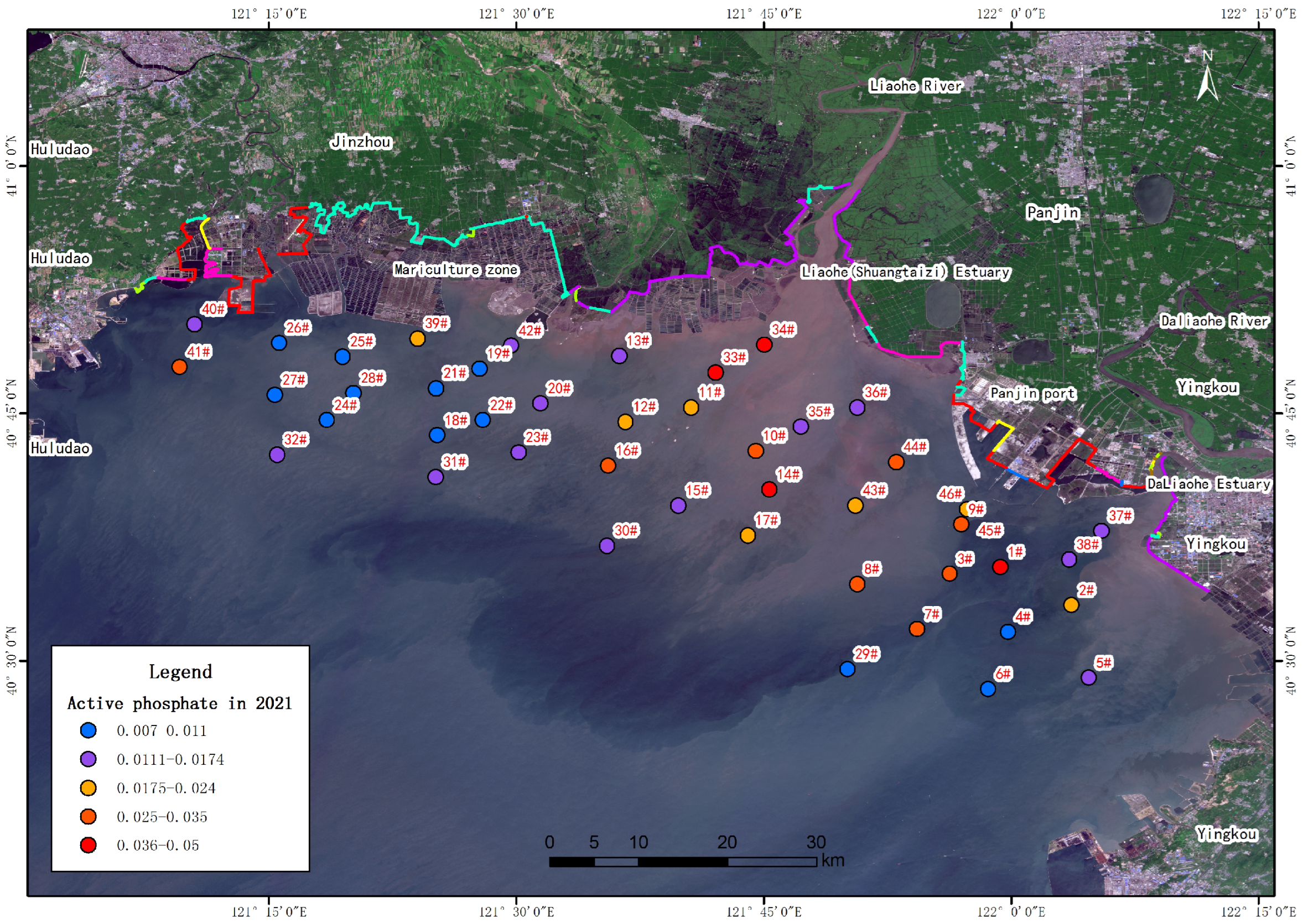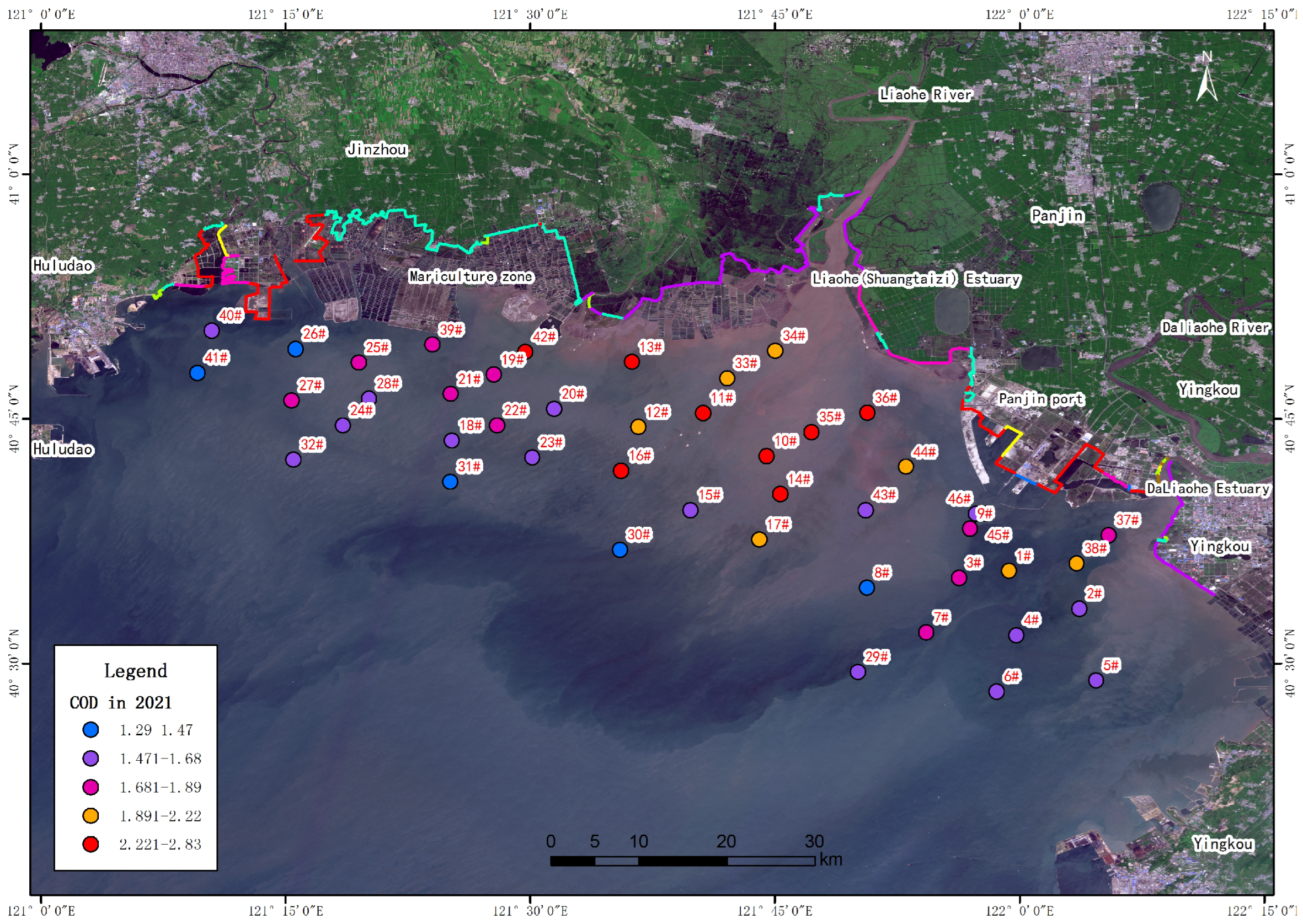 - The water quality in the coastal waters of Liaodong Bay is generally good, but the content of inorganic nitrogen generally exceeds the level specified in the standard. This is mainly related to urban industrial emissions in the Liaohe River Basin.