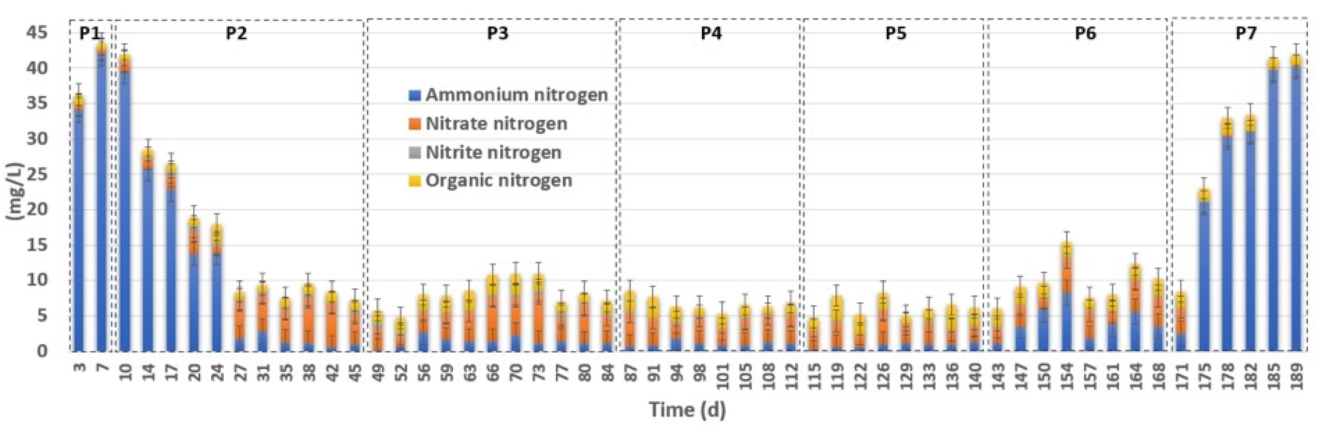 | Phases | Days | Concentration of Pollutants (mg/L) | |||||