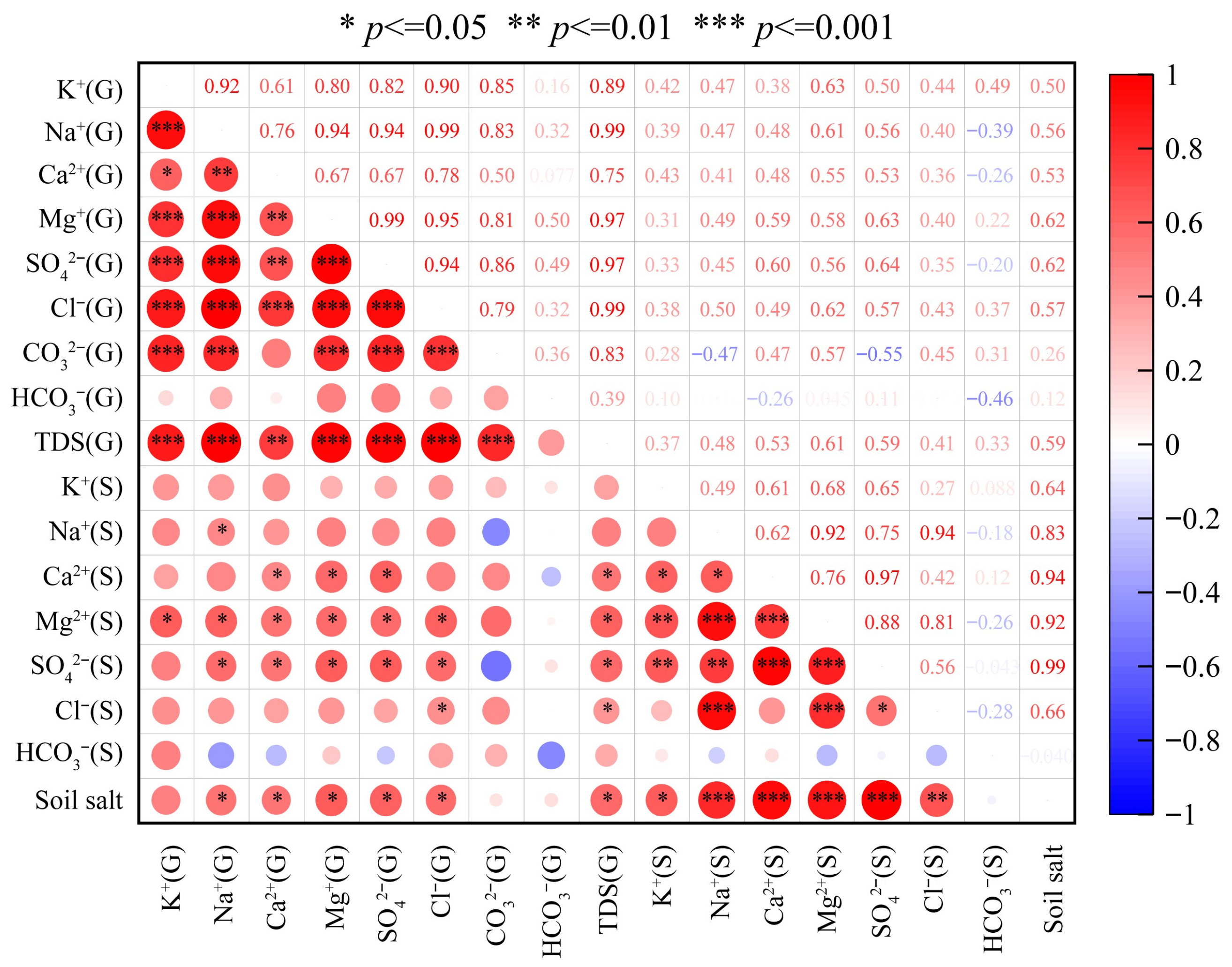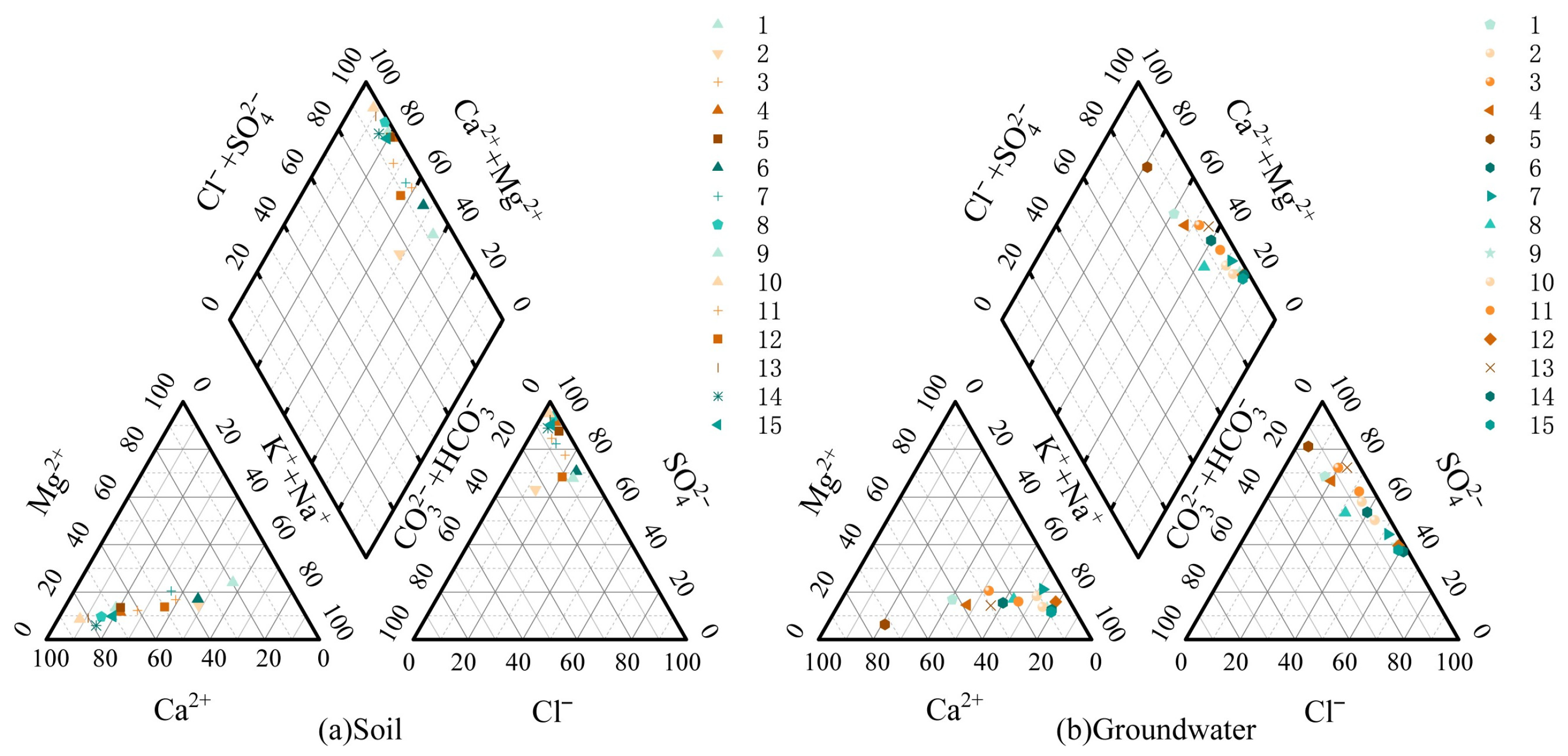 3.4. Salinity Composition and Correlation Between Soil and Groundwater in the Irrigation District