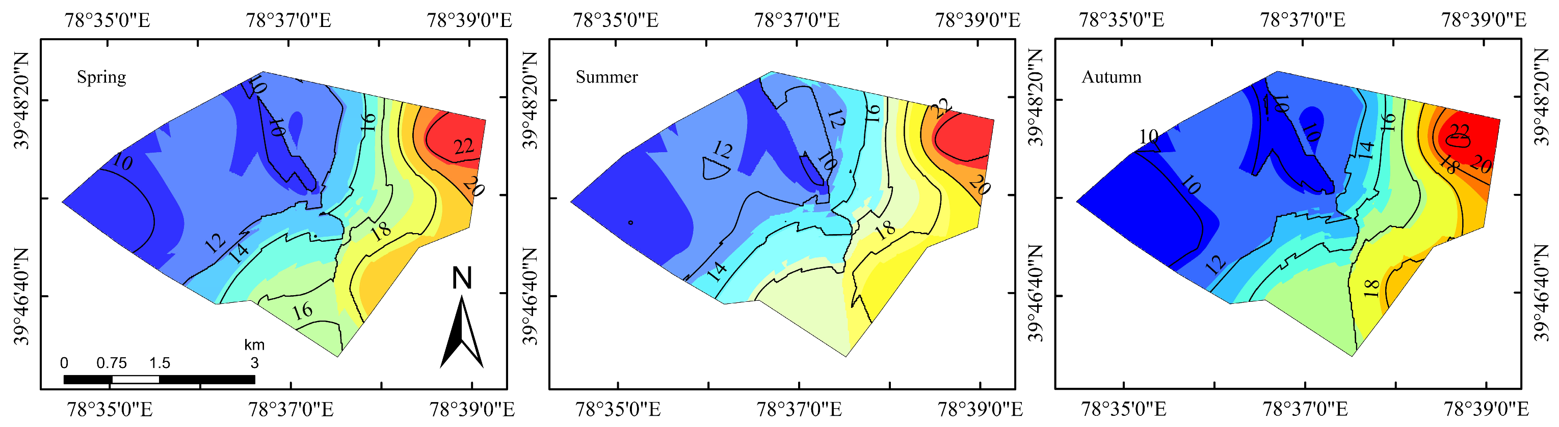 3.1. Seasonal Statistics of Soil Salinity in the Irrigation District