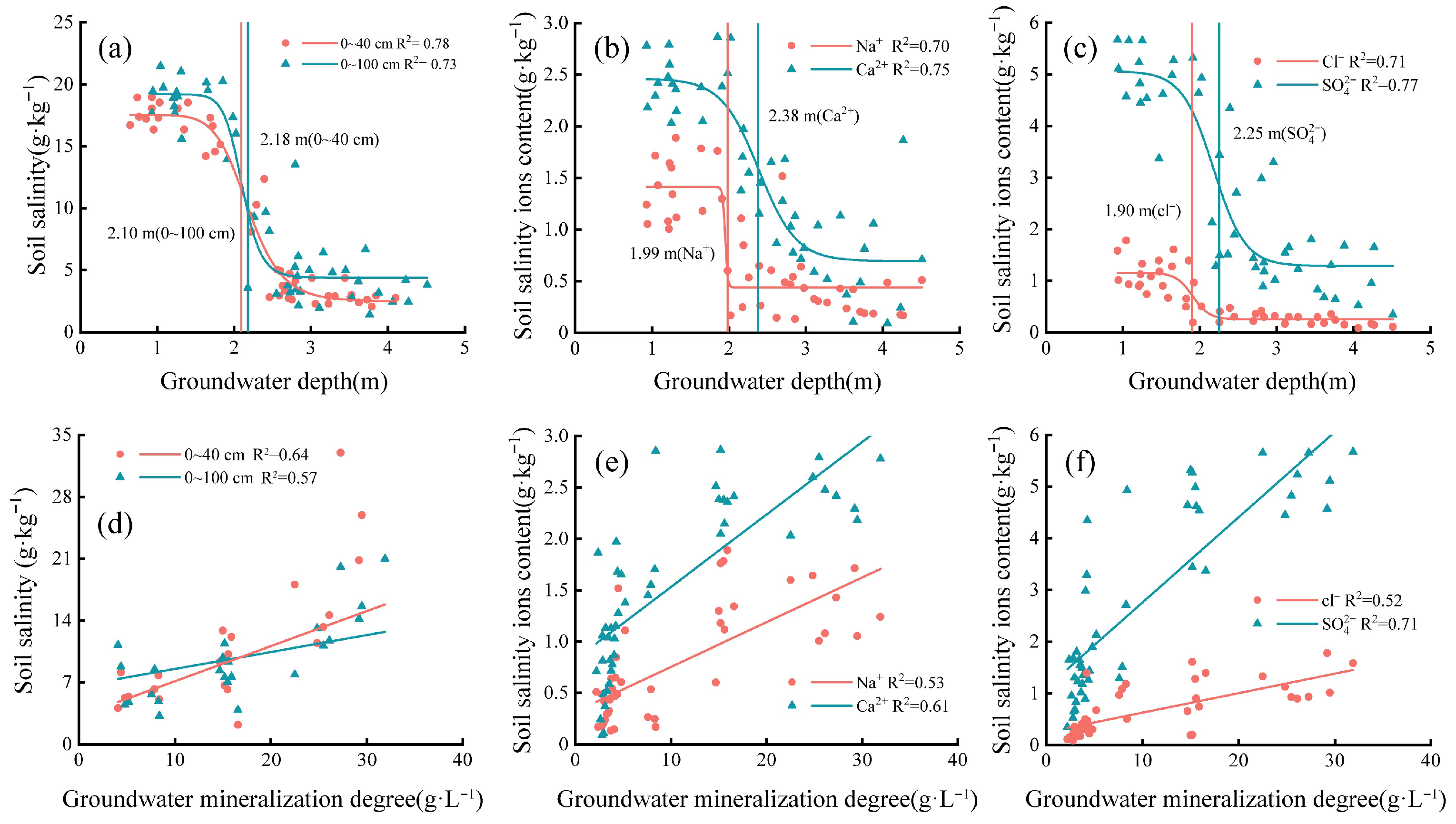 4.2. Spatiotemporal Distribution Patterns of Groundwater Depth, Soil Salinity, and Mineralization and Their Interrelationships