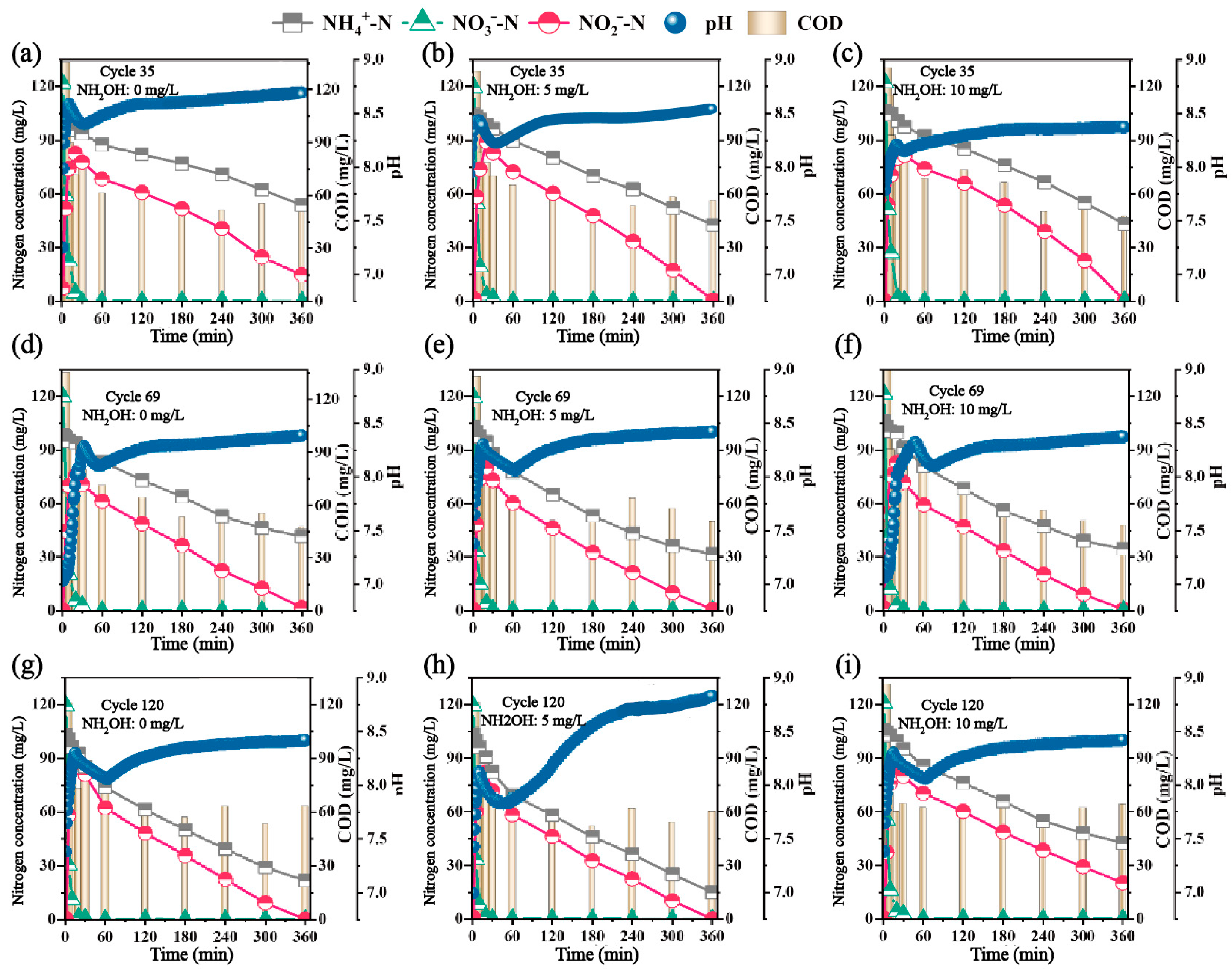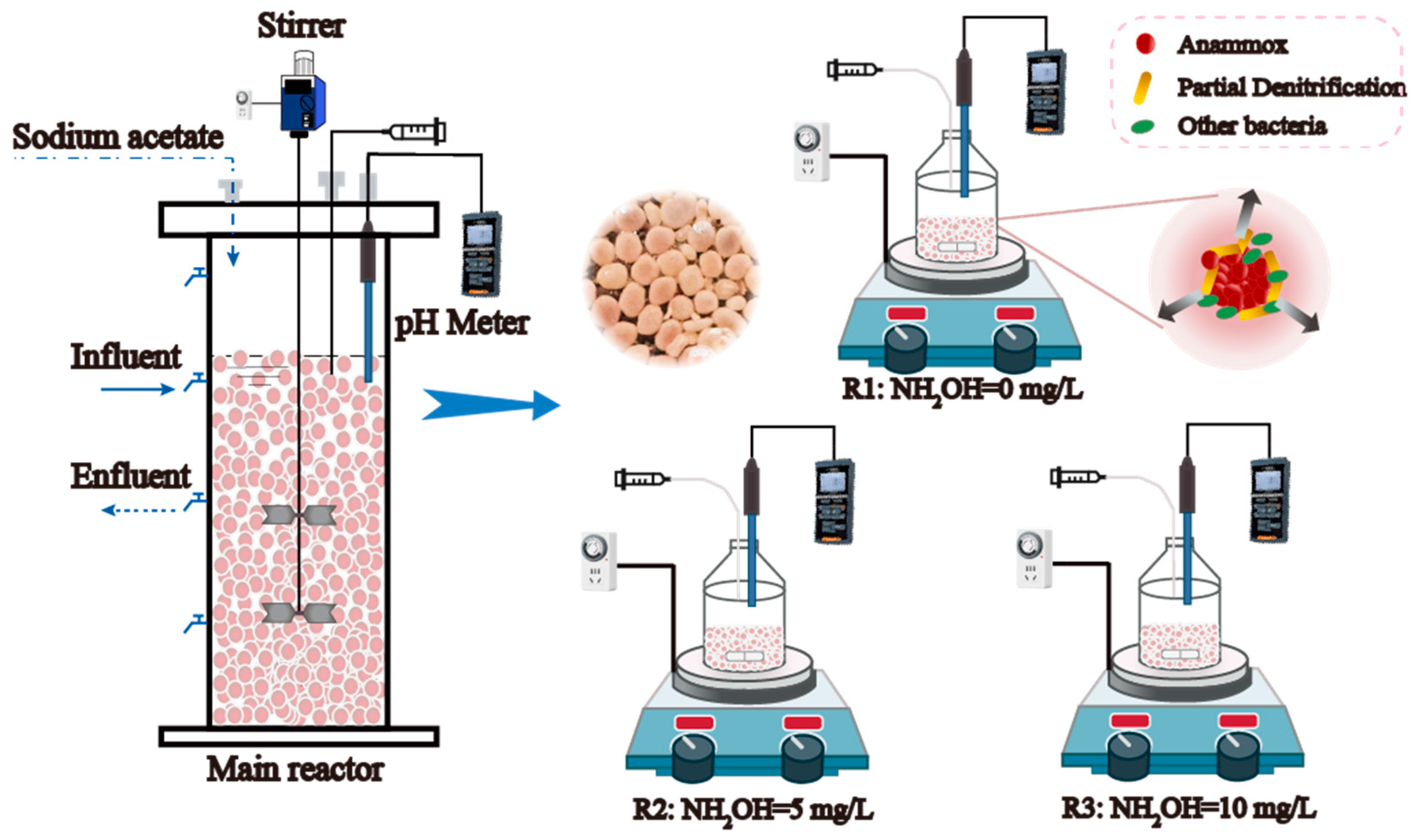 - Su, X.; Li, J.; Peng, Y.; Yuan, Y.; Wu, L.; Peng, Y. An Overlooked Effect of Hydroxylamine on Anammox Granular Sludge: Promoting Granulation and Boosting Activity. Sci. Total Environ. 2024, 921, 171176. [Google Scholar] [CrossRef]