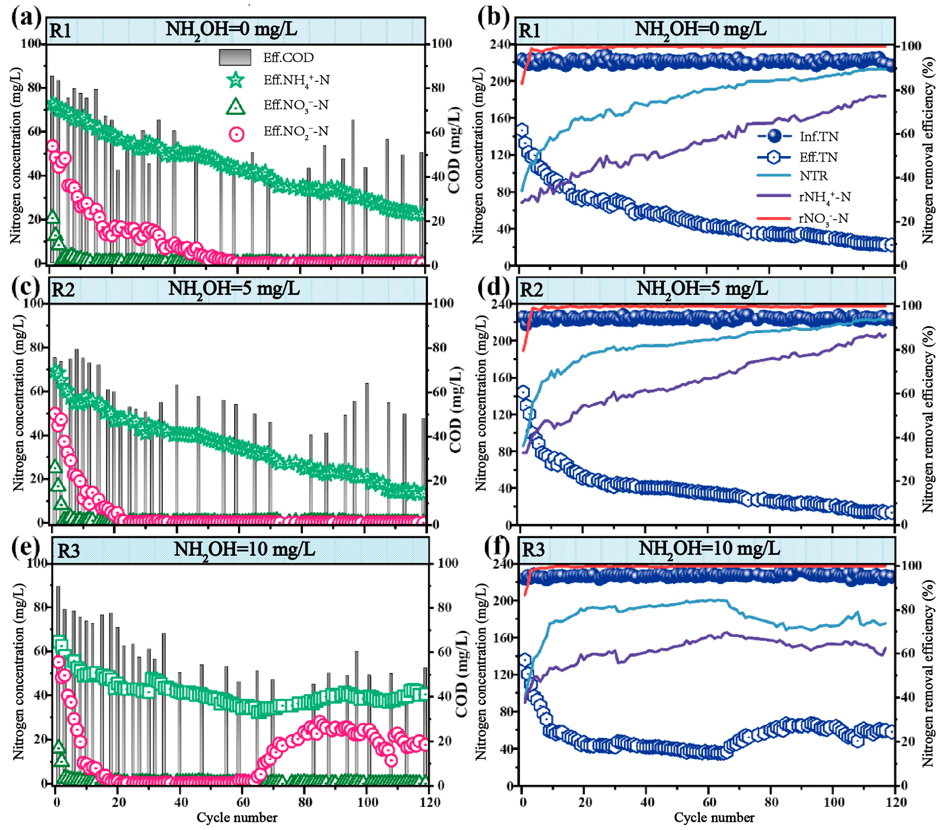3.1. Effects of Hydroxylamine Exposure on Microbial Activities of Salinity-Inhibited PD/A Biomass