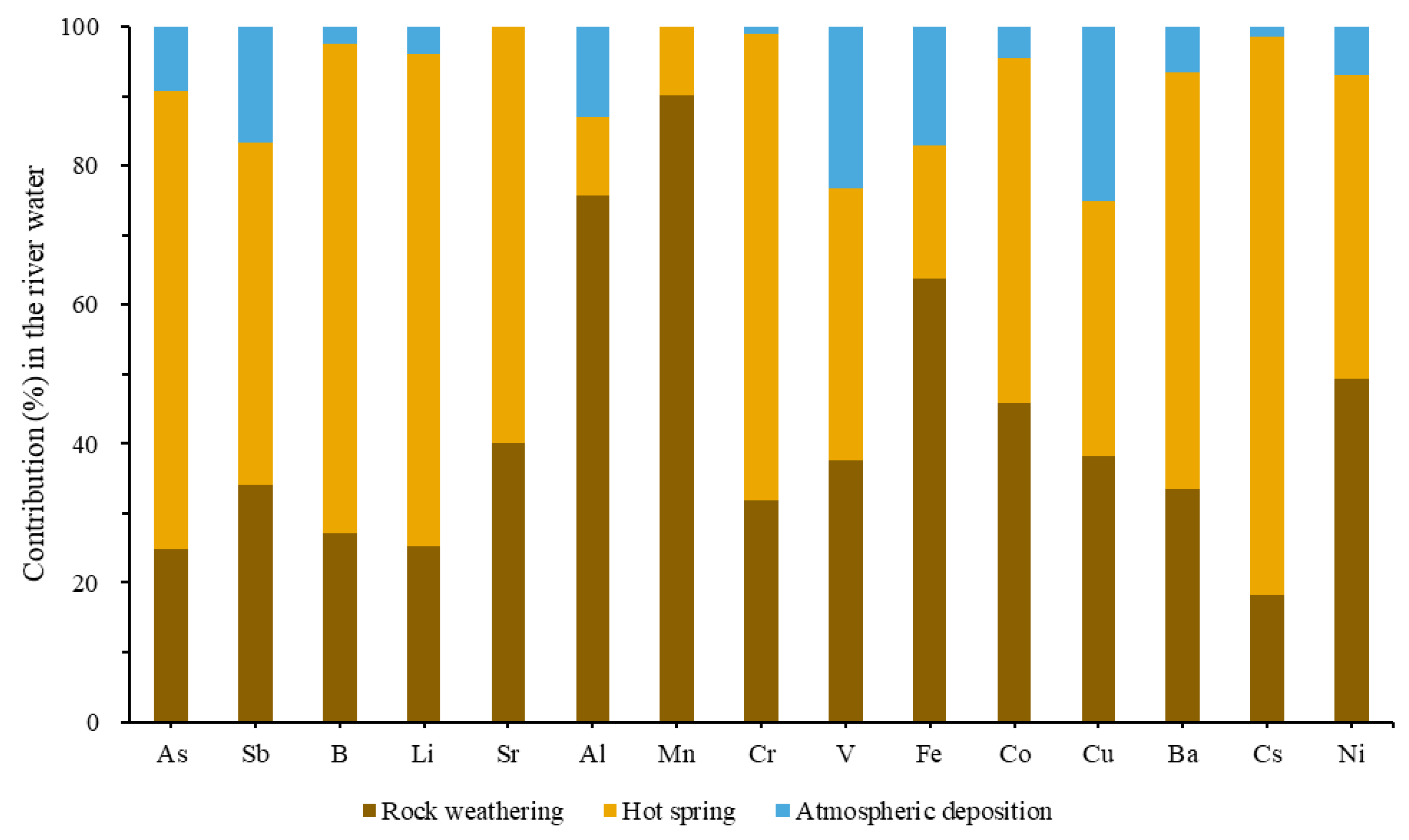 - Li, C.; Kang, S.; Chen, P.; Zhang, Q.; Mi, J.; Gao, S.; Sillanpää, M. Geothermal spring causes arsenic contamination in river waters of the southern Tibetan Plateau, China. Environ. Earth Sci. 2014, 71, 4143–4148. [Google Scholar] [CrossRef]