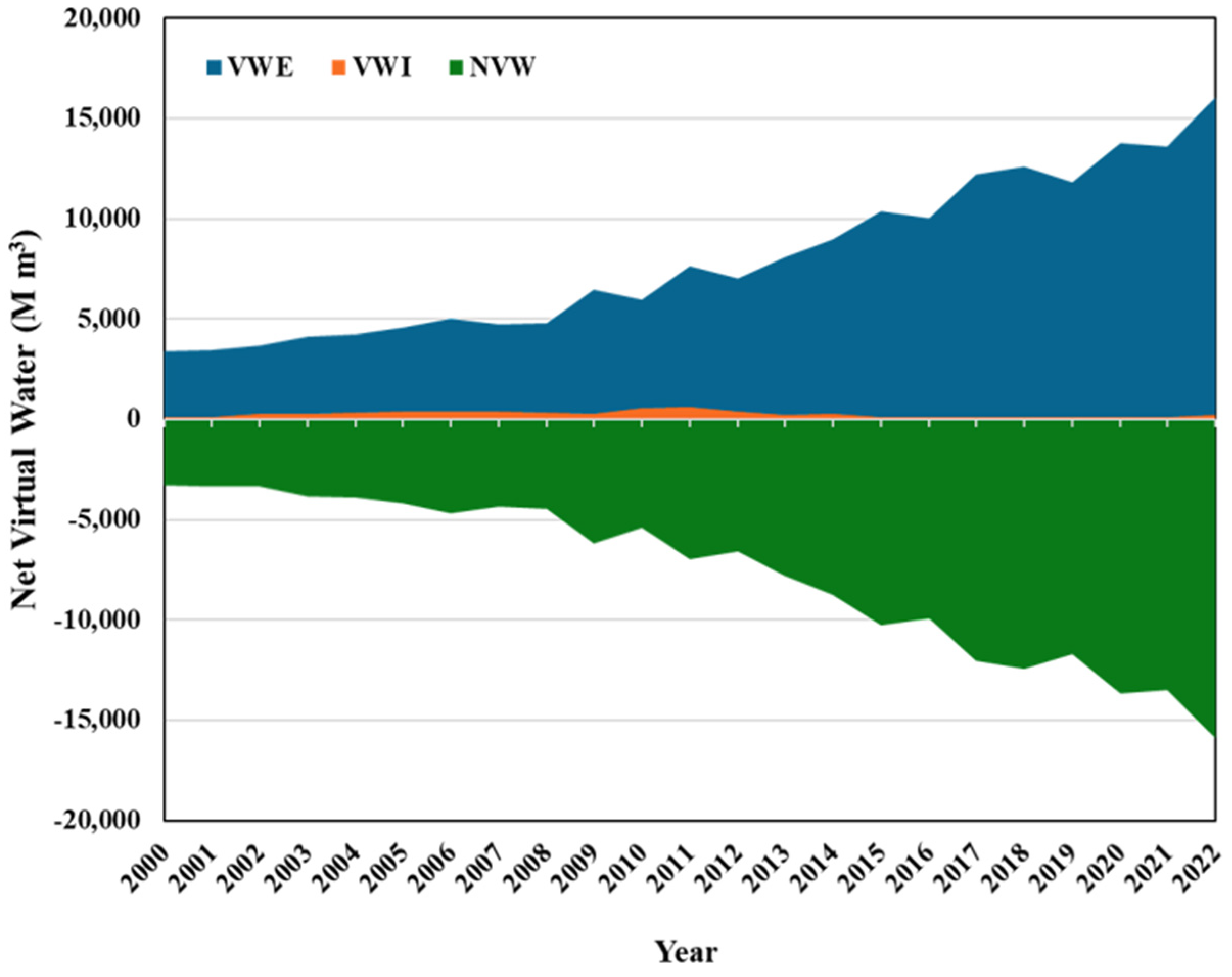 - Zhang, M.; Zhang, Y.; Tian, Q.; Man, X.; Wang, M. Virtual water flows and drivers in the international trade of agricultural products of the regional comprehensive economic partnership. Water Sci. Technol. 2024, 89, 730–744. [Google Scholar] [CrossRef]