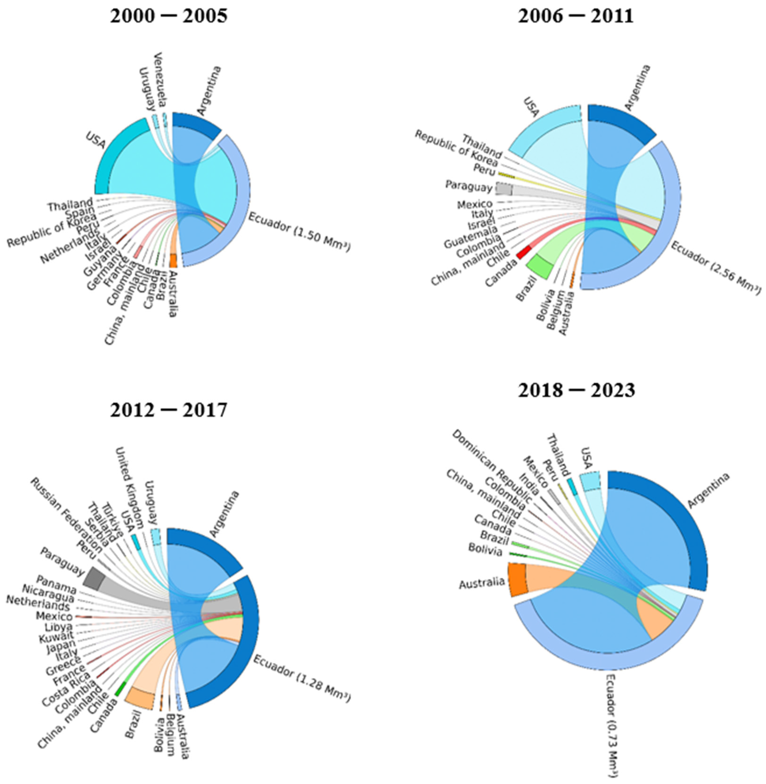 3.3. Principal Partner Countries in Ecuador’s Virtual Water Trade