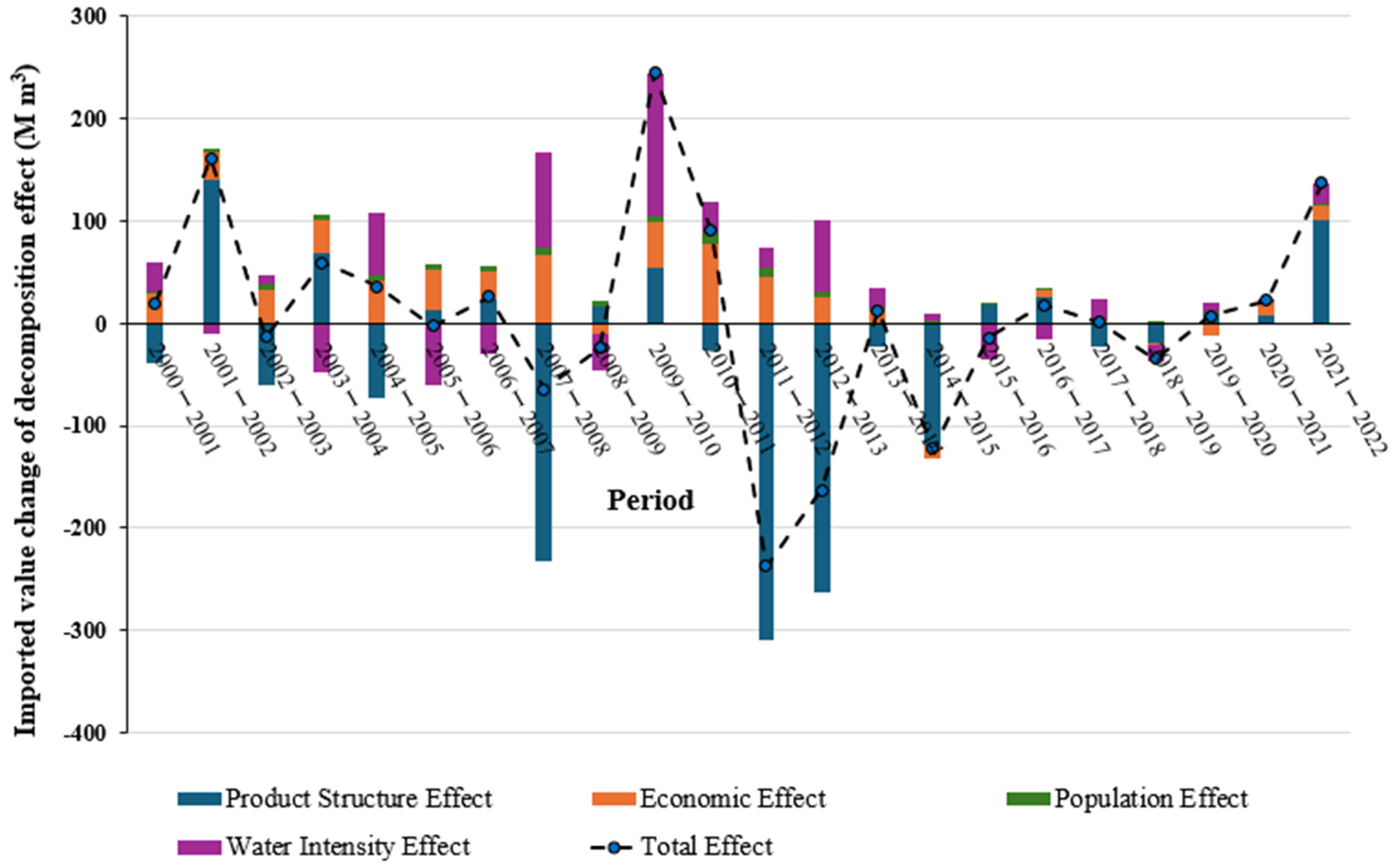 | Year | Product Structure | Economic Growth | Population | Water Intensity | Total Effect |