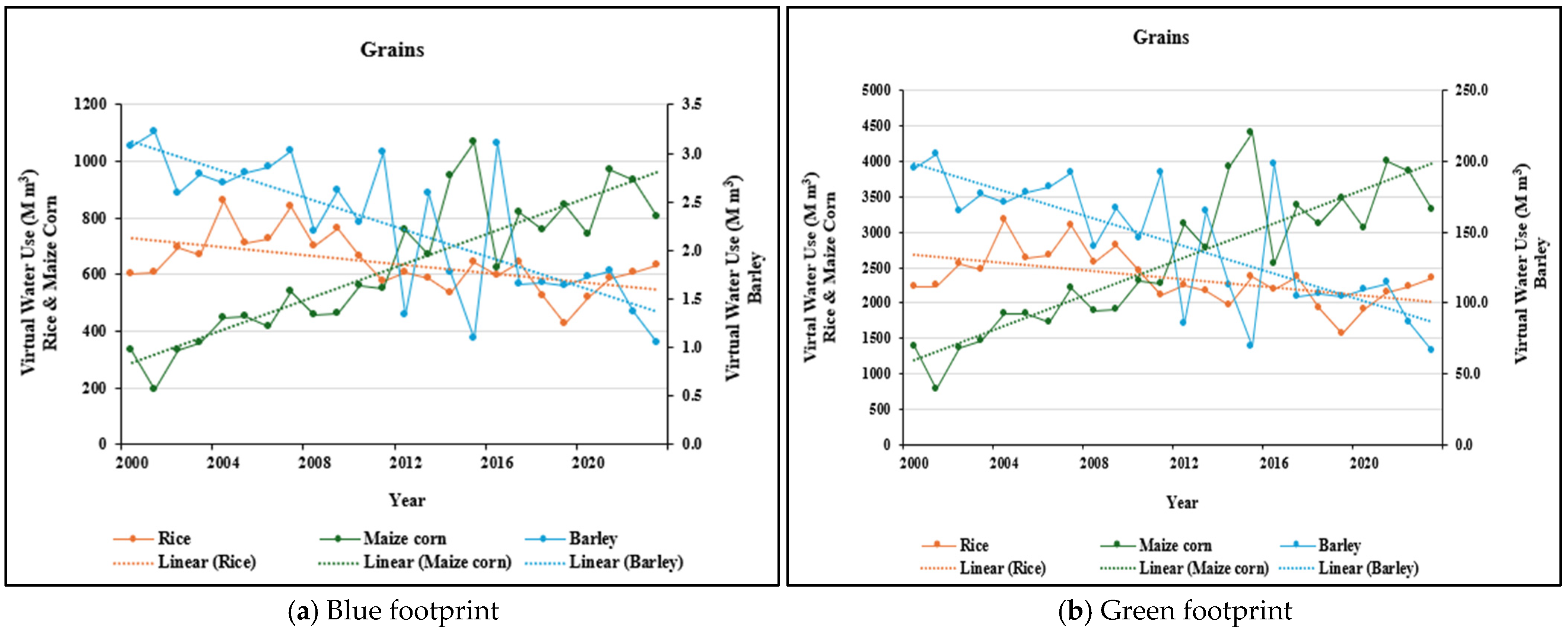 - Mekonnen, M.M.; Hoekstra, A.Y. The Green, Blue and Grey Water Footprint of Crops and Derived Crop Products Vol. 2. 2010. Available online: http://www.unesco-ihe.org/value-of-water-research-report-series (accessed on 26 August 2025).