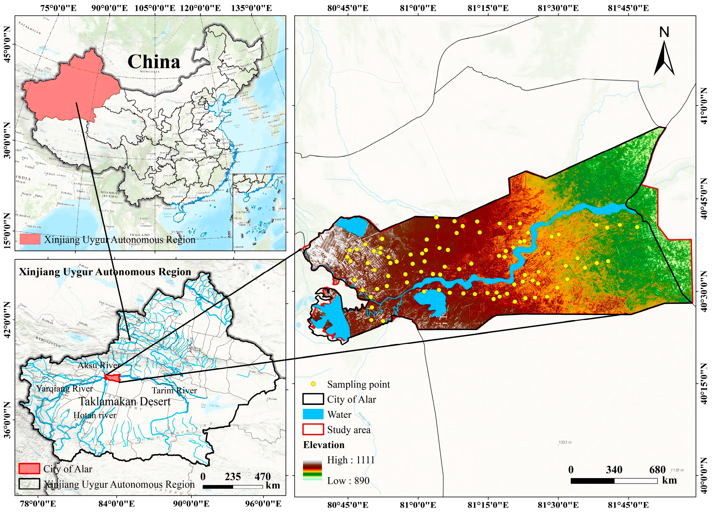 - Bai, J.D. The Study on Spatial Variability Characteristics of Soil Salinity and Management Zoning in Alar Reclamation Area. Master’s Thesis, Tarim University, Alar, China, 2023. [Google Scholar]