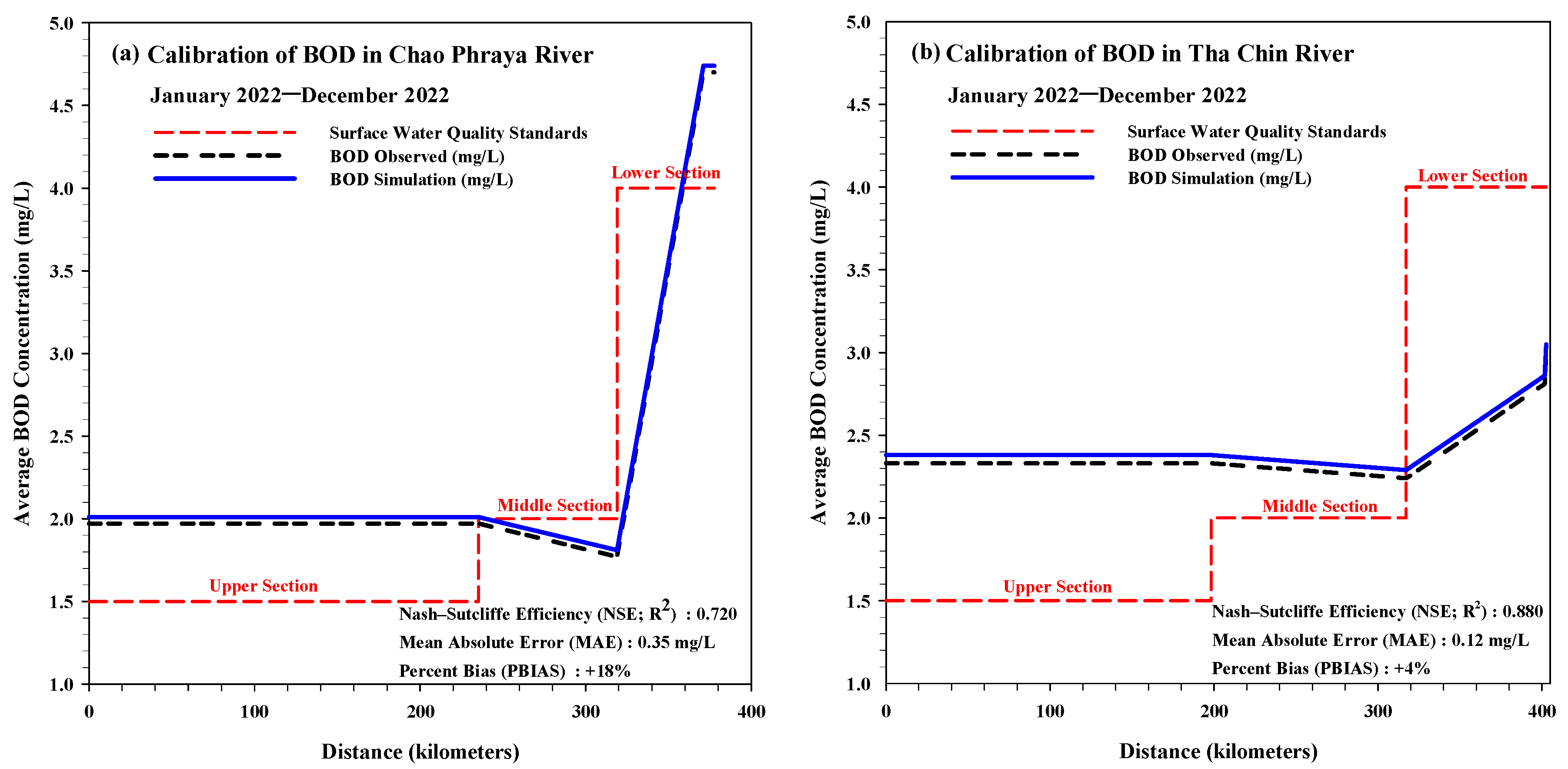 - Diffuse pollutant contributions are therefore implicitly represented through calibration against observed BOD concentrations, consistent with screening-level and TMDL-oriented modeling practice.