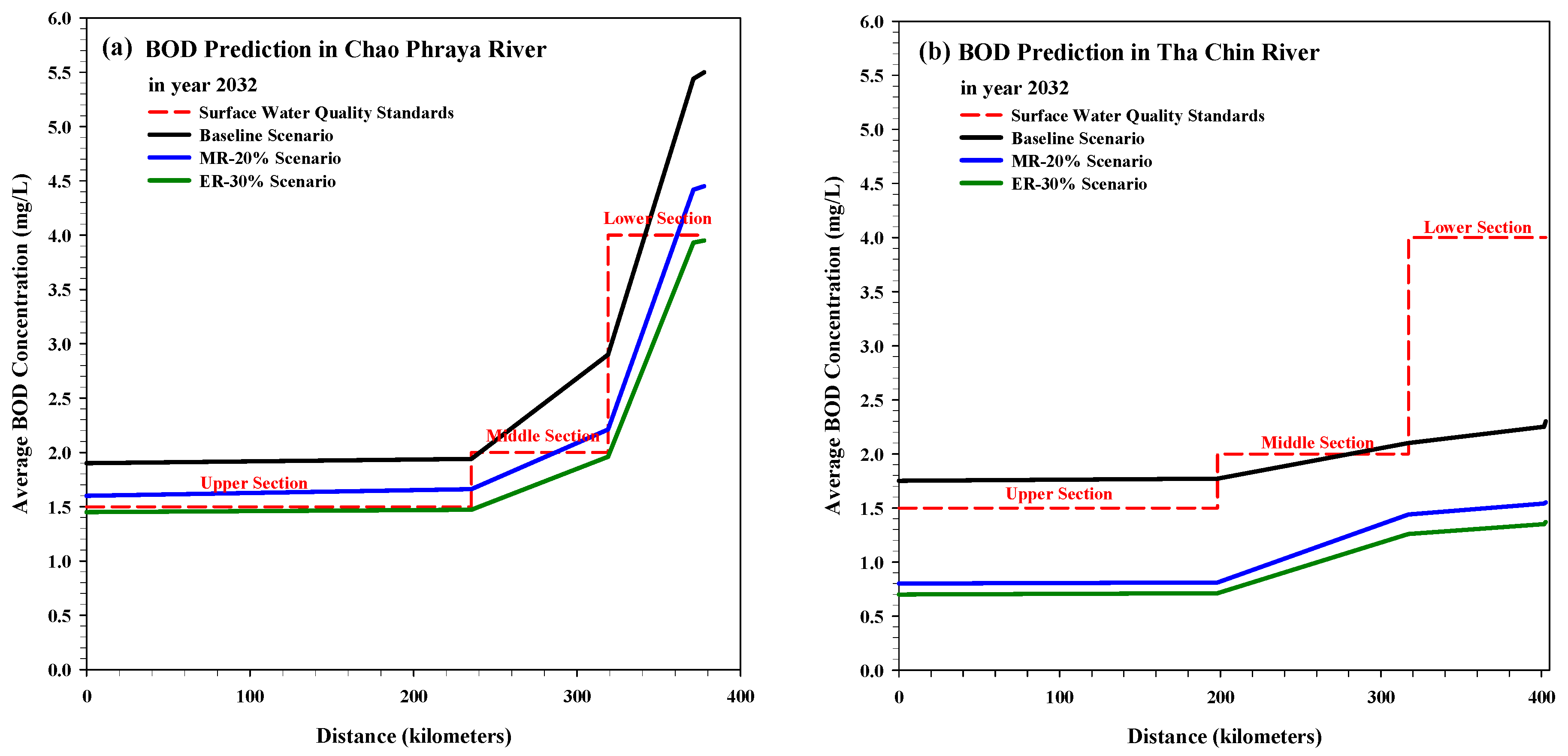 3.2. Scenario-Based BOD Simulation and Implications