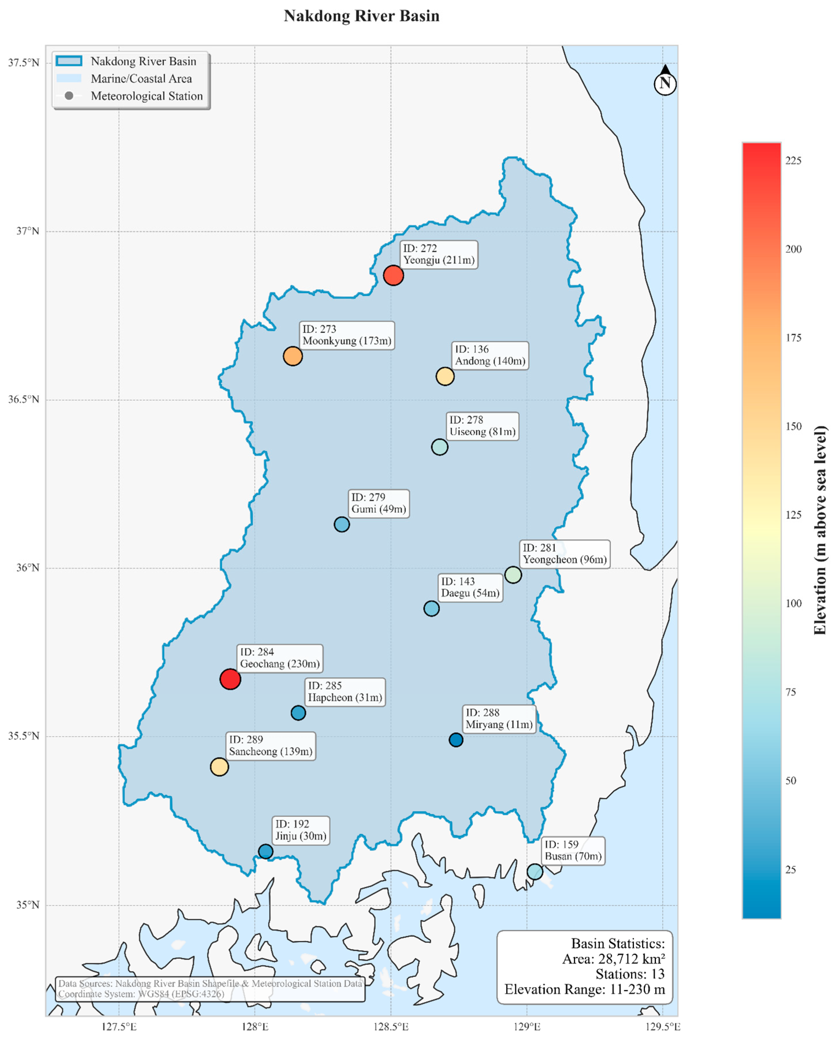 - Ha, J.Y.; Kim, S.M. Spatio-temporal Analysis of Potential Evapotranspiration and Precipitation for Nakdong River Basin. J. Korean Soc. Agric. Eng. 2025, 67, 45–54. [Google Scholar]