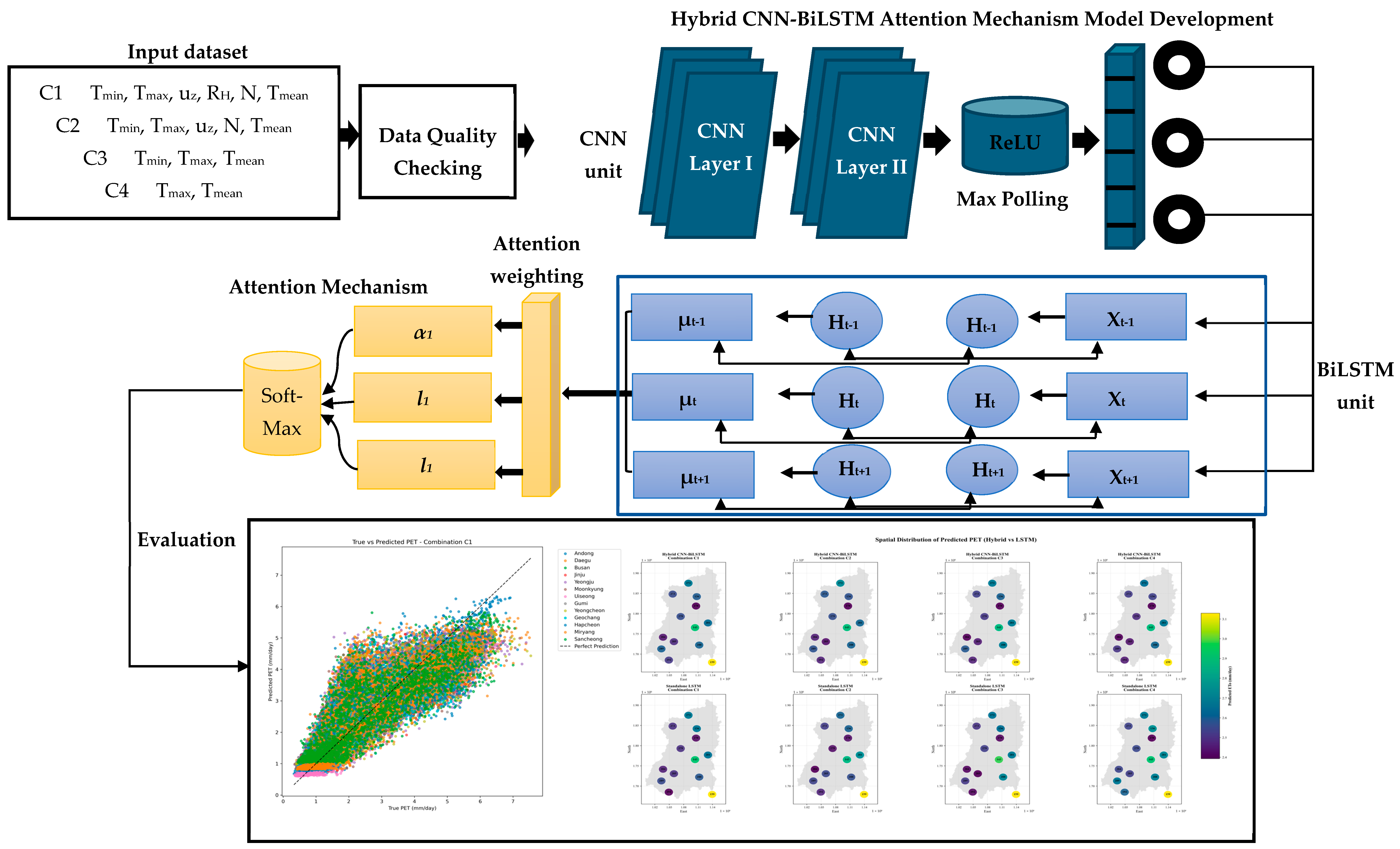 - Li, M.; Zhou, Q.; Han, X.; Lv, P. Prediction of reference crop evapotranspiration based on improved convolutional neural network (CNN) and long short-term memory network (LSTM) models in Northeast China. J. Hydrol. 2024, 645, 132223. [Google Scholar] [CrossRef]