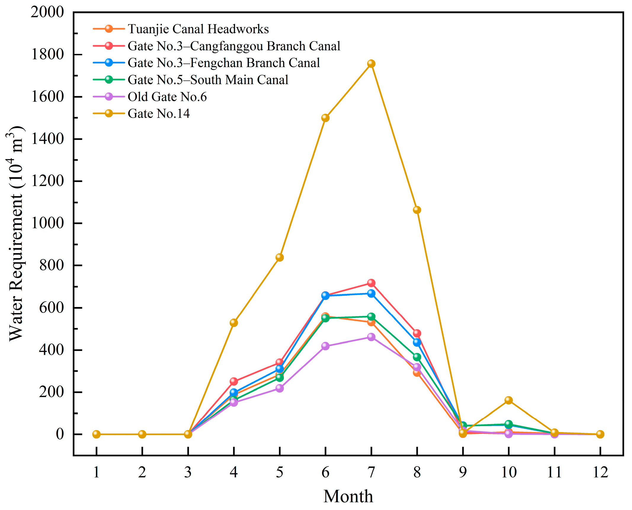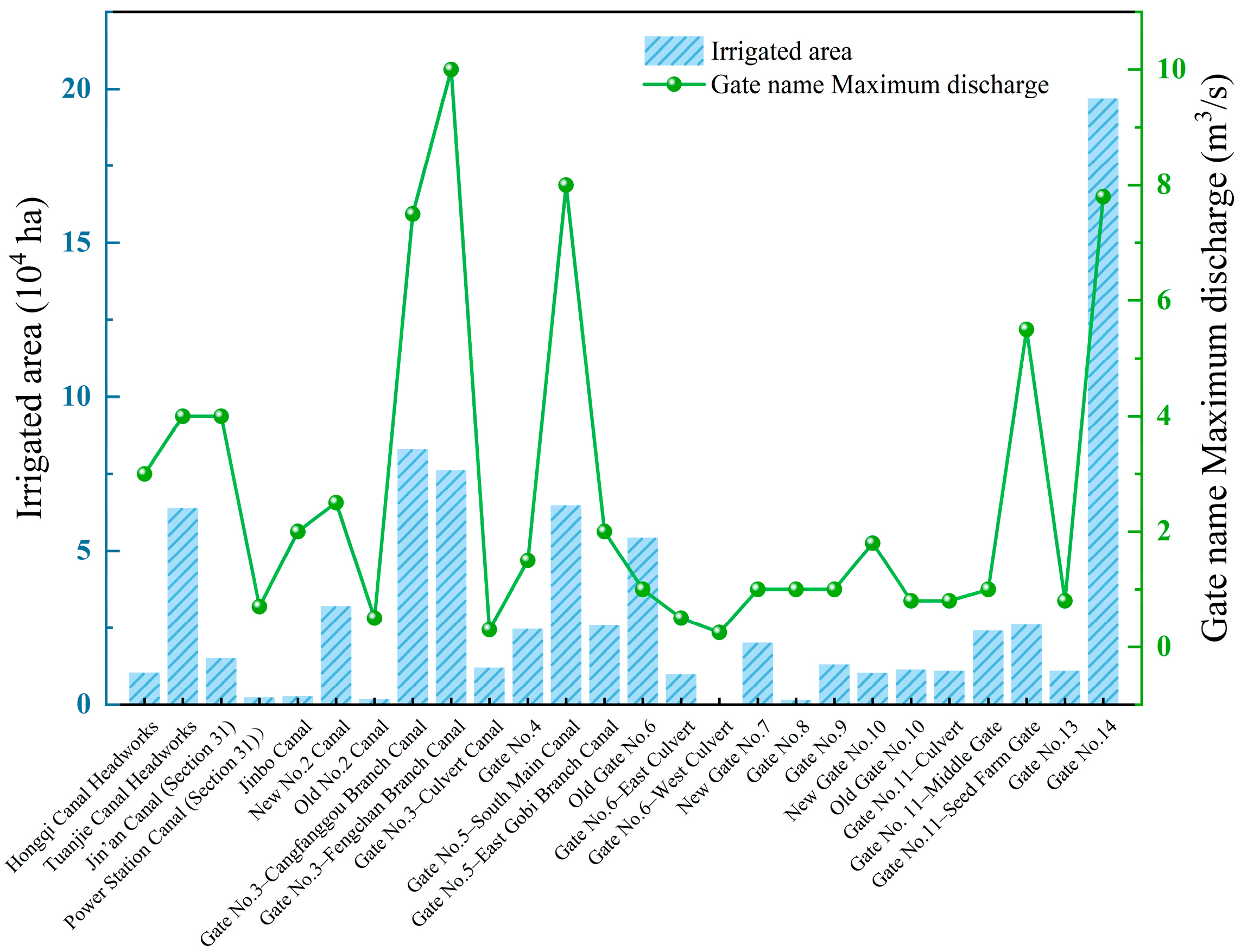 2.3.3. Gate Capacities and Irrigation Service Areas