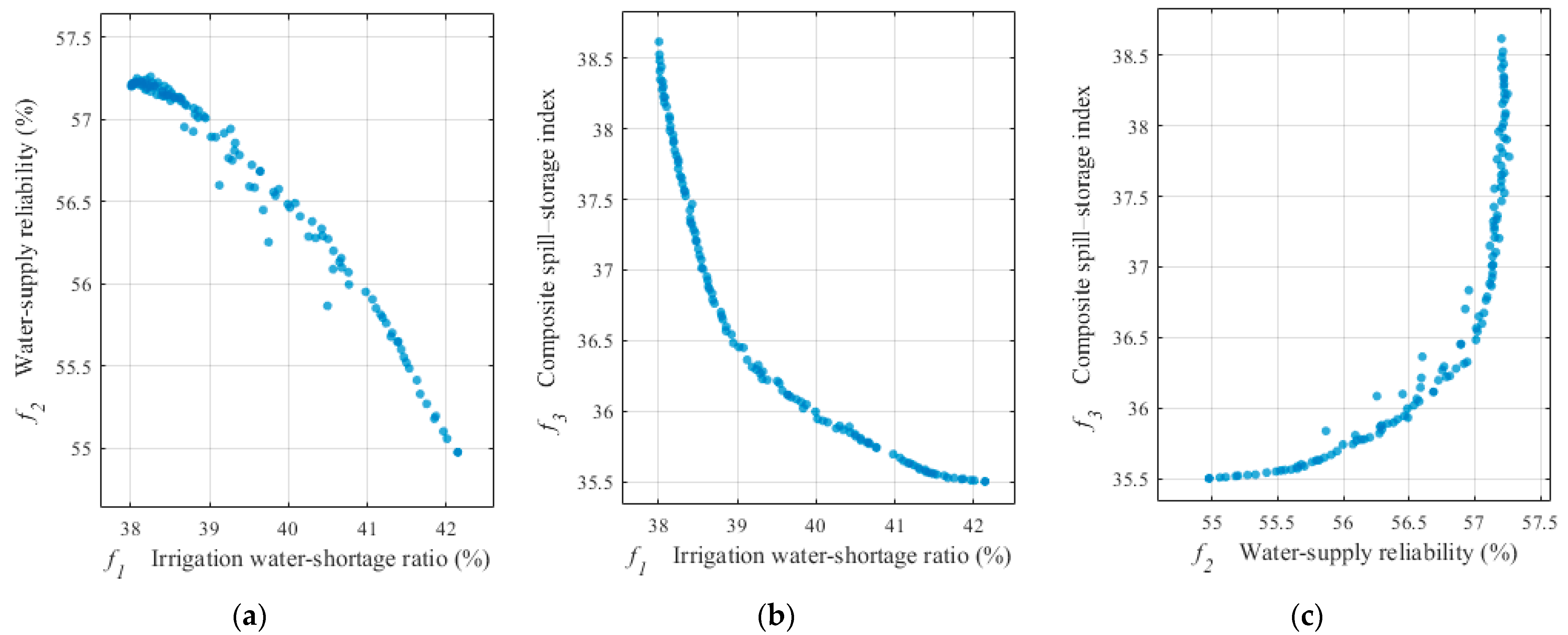 - Chen, S.L.; Peng, Y.X.; Han, D.C. Coupling MOEA and grey correlation for reservoir multi-objective decision-making. Water Sci. Eng. 2020, 13, 129–142. [Google Scholar]