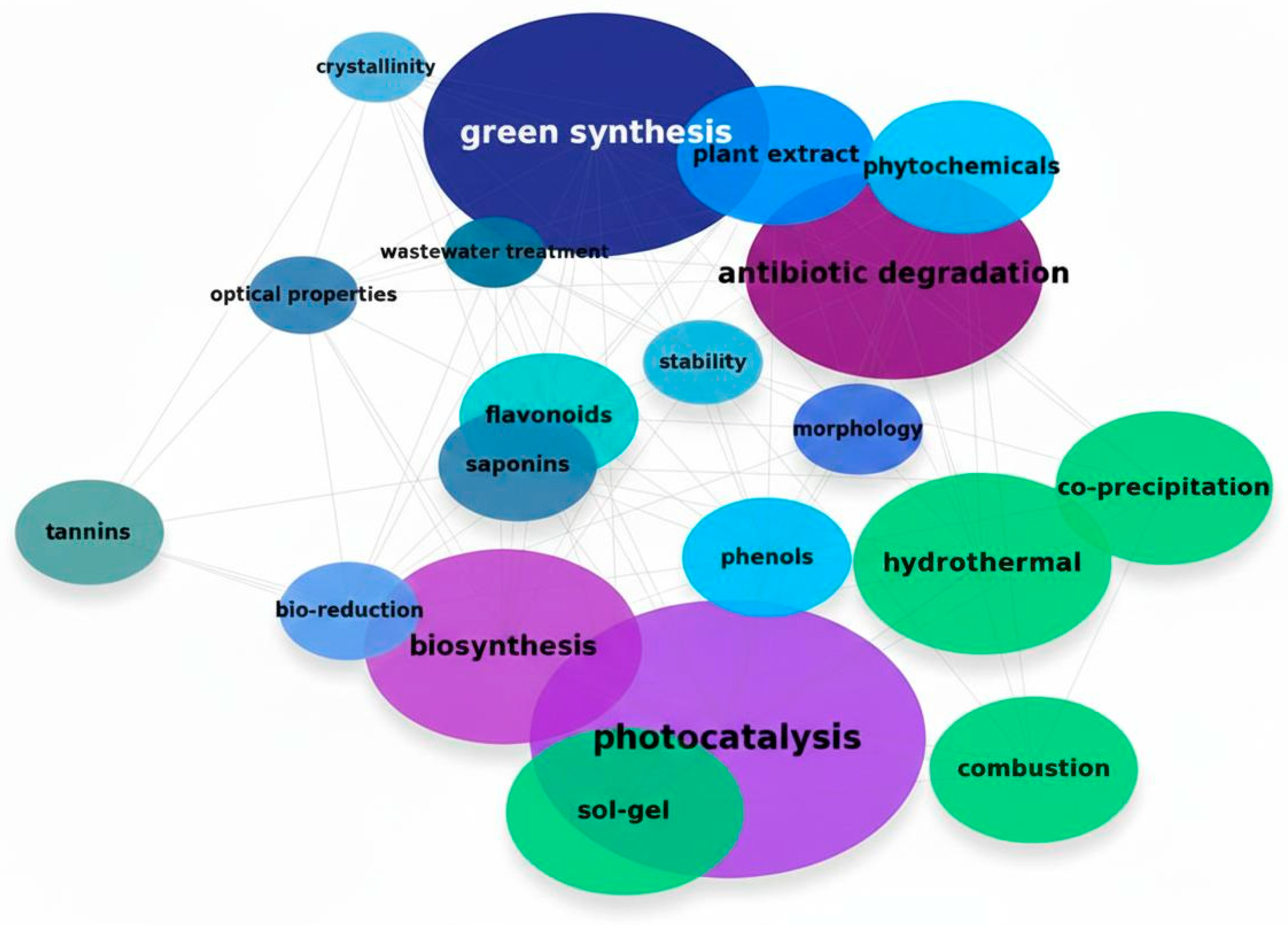 | [38] | Green synthesis of ZnO: Effect of plant concentration on the morphology, optical properties and photodegradation of dyes and antibiotics in wastewater | ZnO nanoparticles (Commellina benghalensis) | Sol–gel/C. benghalensis extract | Sulfisoxazole | UV light | 46 |