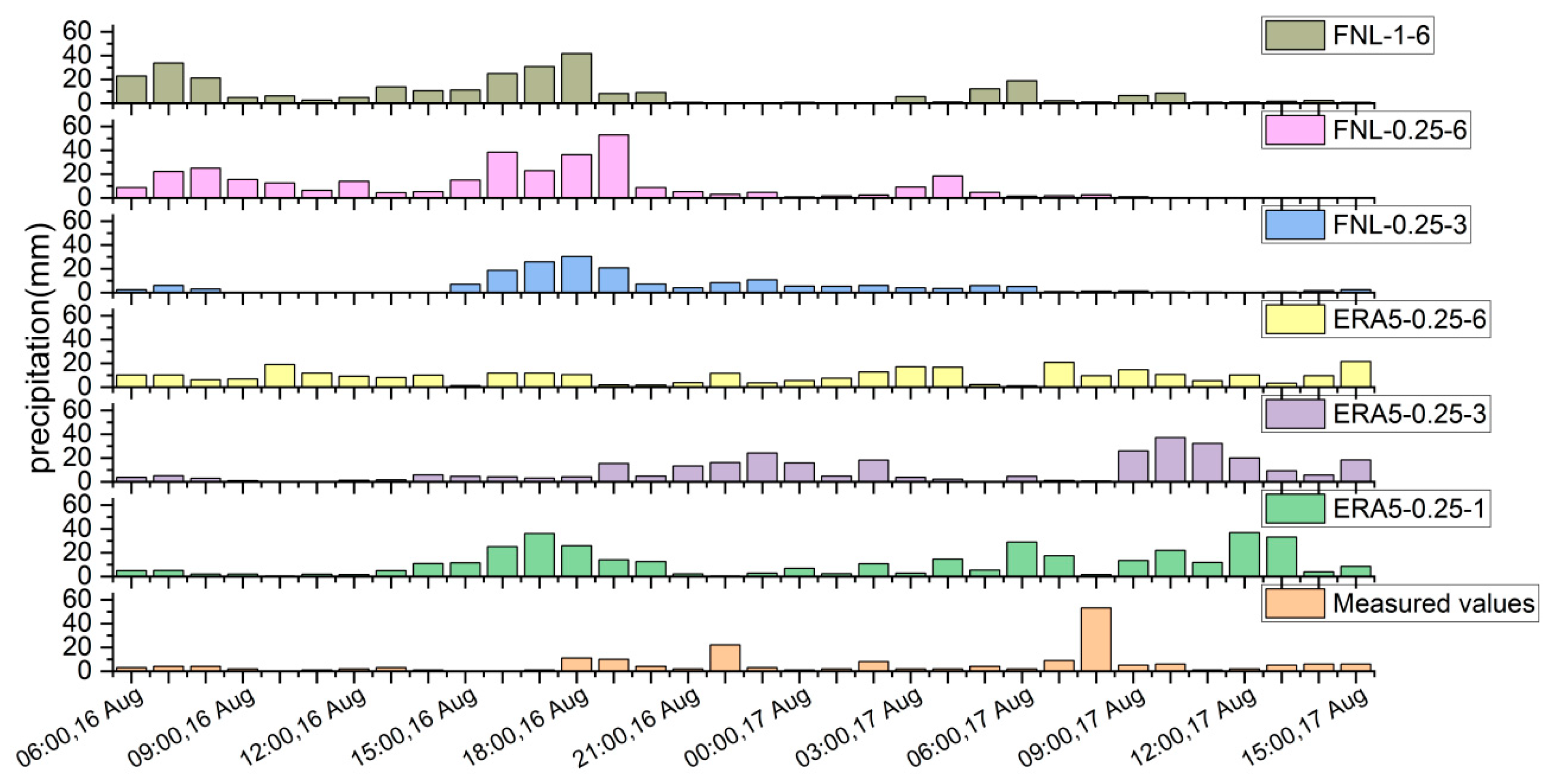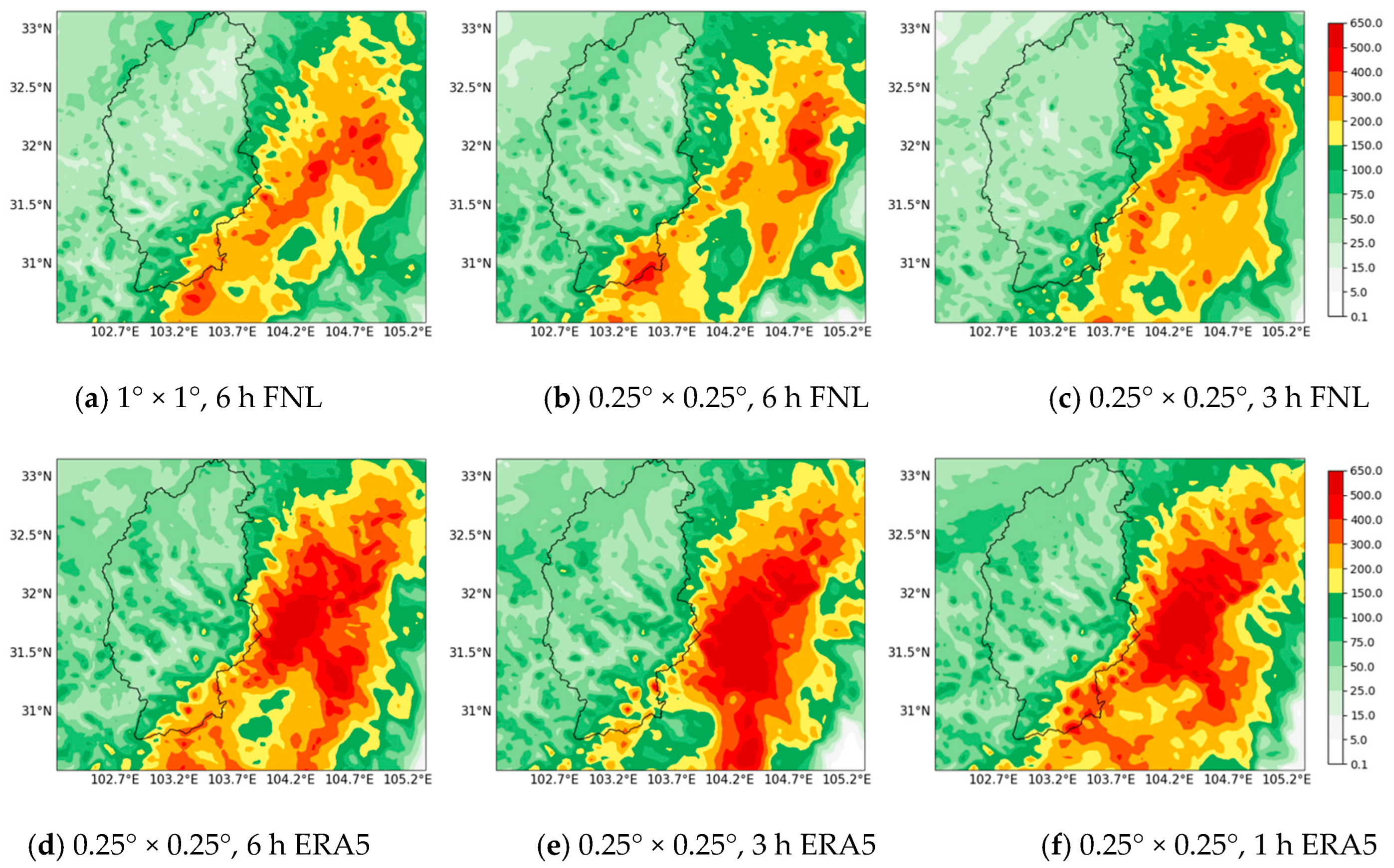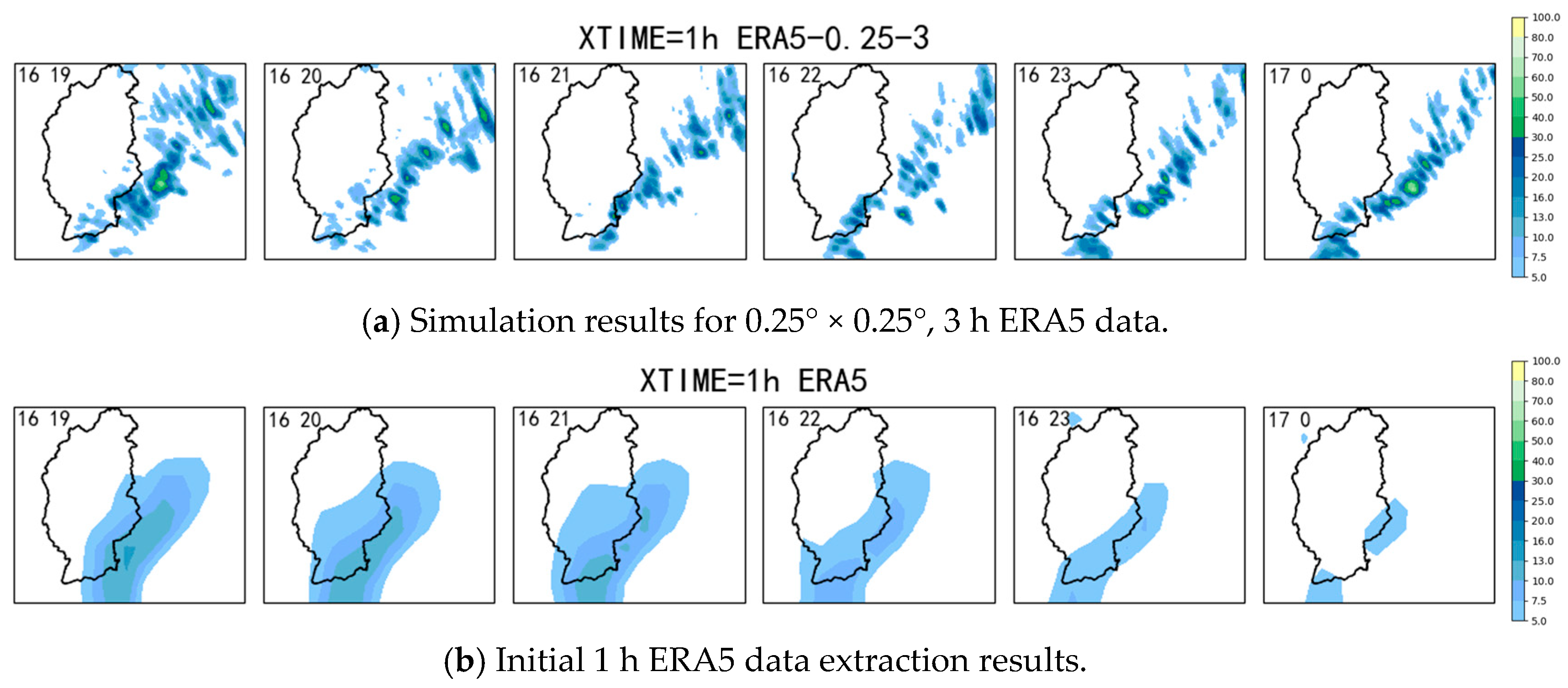 | ERA5 | 0.25° × 0.25°, 1 h | 6 |
