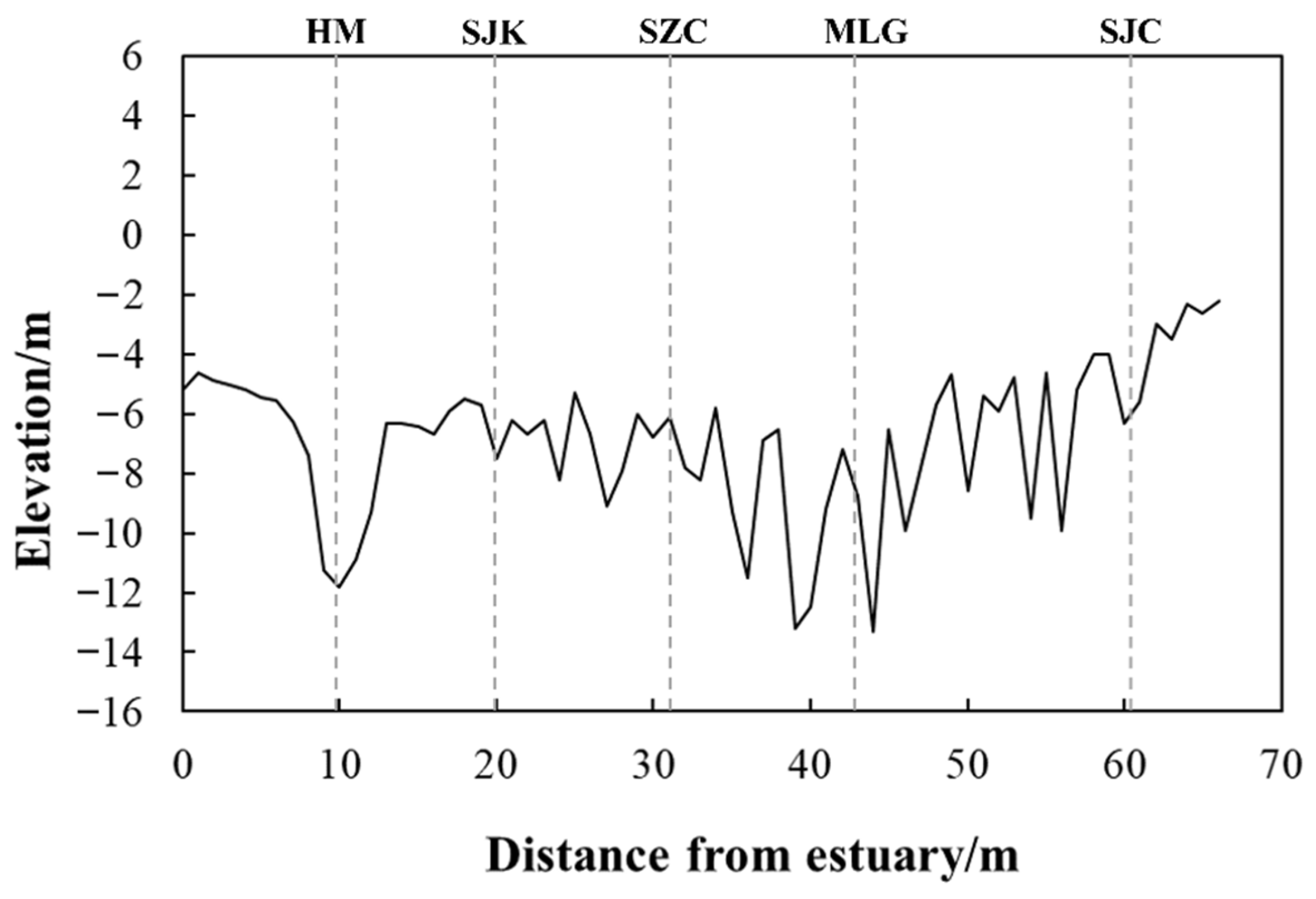 - Chen, K.; Lin, Y.; Liu, J.; He, Z.; Jia, L. Combined effects of massive reclamation and dredging on the variations in hydrodynamic and sediment transport in Lingdingyang Estuary, China. Front. Earth Sci. 2023, 18, 127–147. [Google Scholar] [CrossRef]