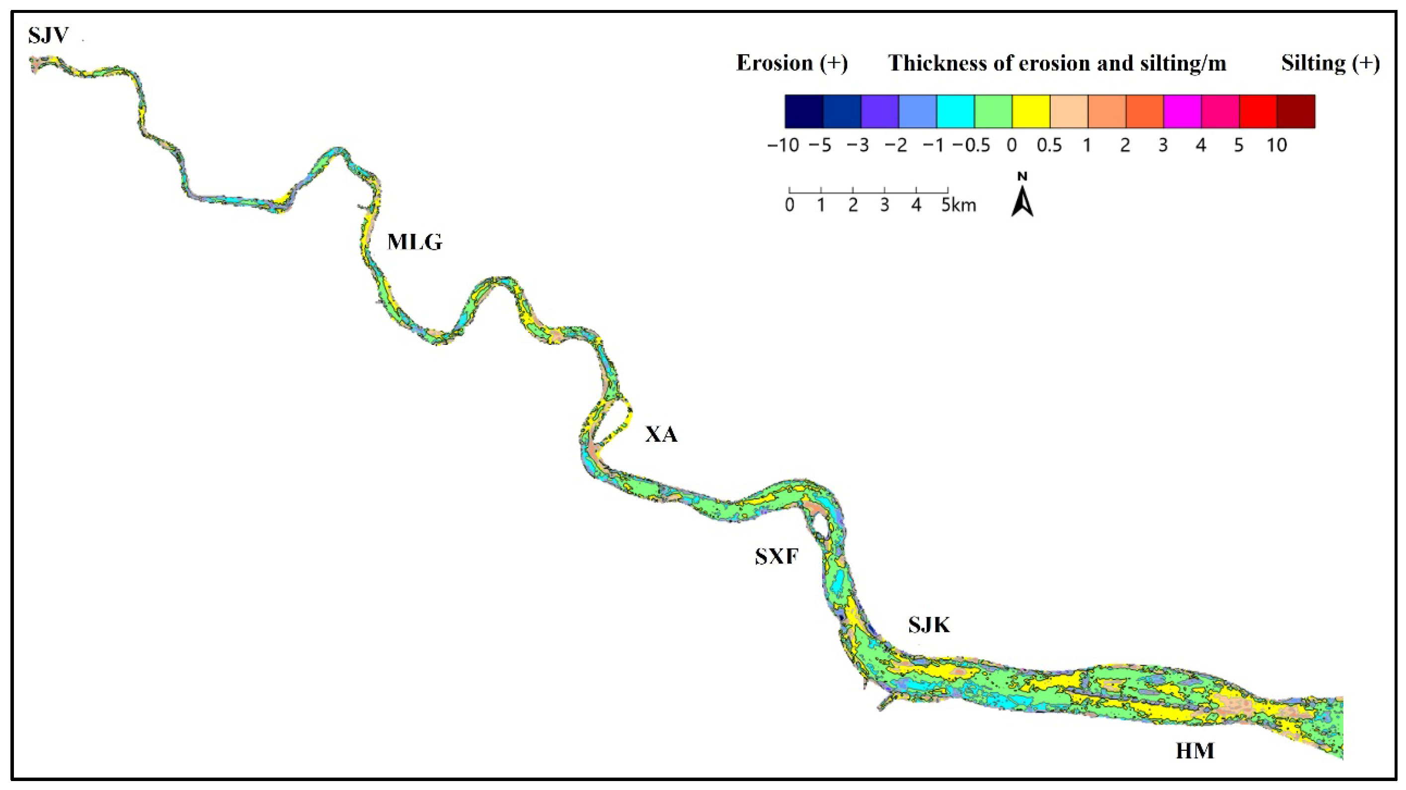 4.1. Riverbed Morphological Characteristics and Evolution Process