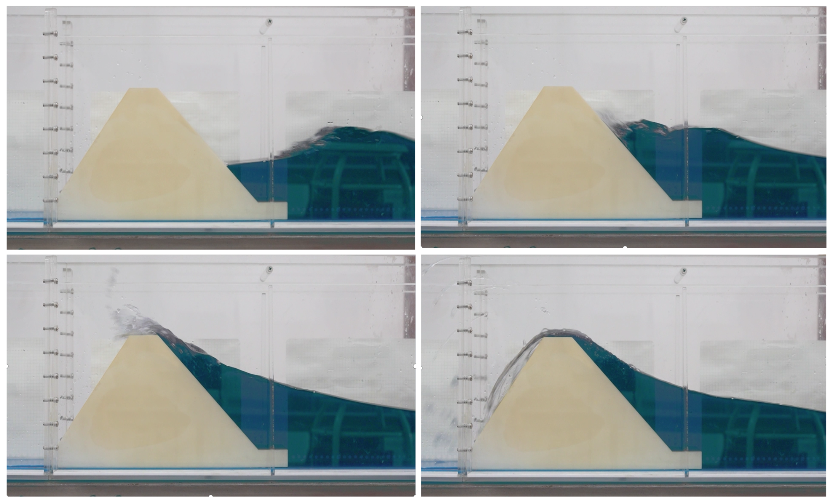 - Saville, T., Jr. Wave run-up on shore structures. J. Waterw. Harb. Div. 1956, 82, 925-1–925-14. [Google Scholar] [CrossRef]