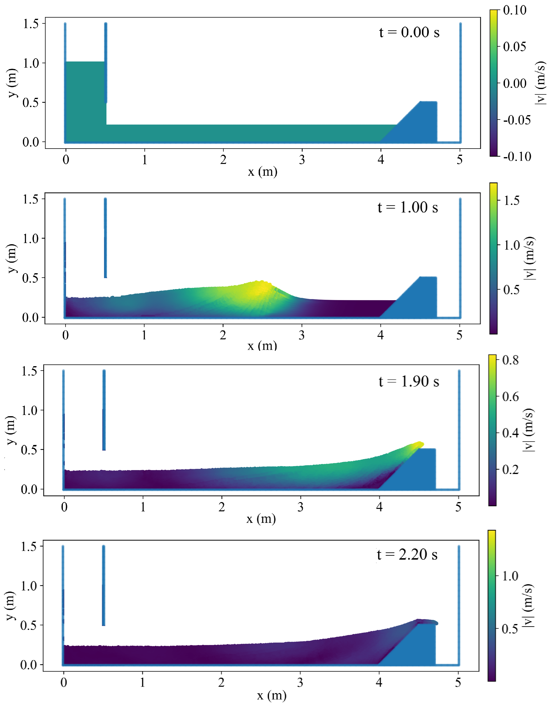 - Yang, S.; Yang, W.; Qin, S.; Li, Q.; Yang, B. Numerical study on characteristics of dam-break wave. Ocean Eng. 2018, 159, 358–371. [Google Scholar] [CrossRef]