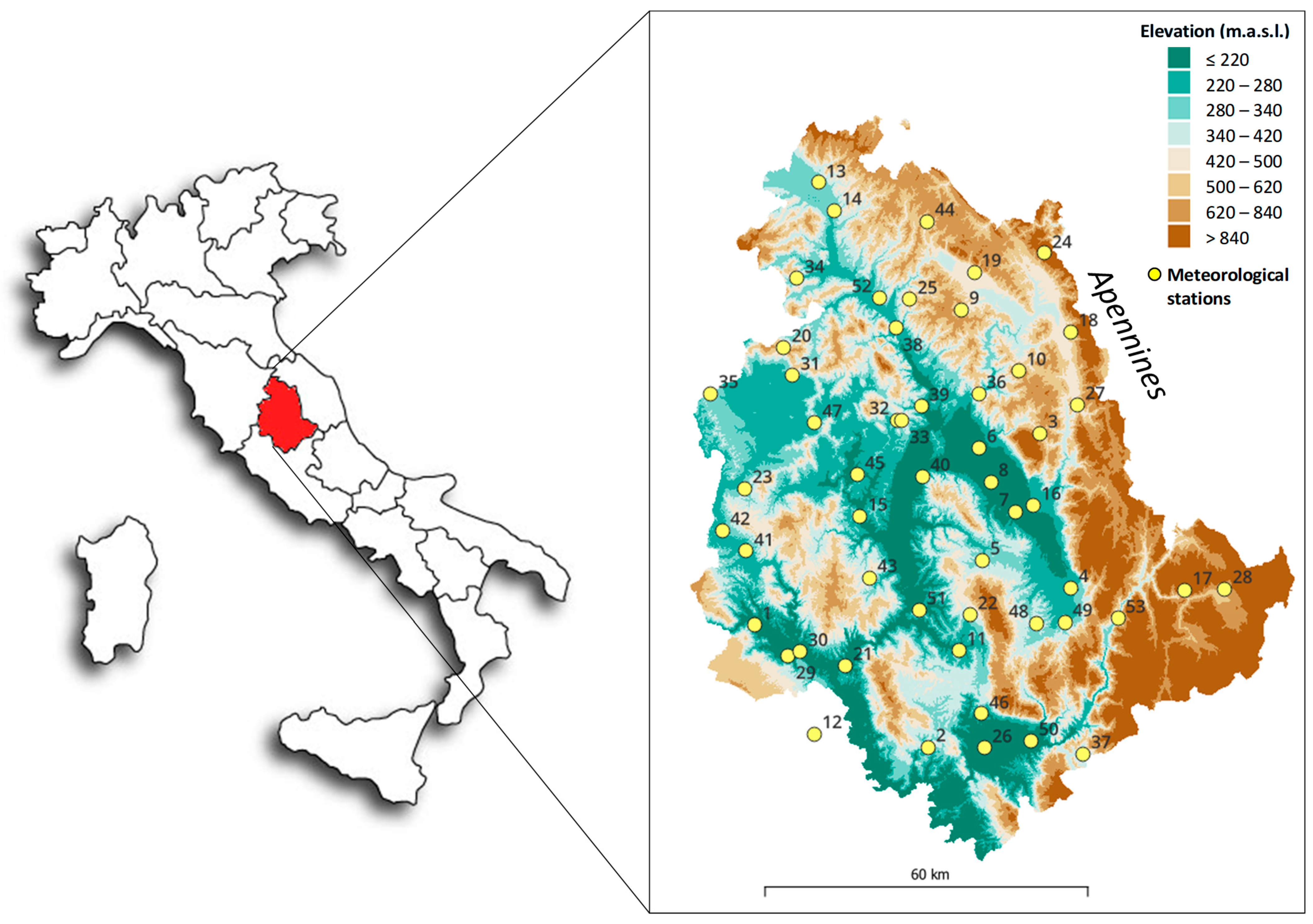 - Luppichini, M.; Bini, M. Evolution of Rainfall in Italy over the Last 200 Years: Interactions between Climate Indices and Global Warming. Atmospheric Res. 2025, 326, 108276. [Google Scholar] [CrossRef]