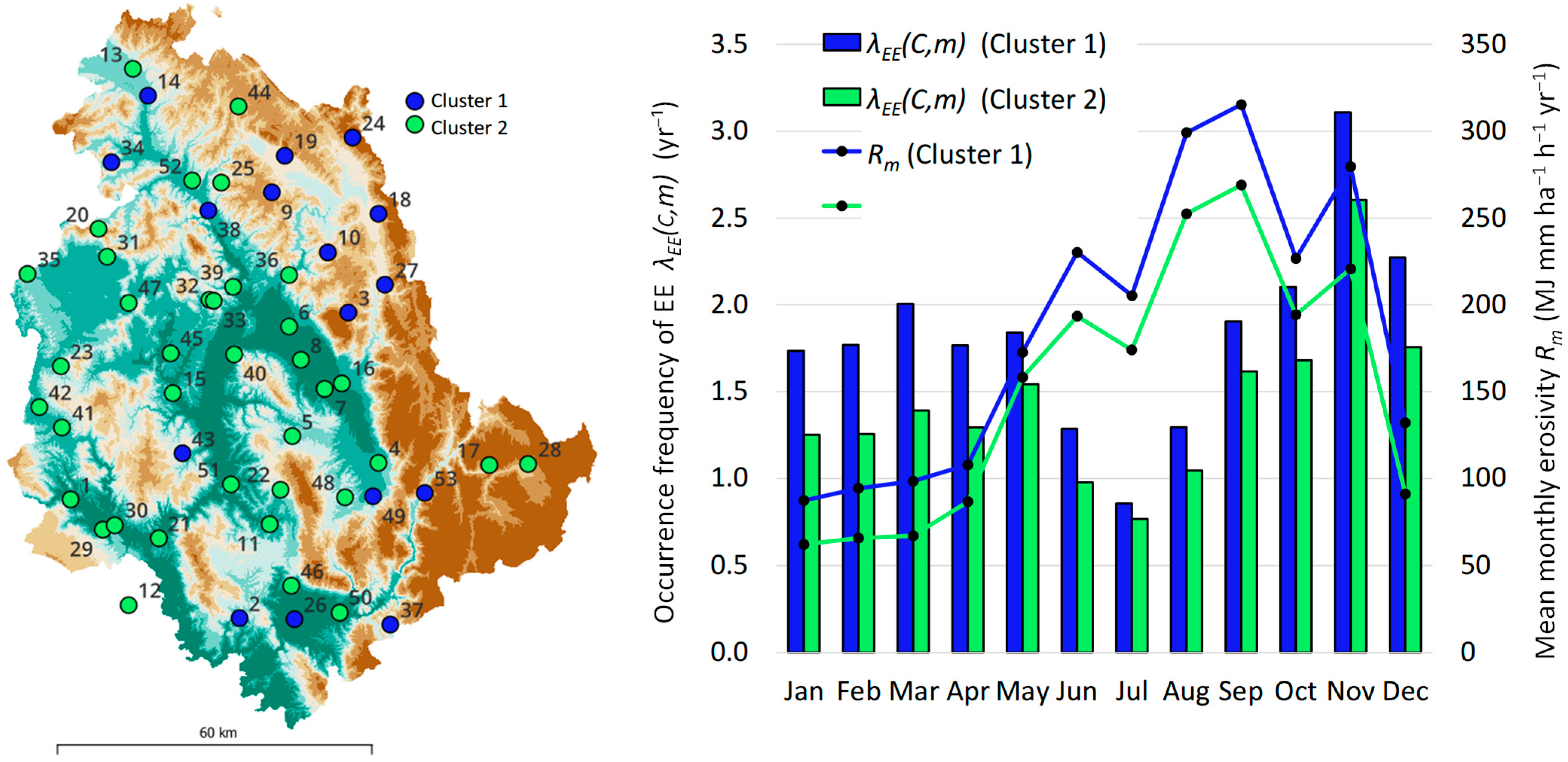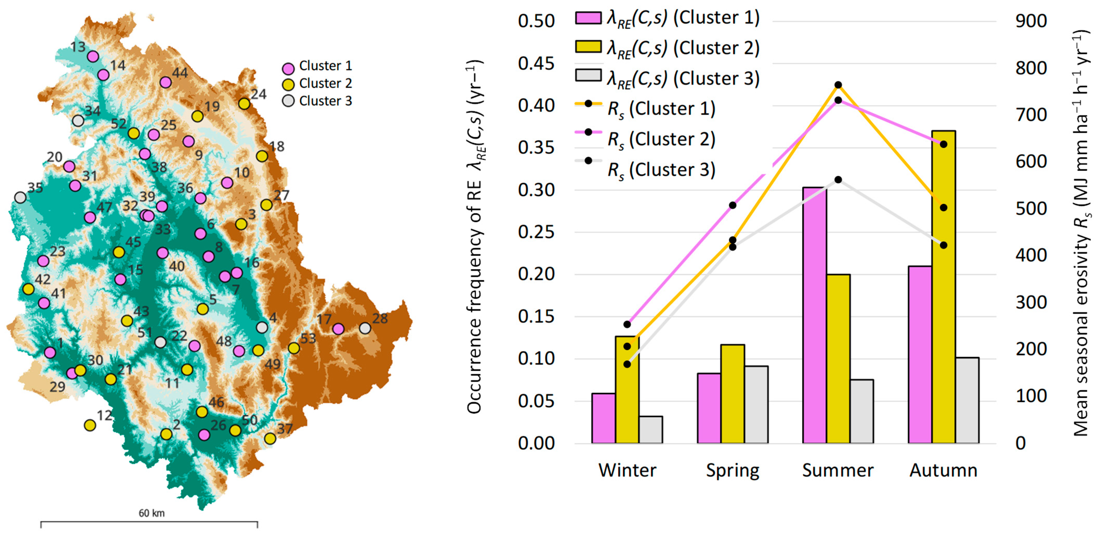 - Vásquez, C.; Klik, A.; Stumpp, C.; Laaha, G.; Strauss, P.; Özcelik, N.B.; Pistotnik, G.; Yin, S.; Dostal, T.; Gaona, G.; et al. Rainfall Erosivity across Austria’s Main Agricultural Areas: Identification of Rainfall Characteristics and Spatiotemporal Patterns. J. Hydrol. Reg. Stud. 2024, 53, 101770. [Google Scholar] [CrossRef]