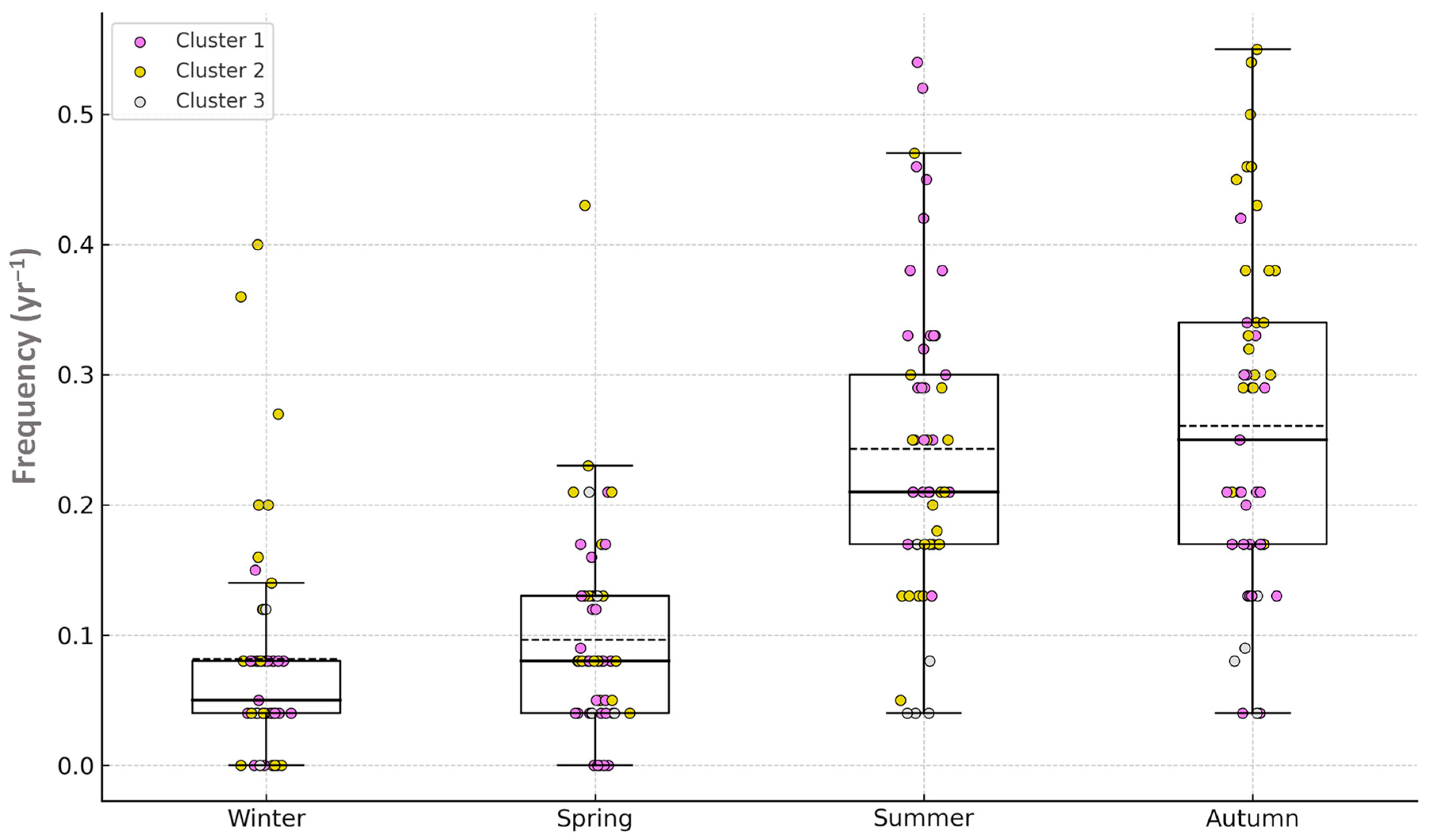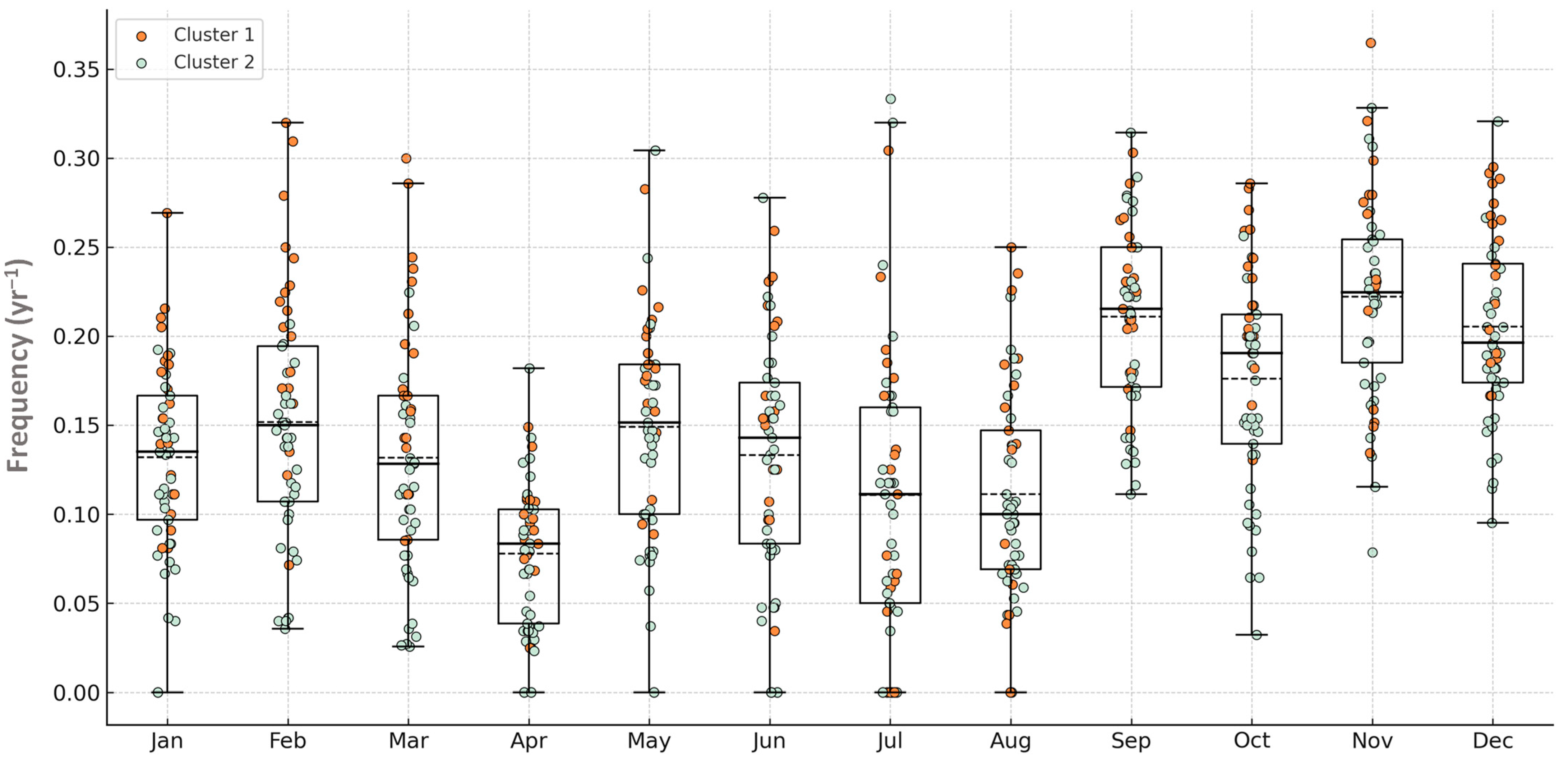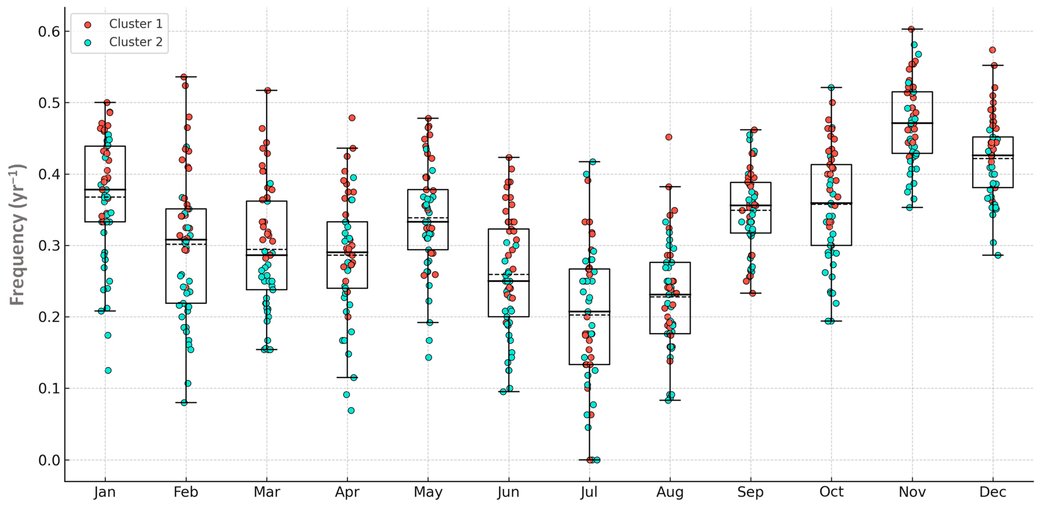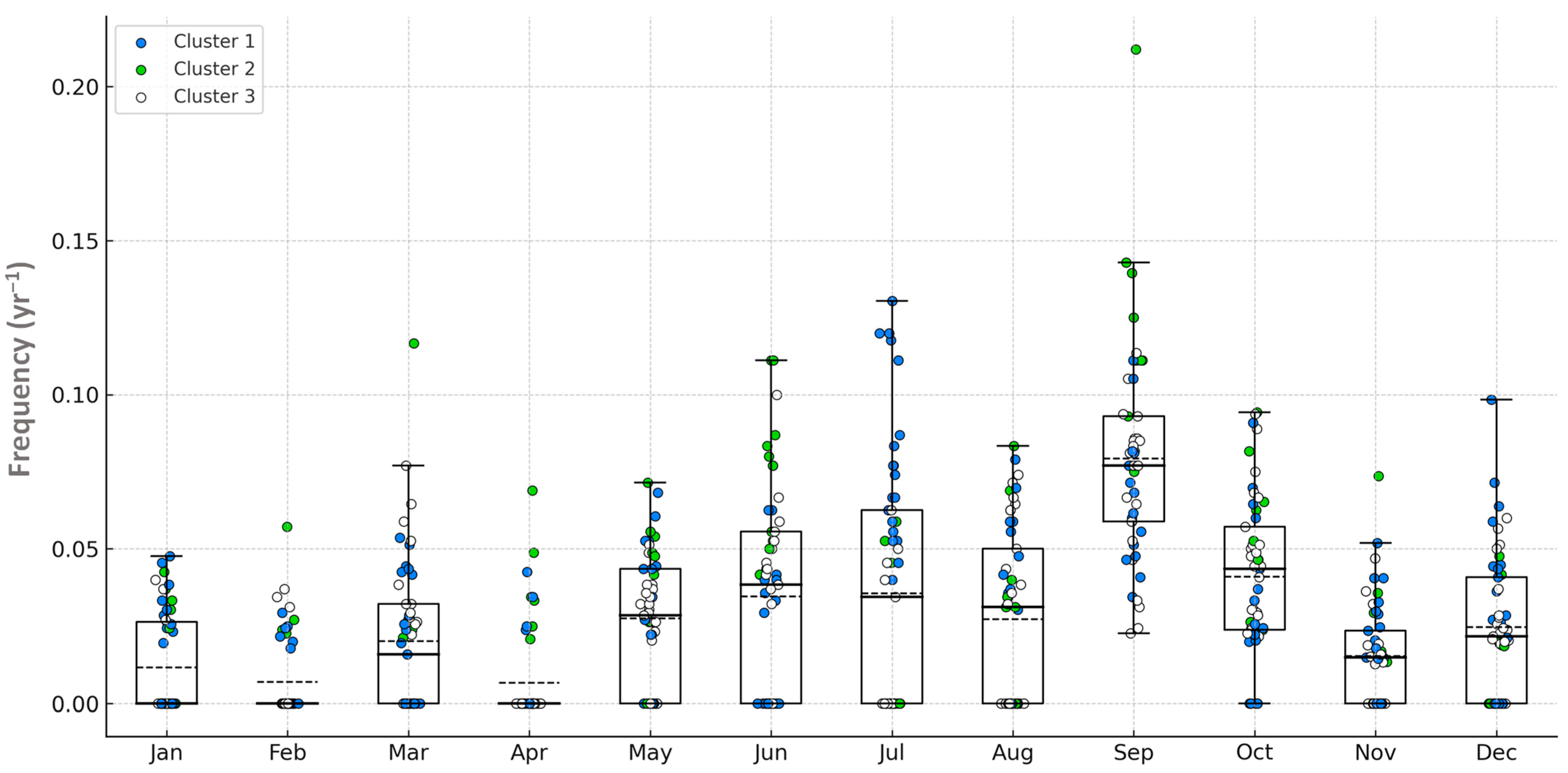 Spatiotemporal Variability of EEs and REs Occurrence Frequency in the Region