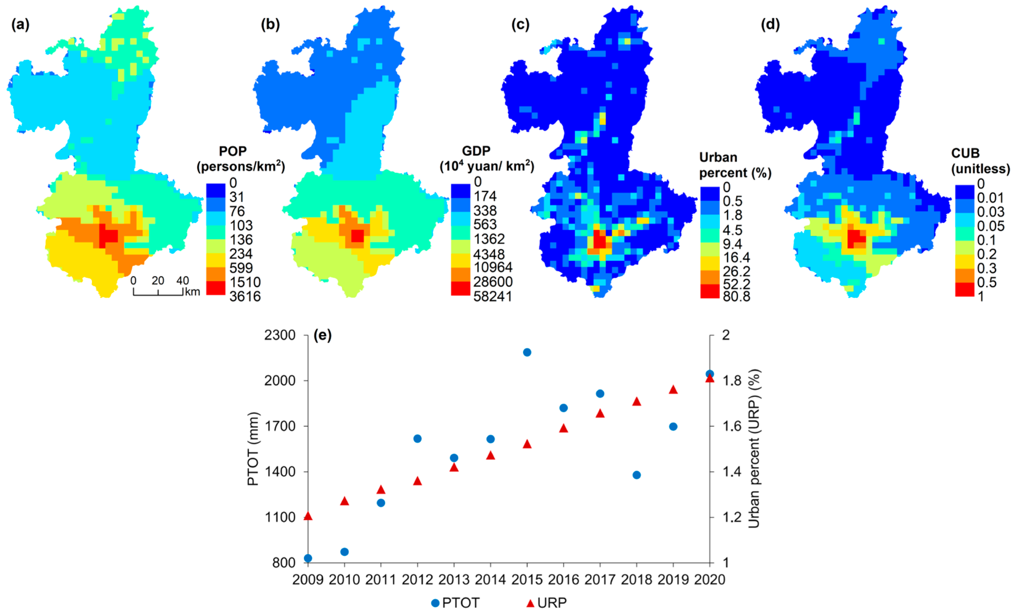 3.2. Spatial Dependency of EPs on Urbanization