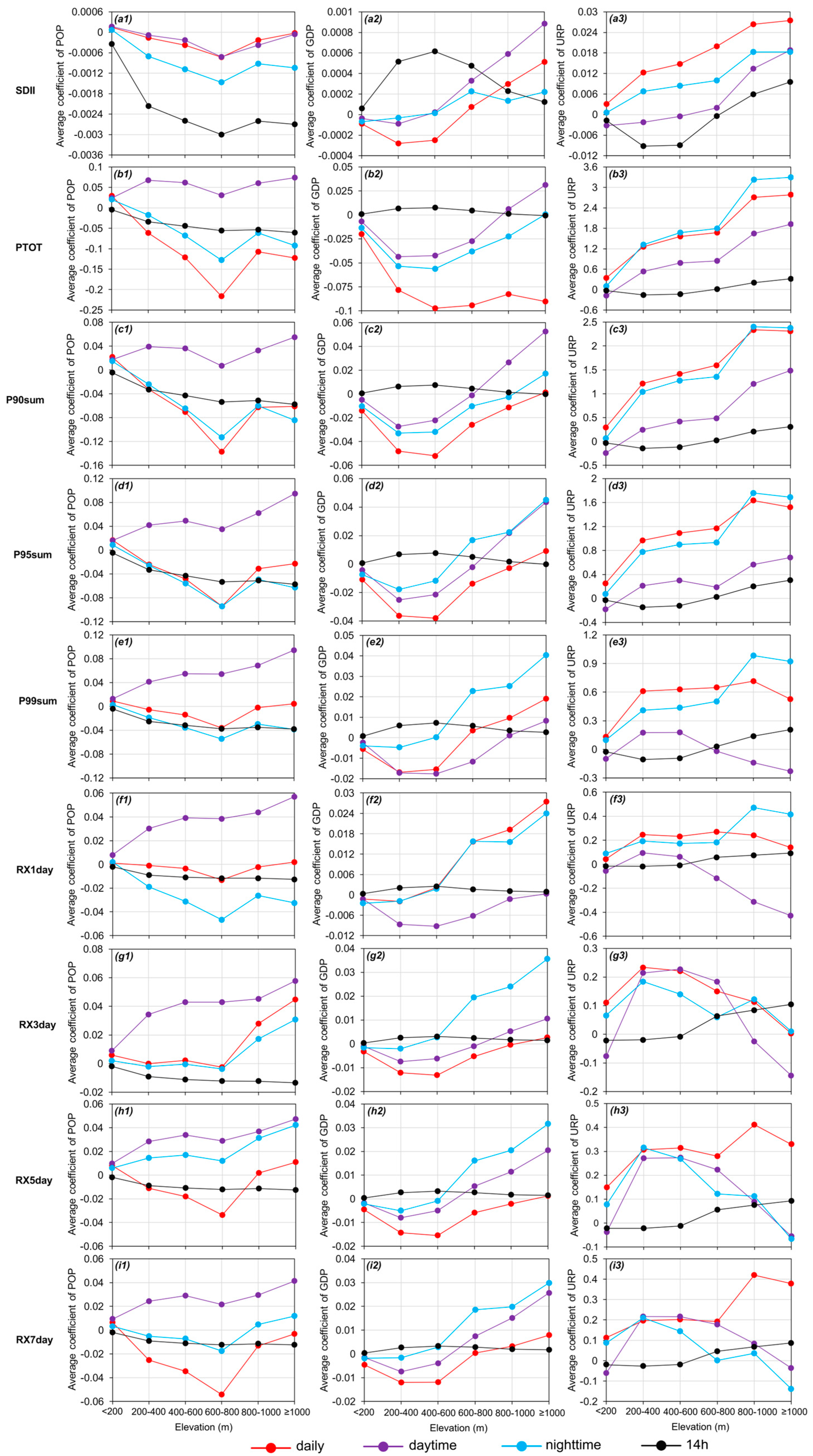 - Li, Z.; He, Y.; Theakstone, W.H.; Wang, X.; Zhang, W.; Cao, W.; Du, J.; Xin, H.; Chang, L. Altitude dependency of trends of daily climate extremes in southwestern China, 1961–2008. J. Geogr. Sci. 2012, 22, 416–430. [Google Scholar] [CrossRef]