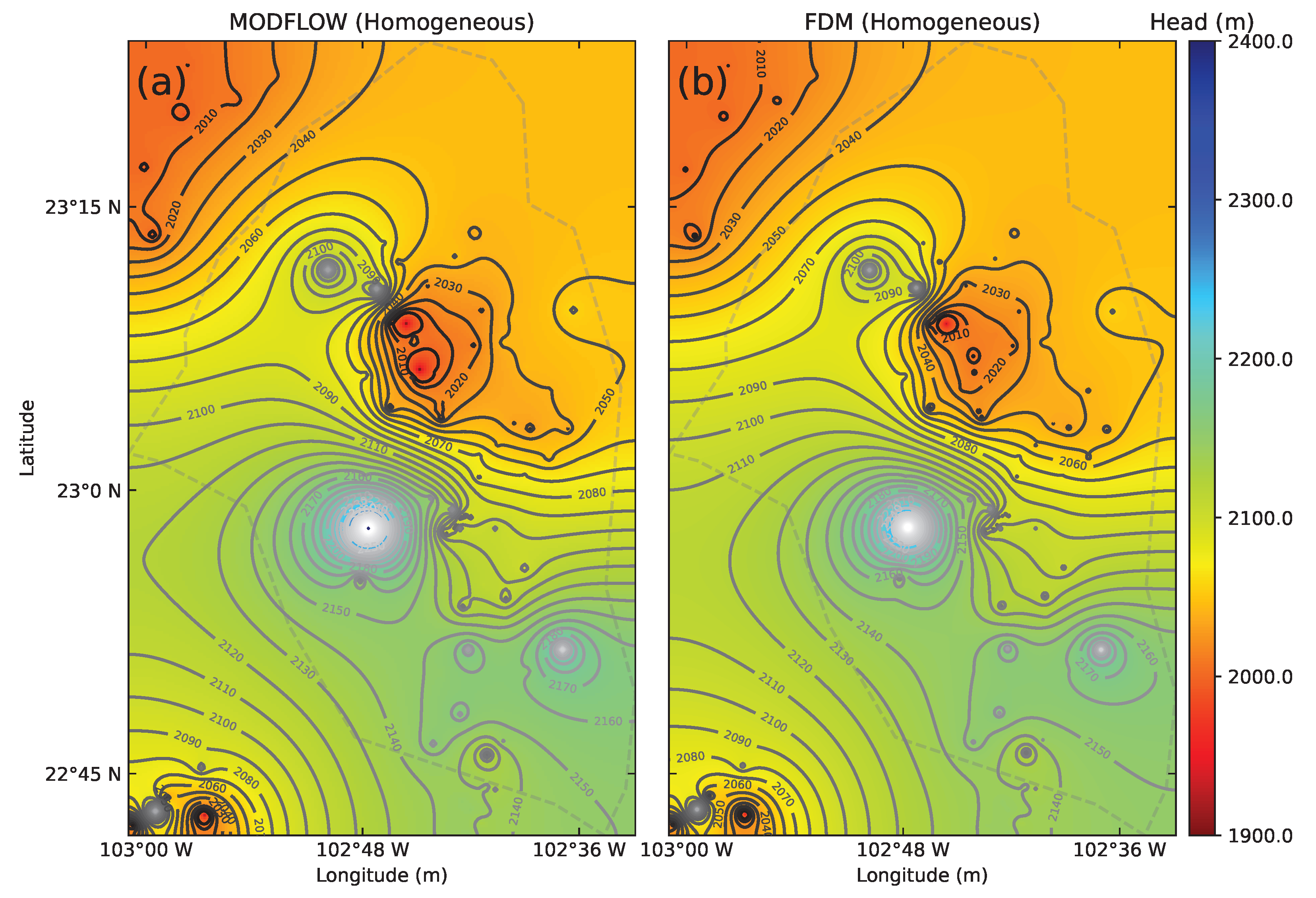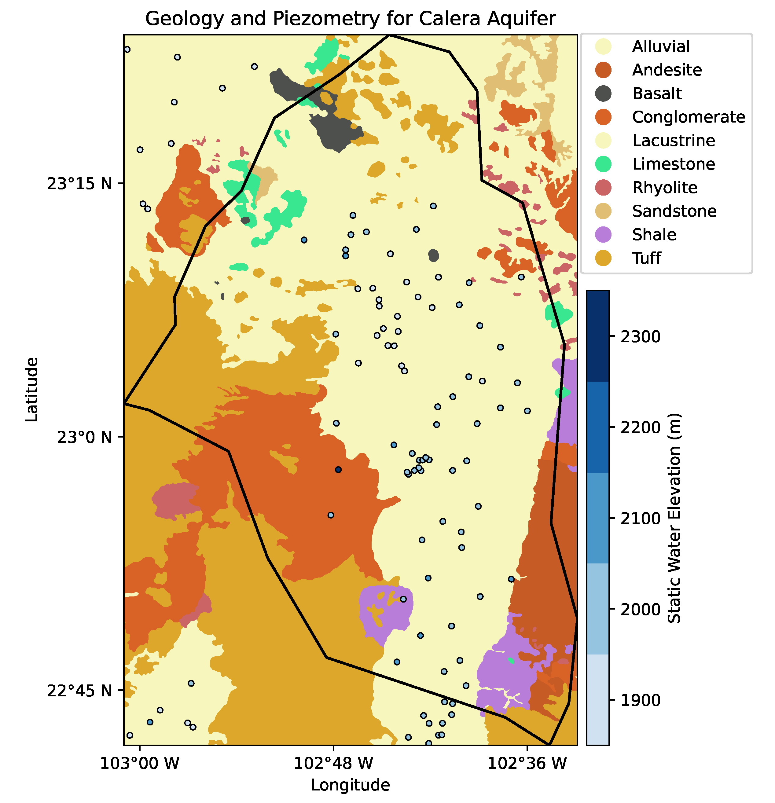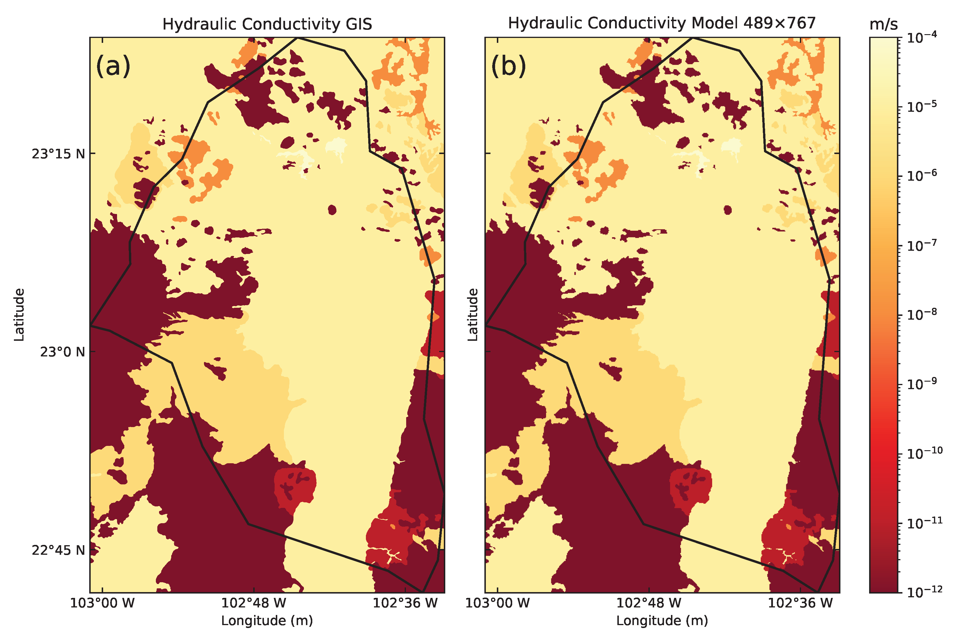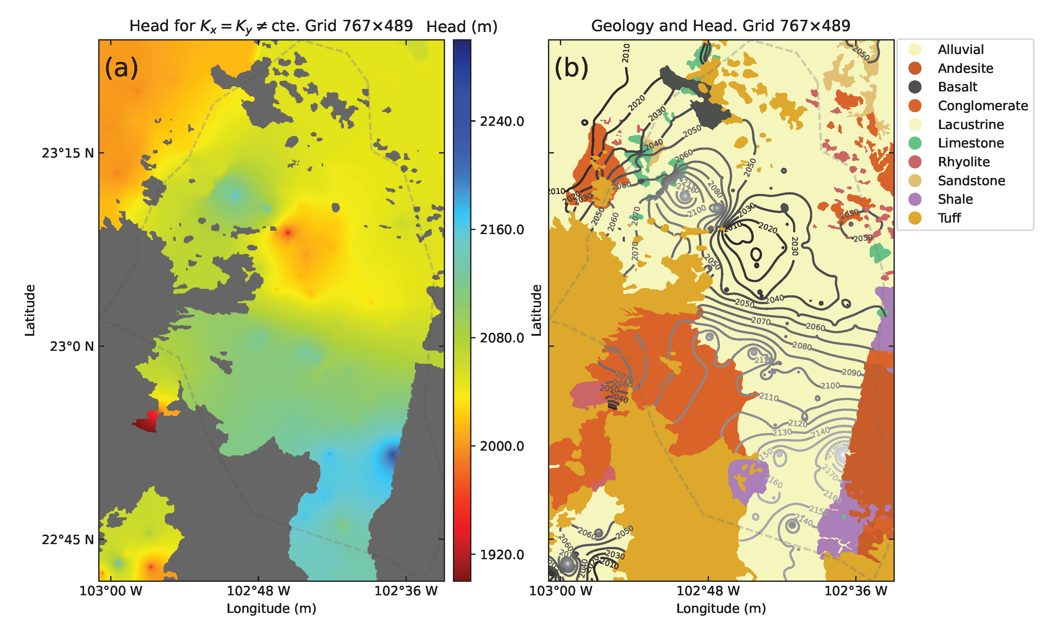 Silva-Avalos RU, Júnez-Ferreira HE, González-Trinidad J, De Basabe JD, Ortiz-Acuña LG. GIS-Integrated Groundwater Flow Modeling for Heterogeneous Media: Application to the Calera Aquifer. Water. 2026; 18(1):59. https://doi.org/10.3390/w18010059