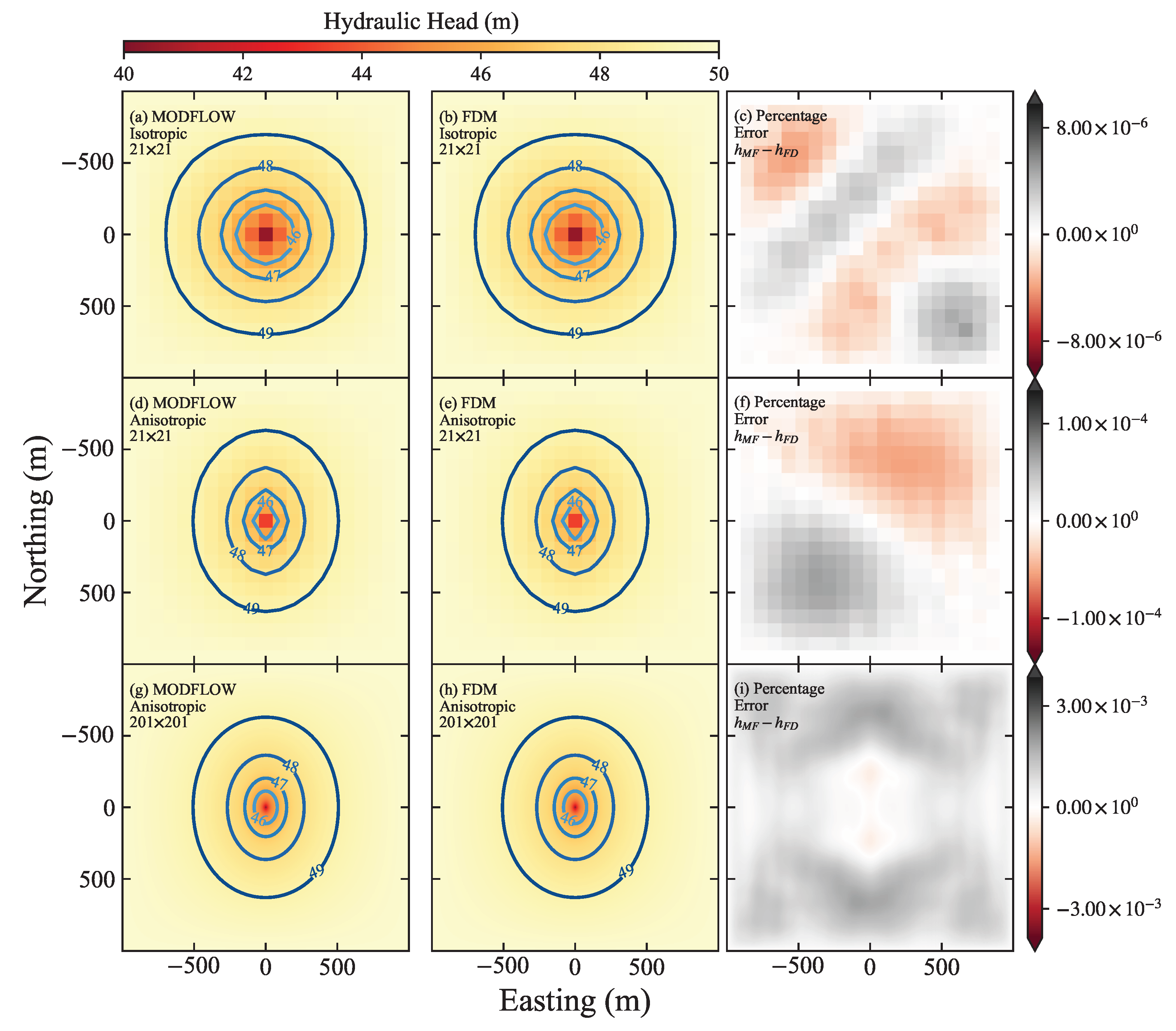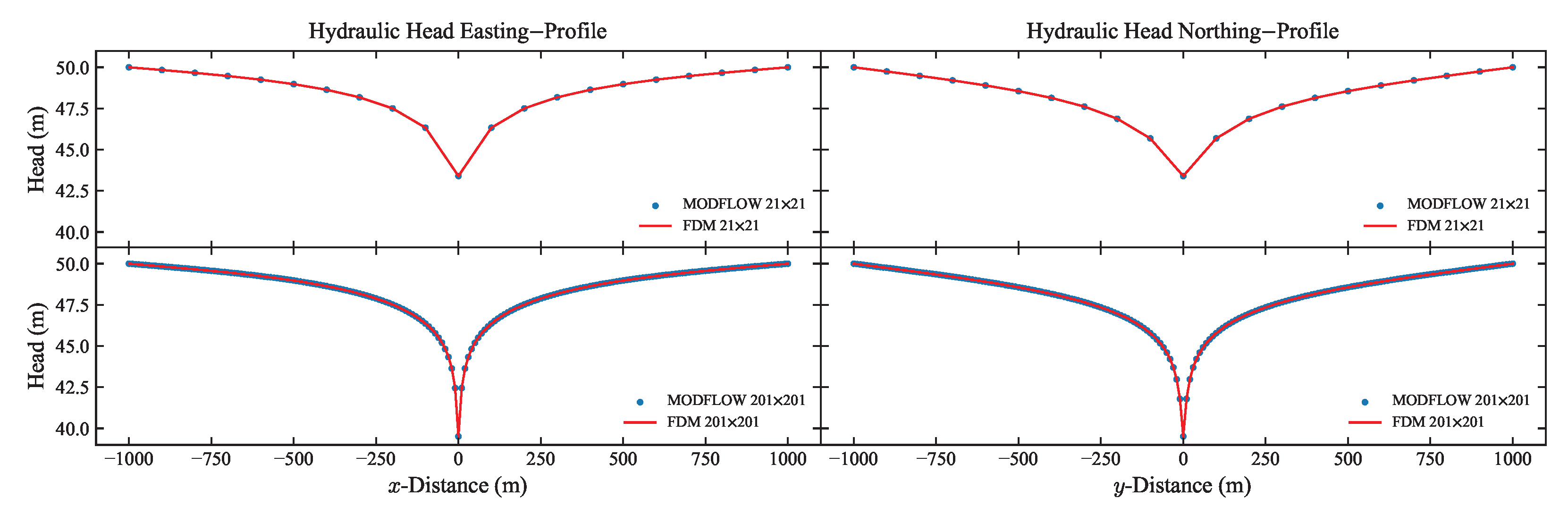 4.2. Calera Aquifer Groundwater Modeling for Homogeneous Medium
