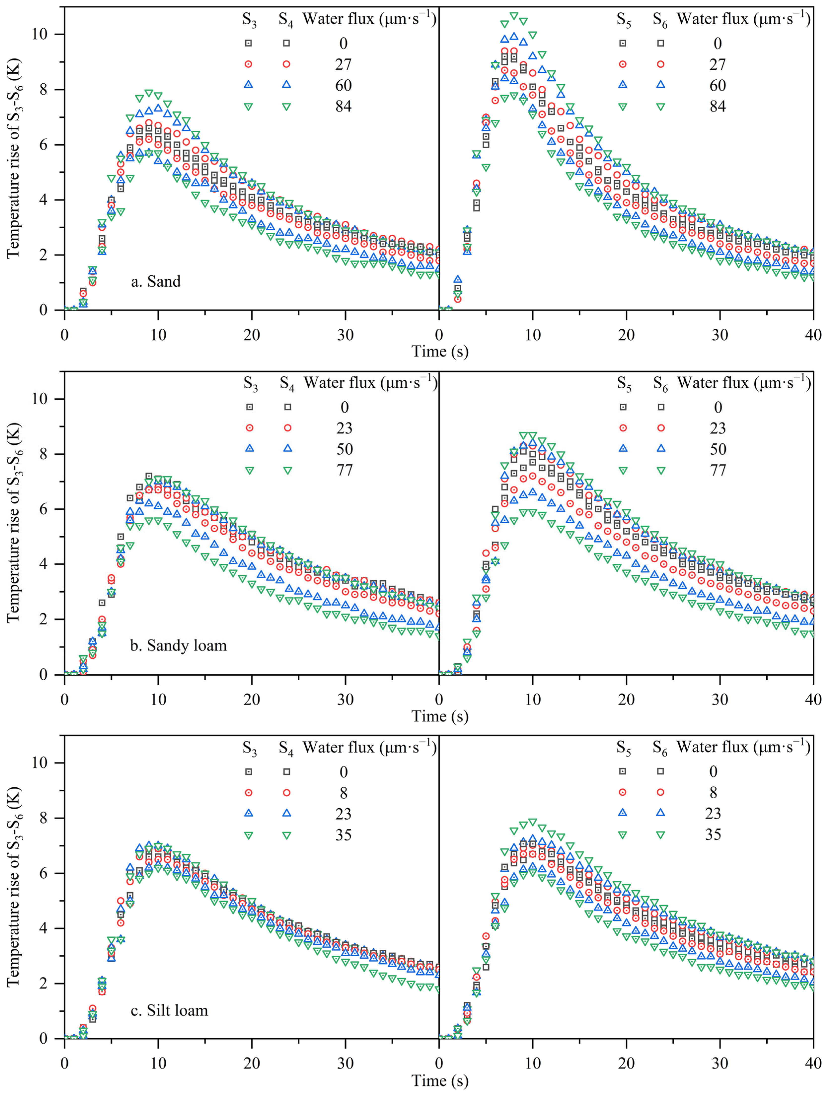 - Lu, X.; Chen, G.; Qin, Y.; Sun, Y.; Li, X. Evaluation of water flux prediction with heat-pulse technique in saturated soils. Arch. Agron. Soil Sci. 2017, 63, 455–467. [Google Scholar] [CrossRef]