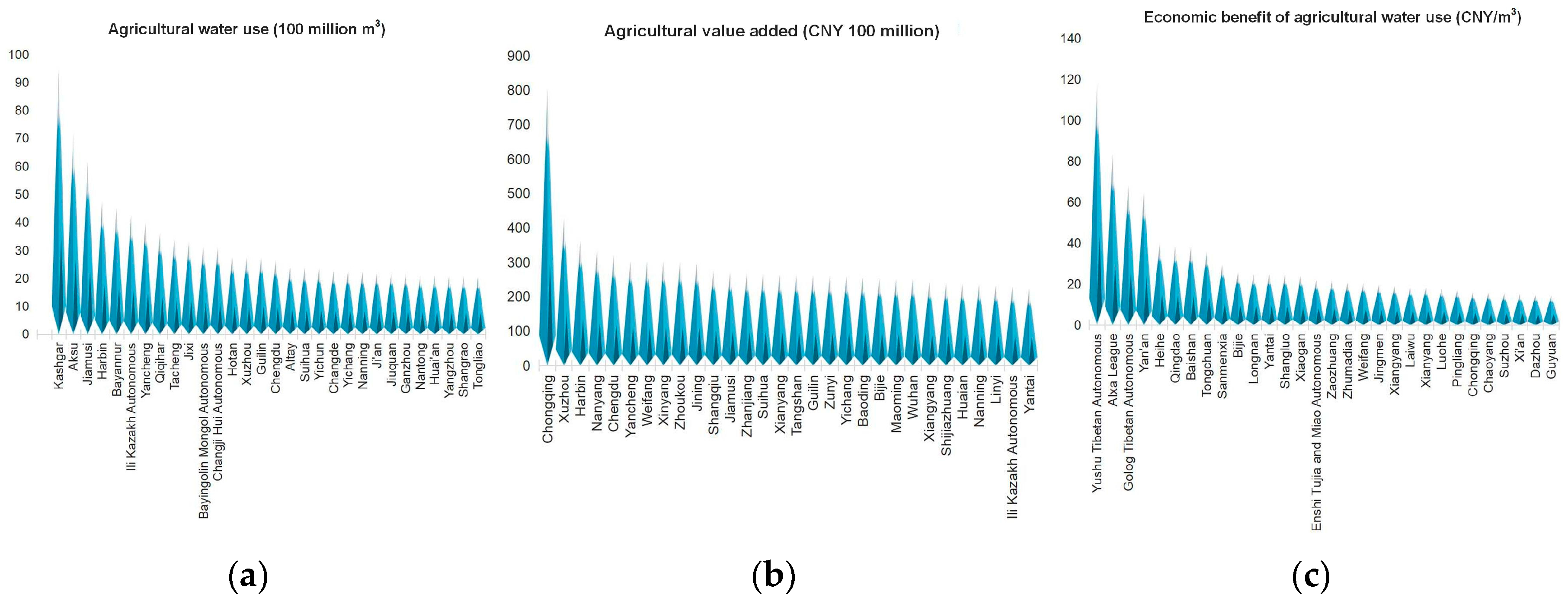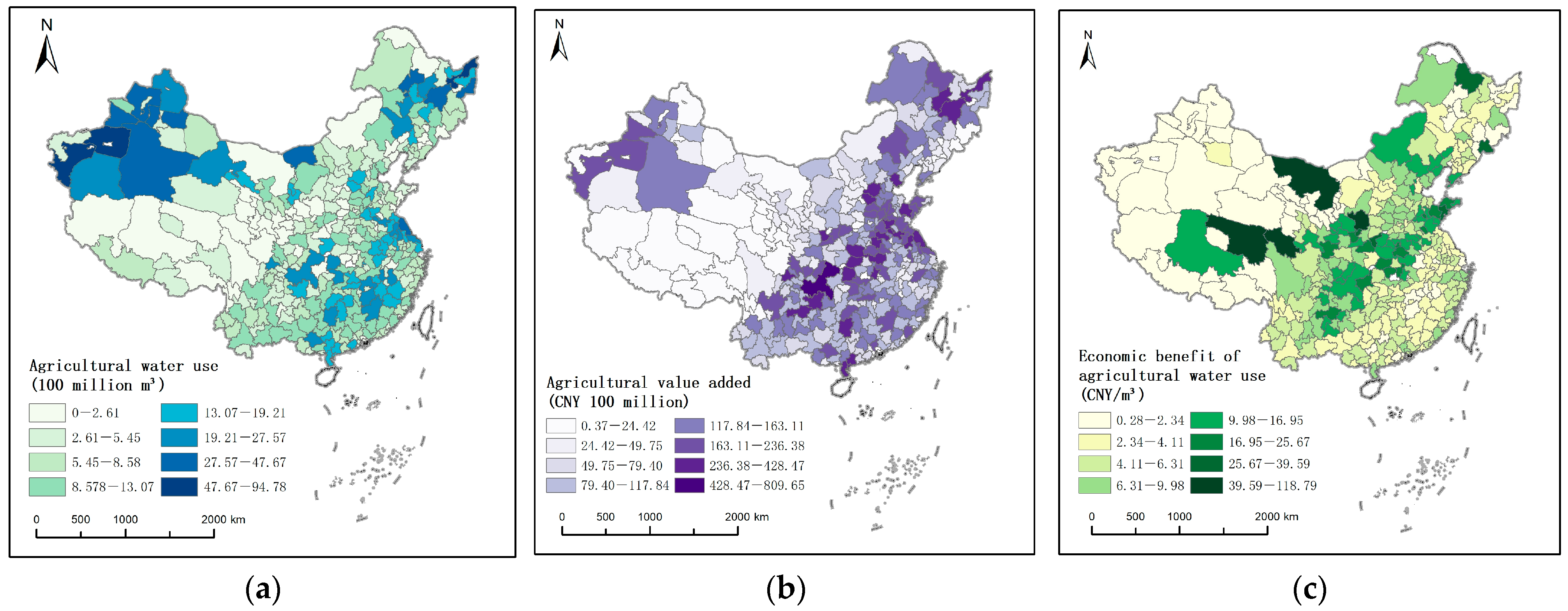 3.1. Spatial Heterogeneity of Economic Benefit of Agricultural Water Use
