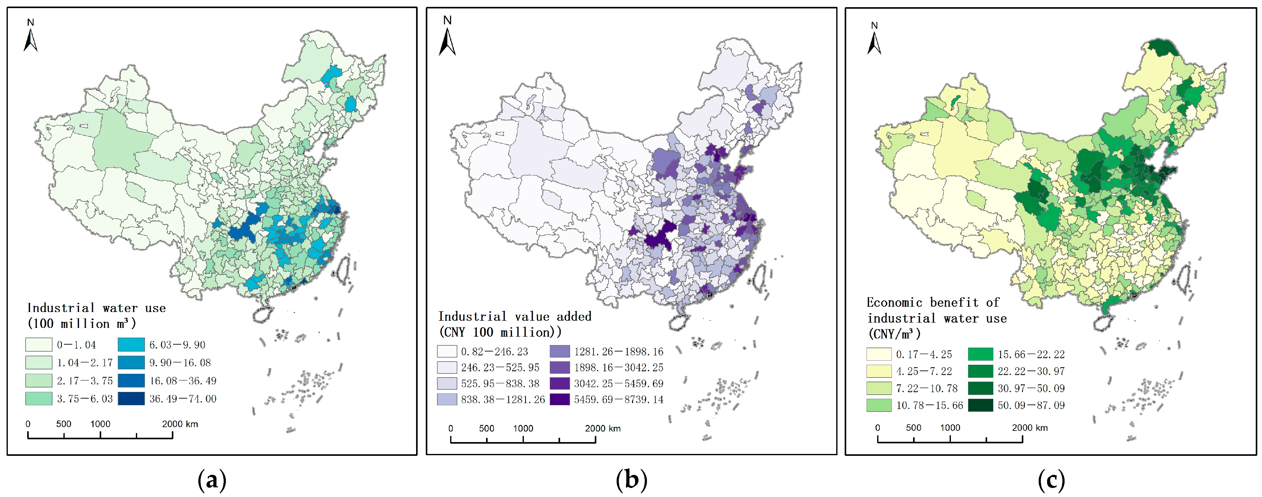 - Zou, D.L.; Cong, H.B. Evaluation and influencing factors of China’s industrial water resource utilization efficiency from the perspective of spatial effect. Alex. Eng. J. 2021, 60, 173–182. [Google Scholar] [CrossRef]