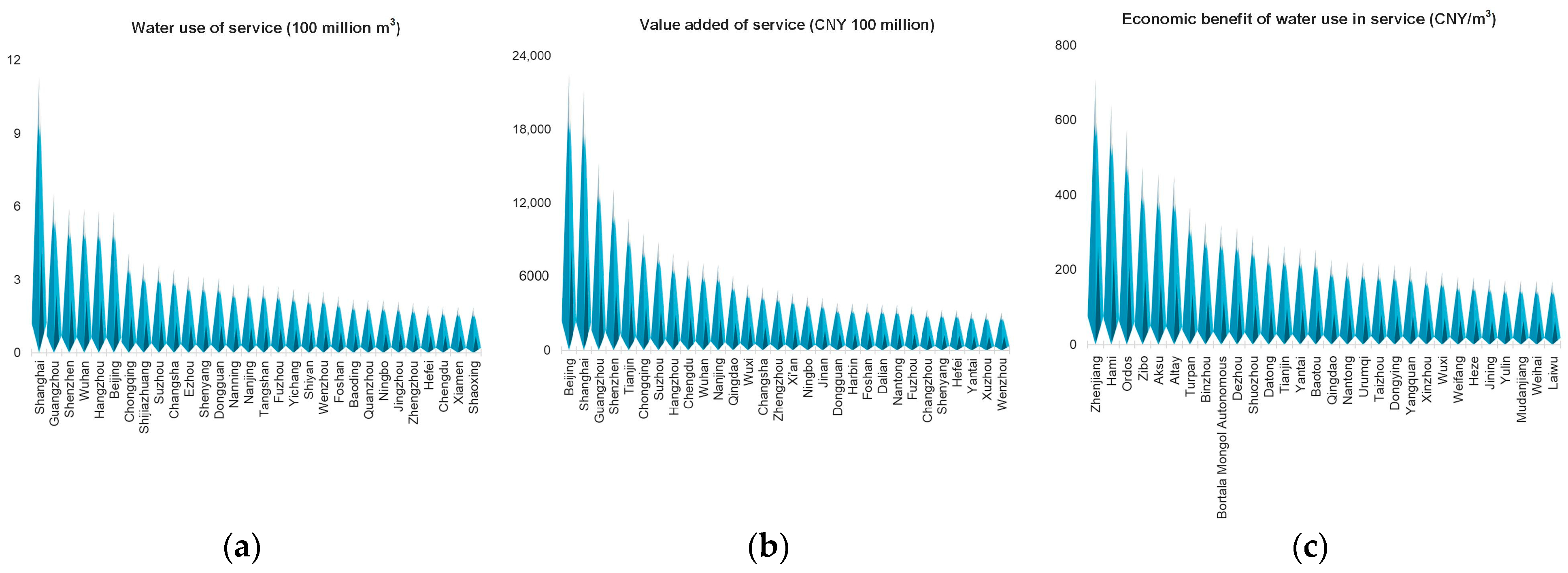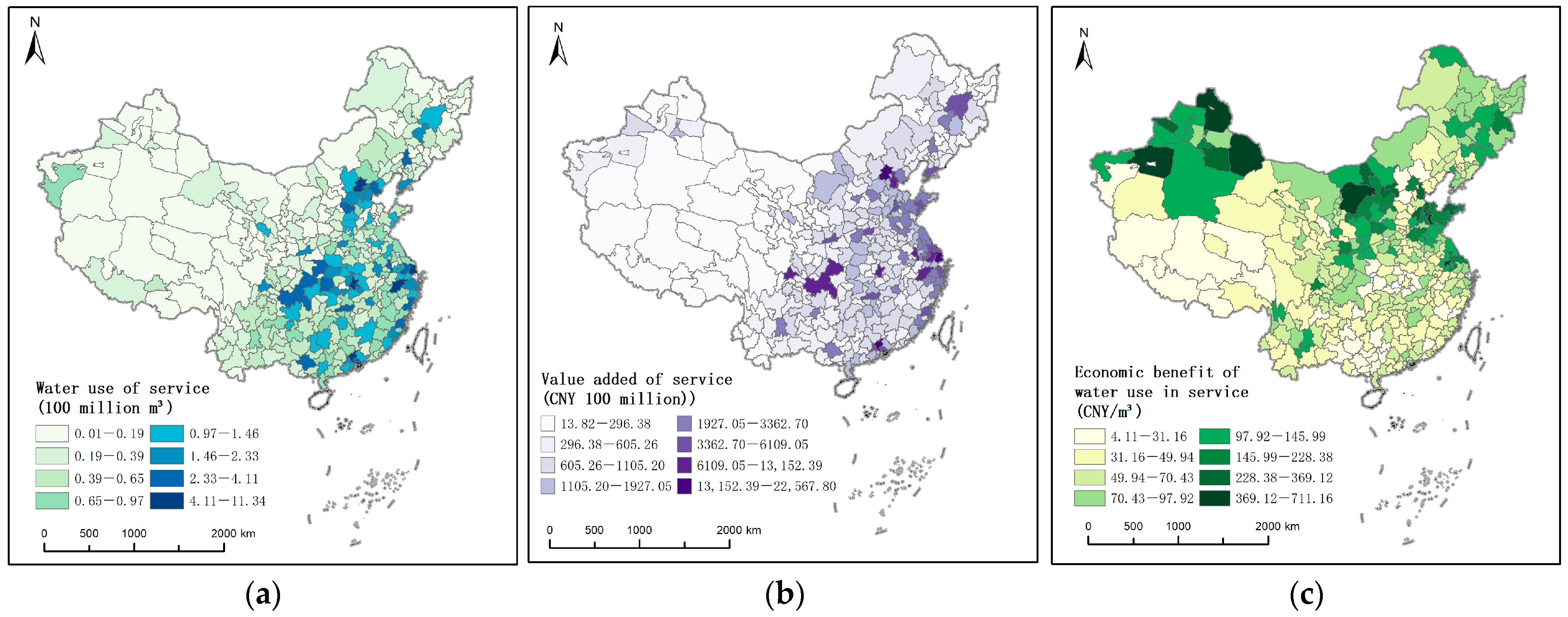 3.3. Spatial Heterogeneity of Economic Benefit of Service Water Use