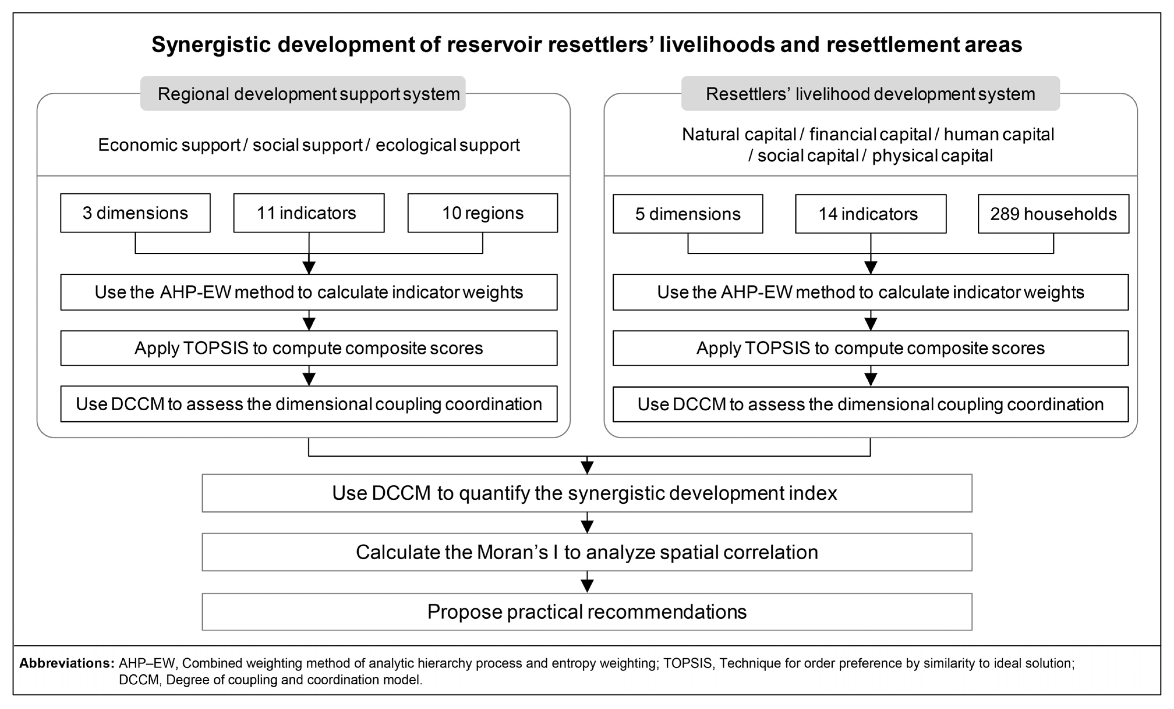 3.3.1. Indicator Weight Determination for the Resettlers’ Livelihood Development System