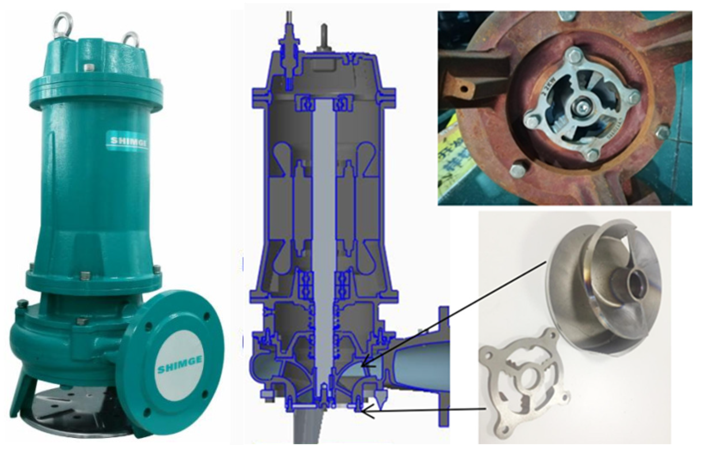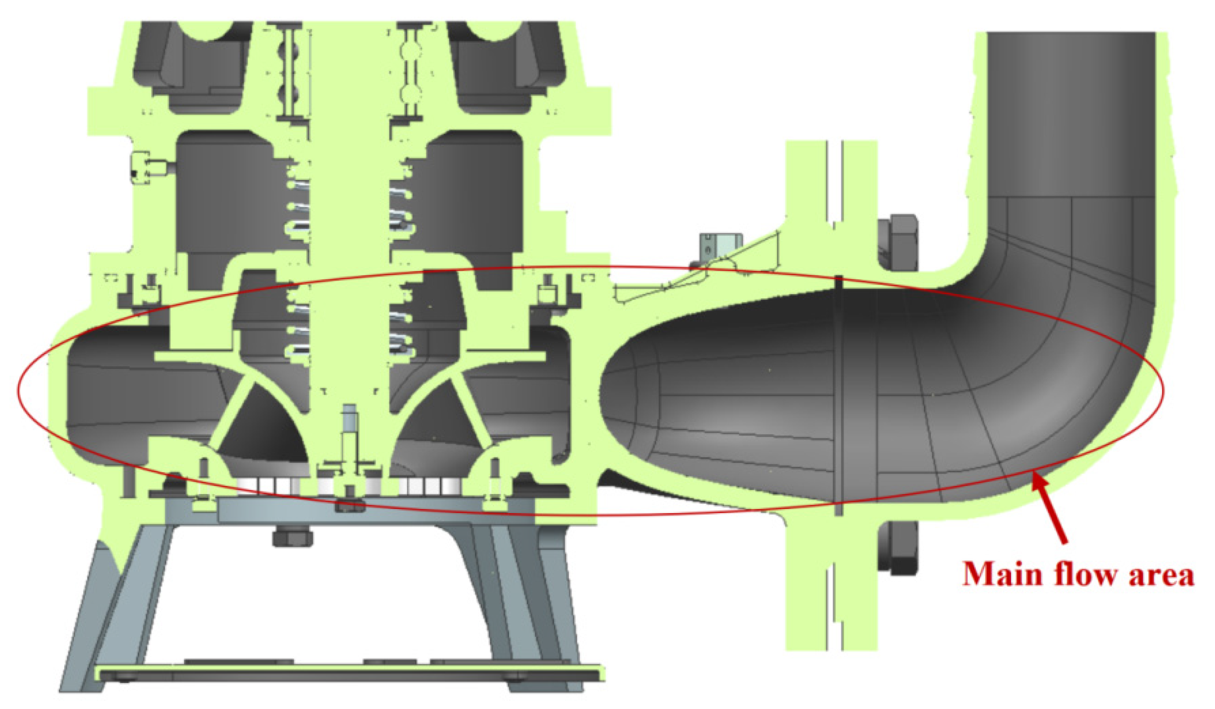 With the rapid progression of urbanization in China, municipal wastewater treatment systems are operating under increasingly stringent demands. Municipal wastewater treatment is characterized by large discharge volumes, highly heterogeneous pollutant compositions, complex process chains, and elevated operating costs [1]. As the core equipment for conveying and handling municipal sewage, sewage pumps are experiencing growing market demand. However, the presence of fibrous materials, solid particles, and other easily entangled or accumulative impurities in wastewater frequently leads to pipeline blockage and abrasion, ultimately causing damage to the pump body and associated components. Zheng et al. [2] investigated the evolution of fiber entanglement and clogging mechanisms in pumps using CFD–DEM simulations, and confirmed that impurity accumulation is a key factor contributing to equipment failure and increased maintenance costs. Consequently, the design and development of sewage pumps must emphasize adaptability to complex real-world operating conditions. In practical engineering applications, sewage pumps are commonly classified according to two criteria: by installation type, as dry-installed or submersible; and by impeller configuration, as closed, open, or semi-open [3]. Furthermore, to address specific impurity-handling requirements, Zhu et al. [4] and Ou et al. [5] improved the operational stability of grinder pumps and vortex pumps by optimizing the cutting mechanisms and proposing non-overload impeller designs, respectively. Among these configurations, submersible sewage pumps equipped with semi-open impellers play a particularly important role in municipal engineering owing to their compact structure and superior anti-clogging performance.