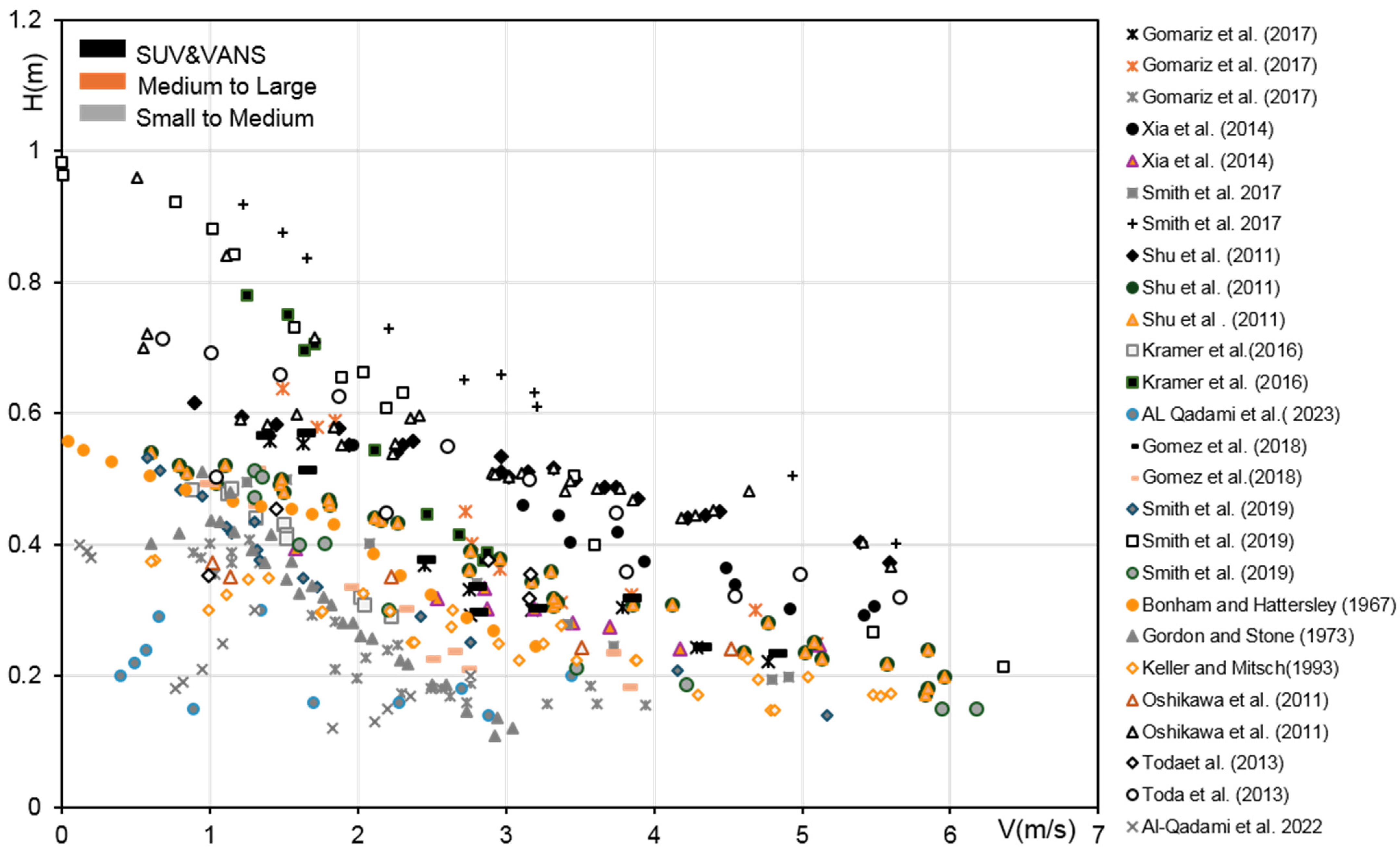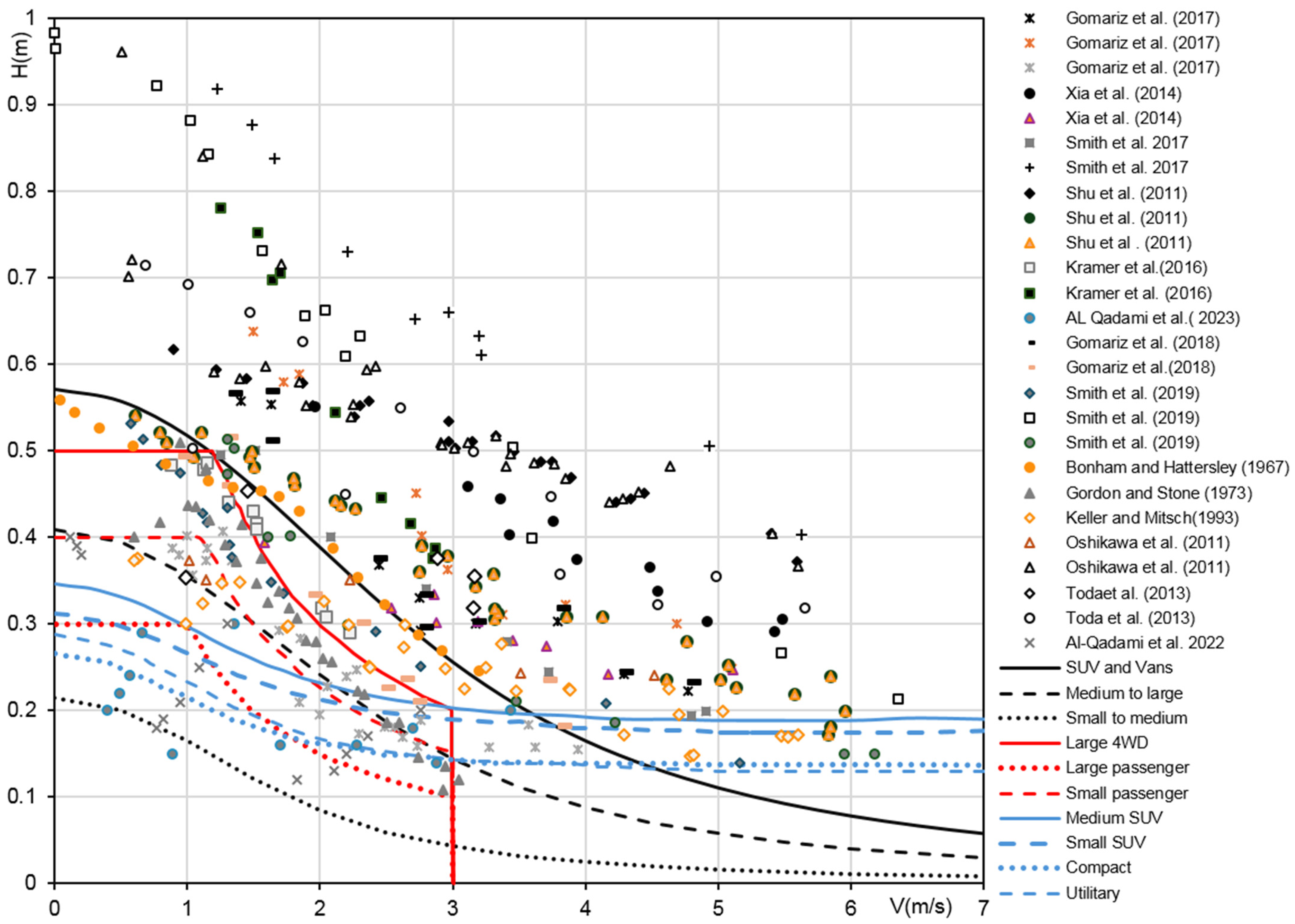 15], who conducted several tests on a full-scale small passenger (Toyota Yaris Sedan) and a large 4WD based on the product of water depth and flow velocity for every single car. One of the most important and powerful studies in the literature, undertaken by Ref. [