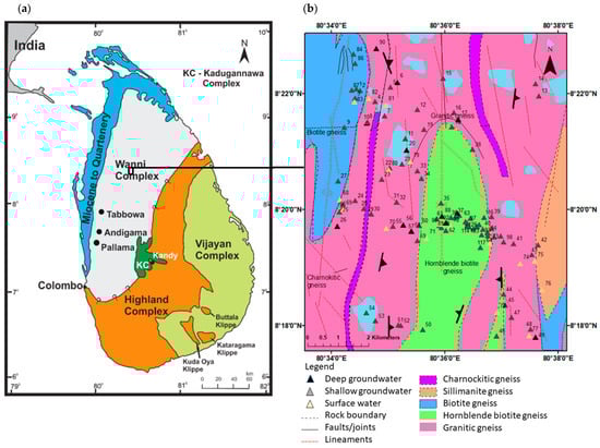 - Udeshani, W.A.C.; Koralegedara, N.H.; Gunatilake, S.K.; Li, S.L.; Zhu, X.; Chandrajith, R. Geochemistry of Groundwater in the Semi-Arid Crystalline Terrain of Sri Lanka and Its Health Implications among Agricultural Communities. Water 2022, 14, 3241. [Google Scholar] [CrossRef]