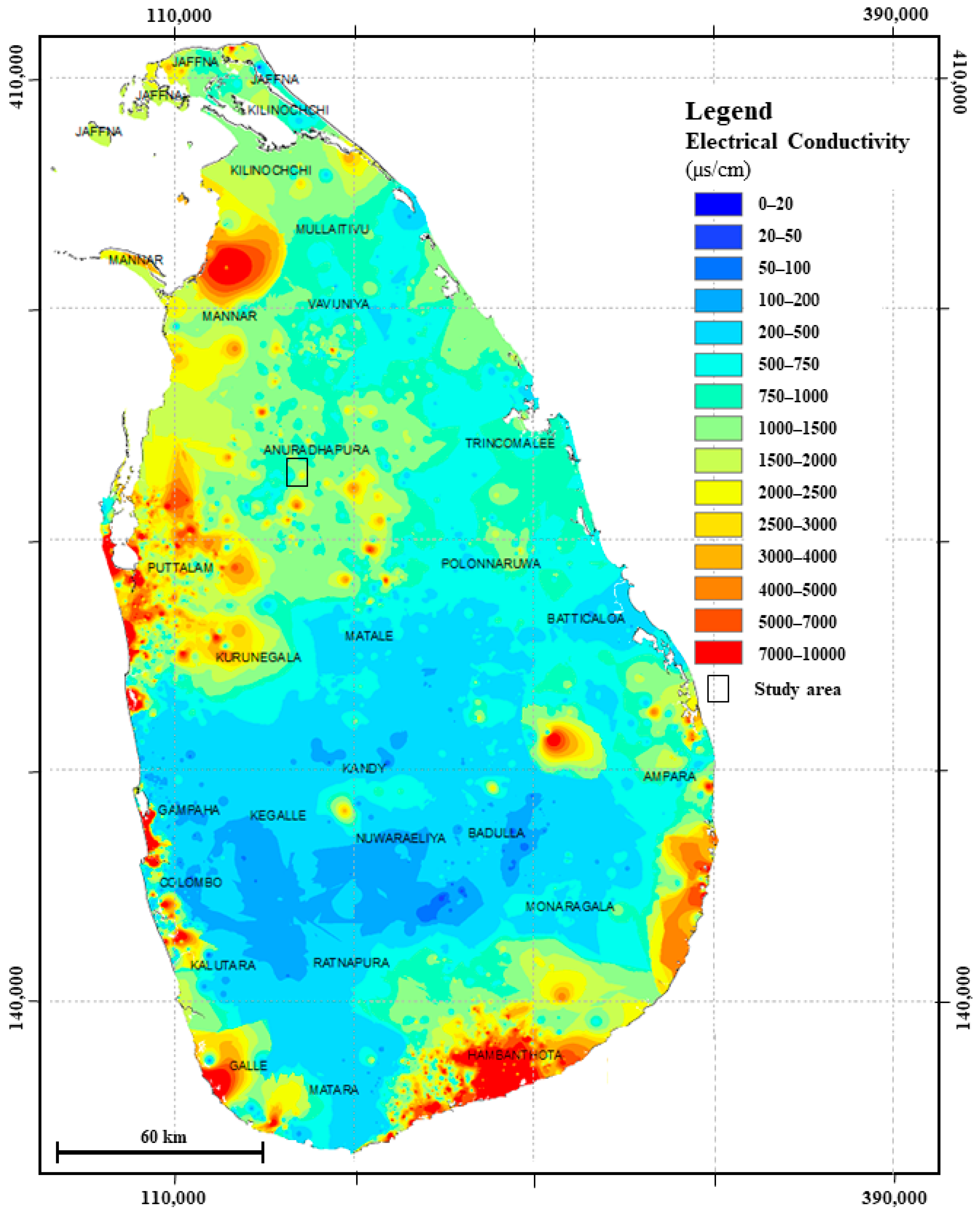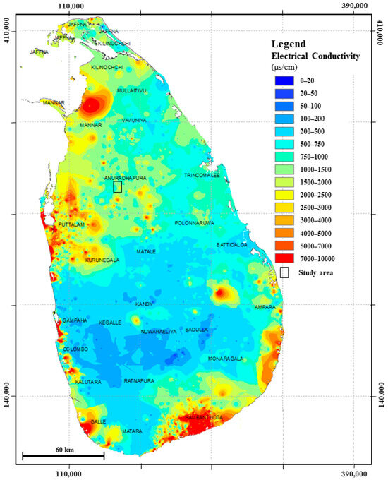 - Water Resources Board. Distribution of Electrical Conductivity of Groundwater—Water Resources Board. Water Resources Board. Available online: https://wrb.lk/distribution-of-electrical-conductivity-of-groundwater/ (accessed on 13 December 2025).