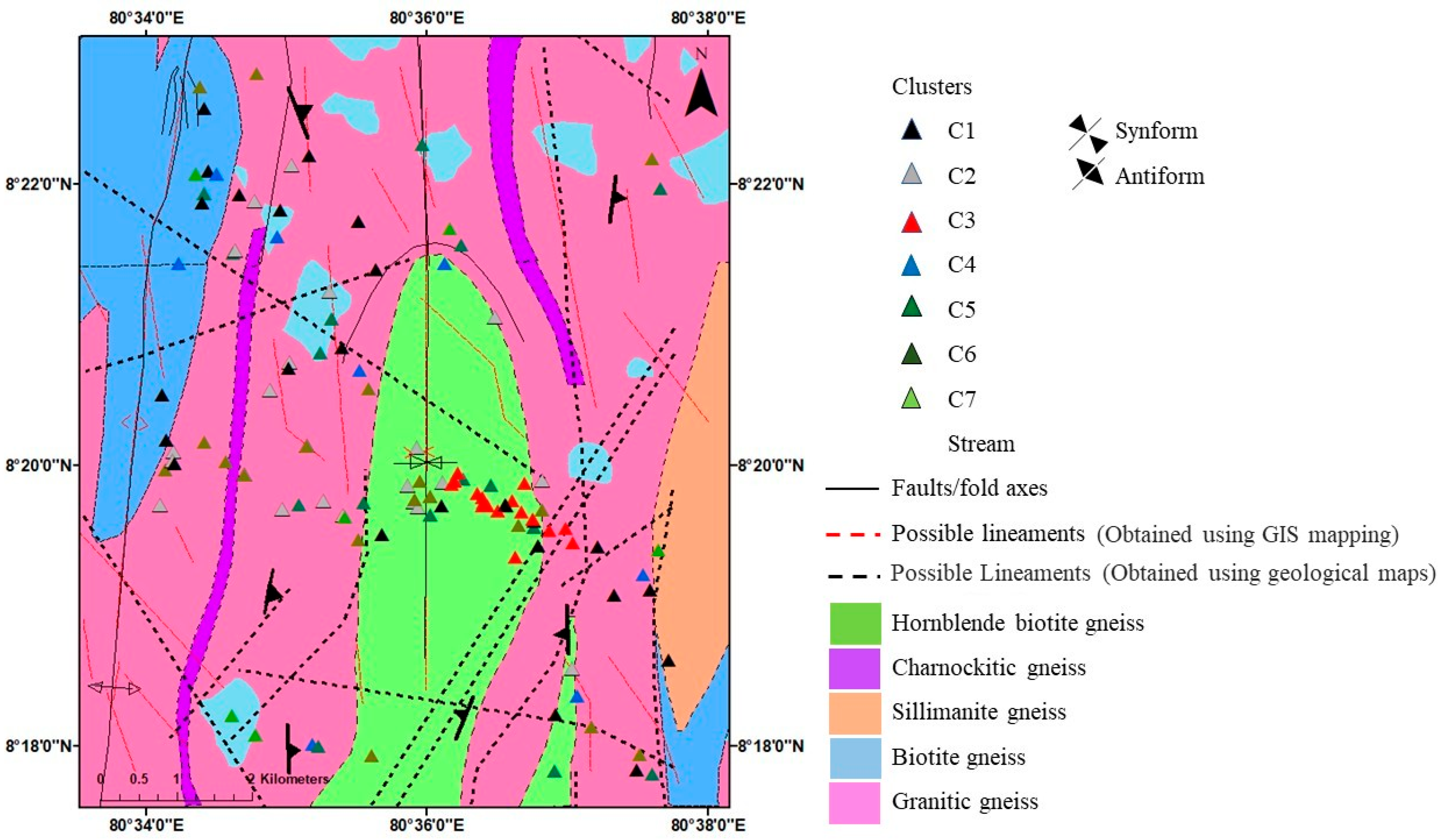 2.1.4. Lithological and Structural Pattern Distribution of the Study Area