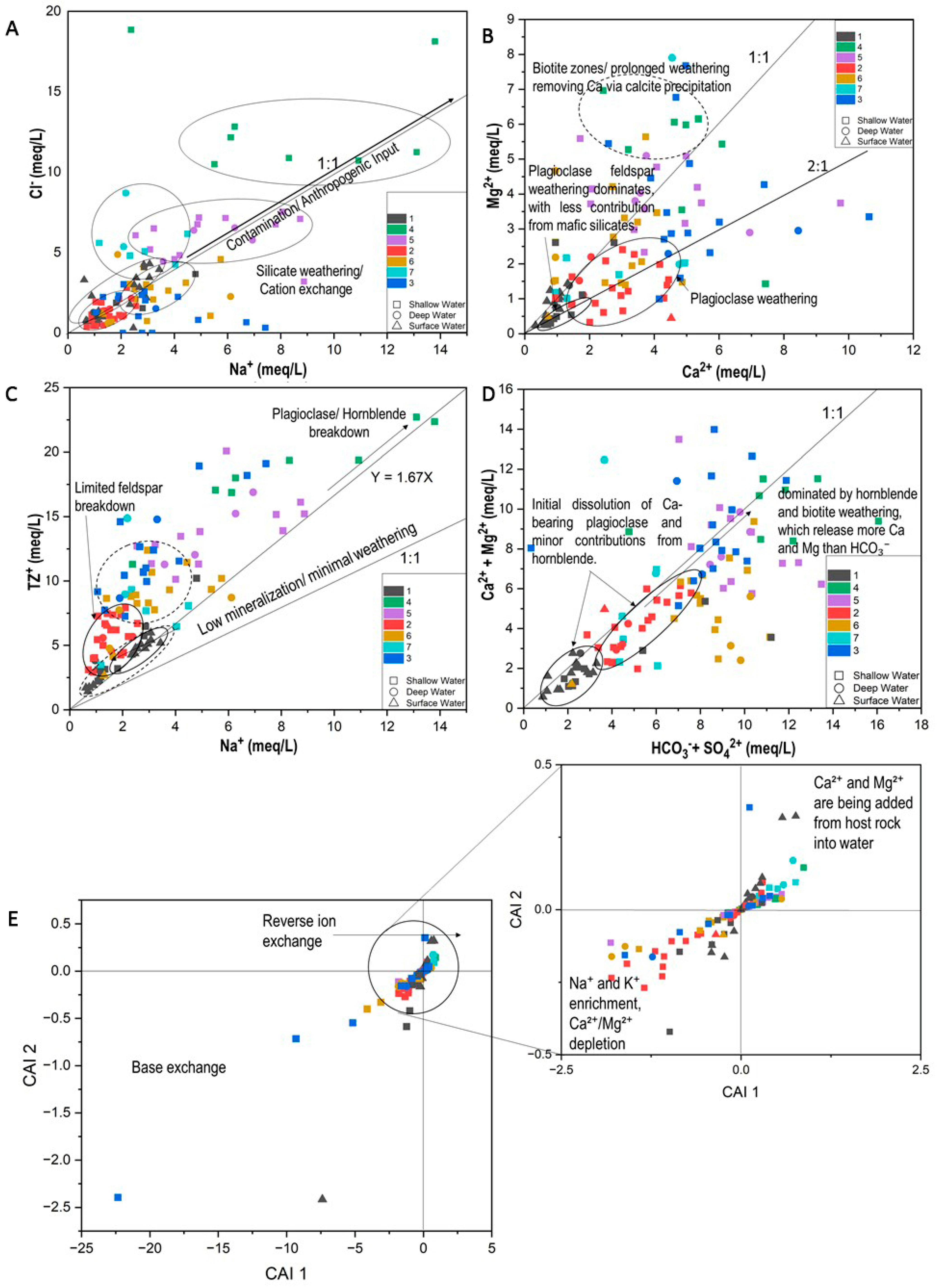 3.7. Hydro-Geochemical Processes and Groundwater Cluster Evolution