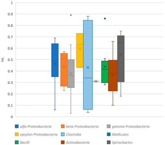 The Spirochaetes phylum exhibits the highest level of genetic variability, with a heterozygosity (HS) value of 0.54. This phylum includes several human pathogens known for their characteristic spiral cell shape. Within the second family of this phylum, the HS parameter for Serpulina species varies significantly, ranging from 0.18 to 0.62. In contrast, bacteria from the Firmicutes phylum demonstrate a lower level of genetic variability. These bacteria have strong cell membranes, similar to those found in Gram-positive organisms. Variations in HS values are observed among families, such as Aeromonas and Streptococcus, as well as among species within the Clostridium genus (Table 2) [86]. The Actinobacteria phylum shows the lowest genetic diversity, as indicated by enzymatic traits (HS = 0.33). These organisms often form specific fungal-like colonies. Among the Actinobacteria, the Mycobacteriaceae family displays notable variability, with a wide range of HS values.