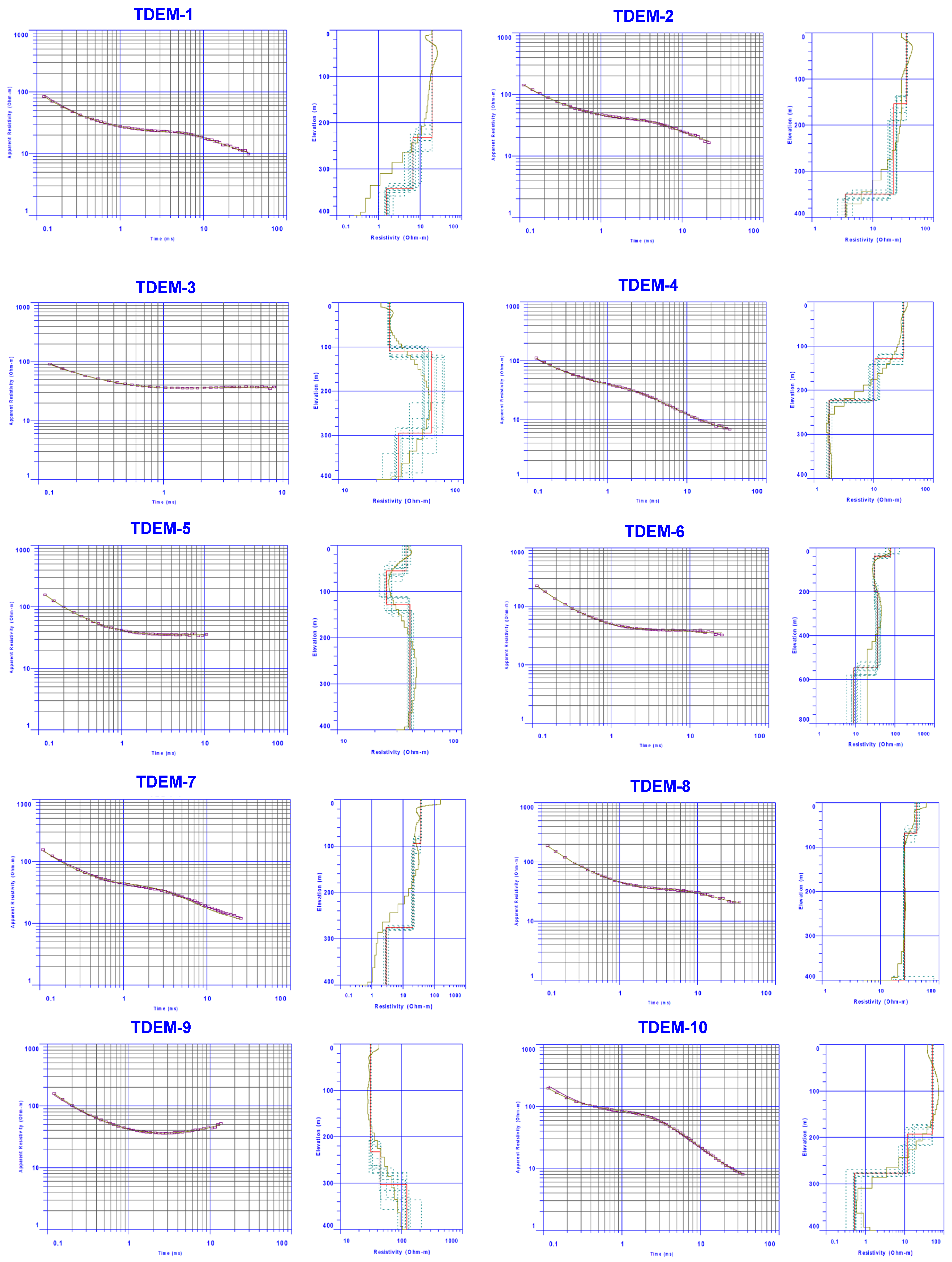All ten inverted TDEM models, including the electro-layer structure, are presented in