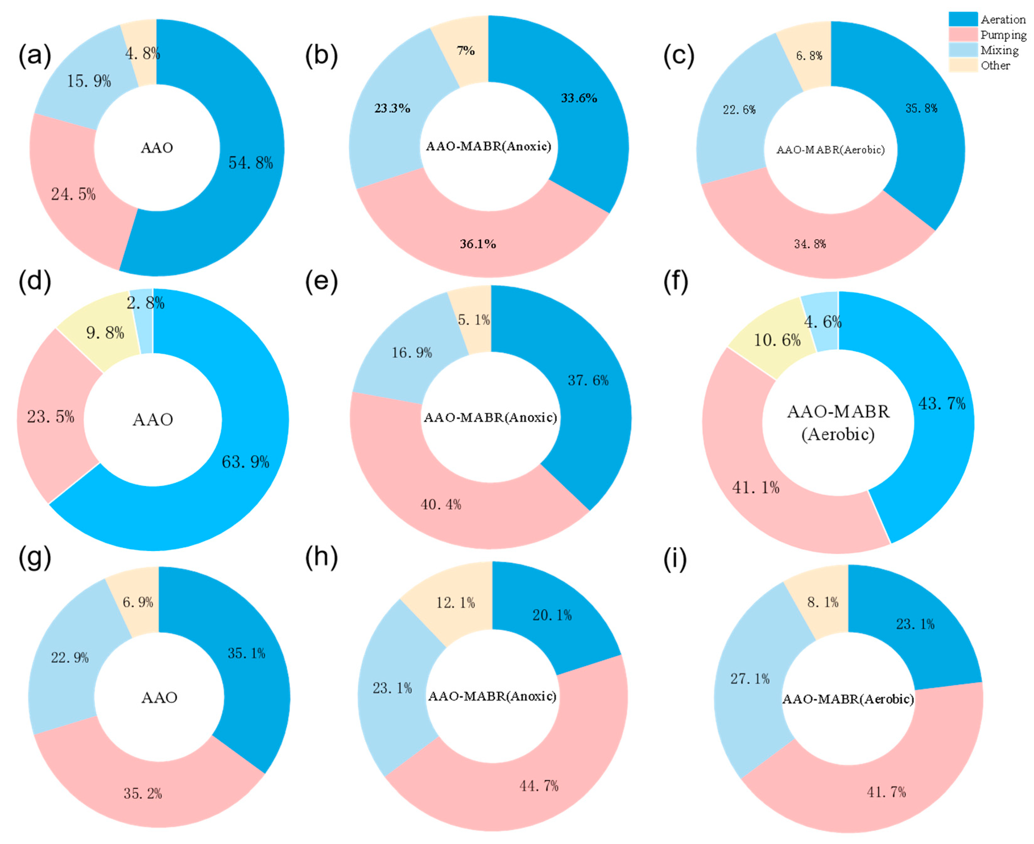 - Su, S.; Wang, C.; Lu, C.; Zhao, W.; Liu, C.; Chen, D.; Jiang, B.; Fan, X.; Zhao, Z.; Chen, Y.; et al. Carbon emissions from rural wastewater treatment using the anoxic-anaerobic-oxic membrane bioreactor process. J. Clean. Prod. 2025, 510, 145640. [Google Scholar] [CrossRef]