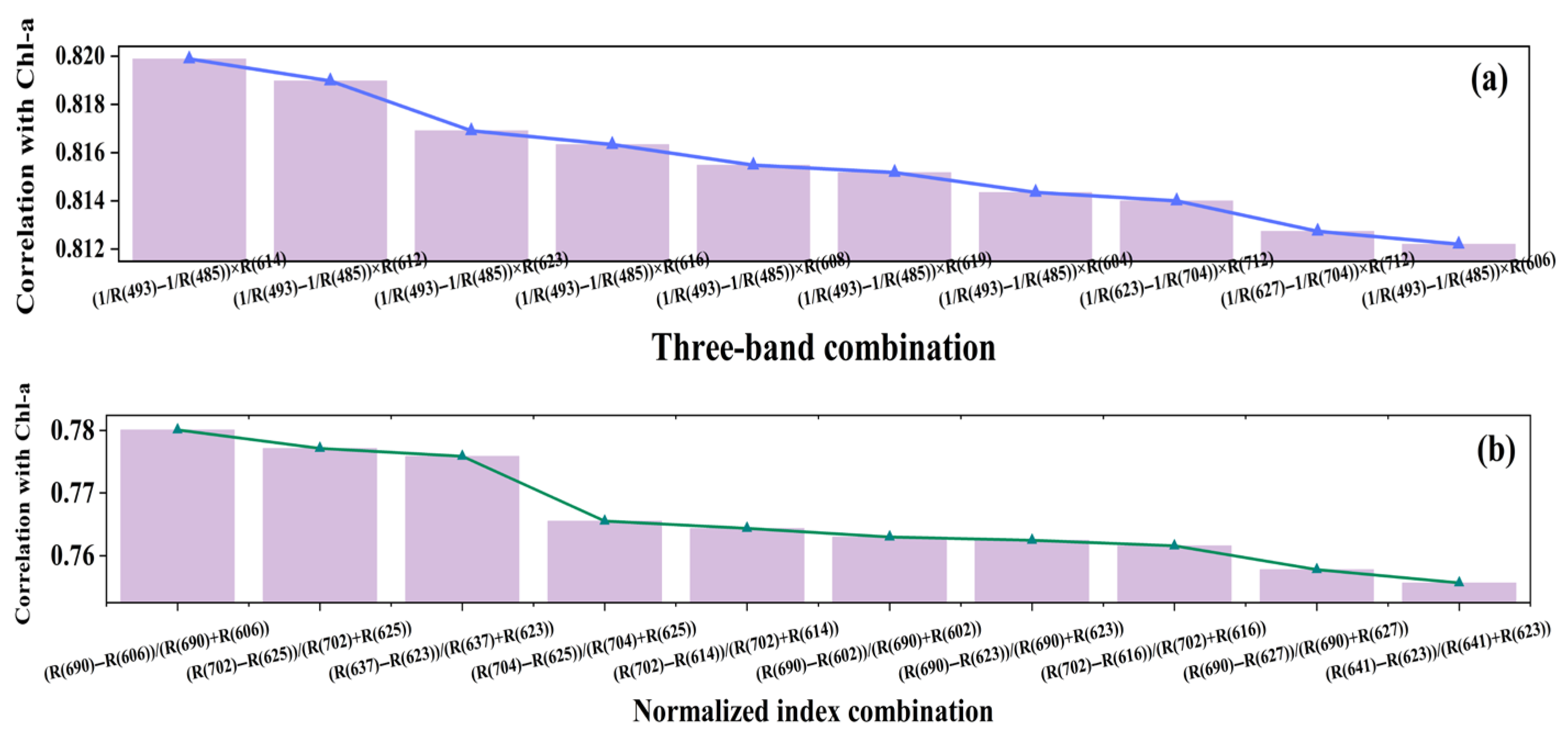 2 = 0.80); Three-band combinations, normalized indices, and band ratio combinations outperformed band difference combinations, with R