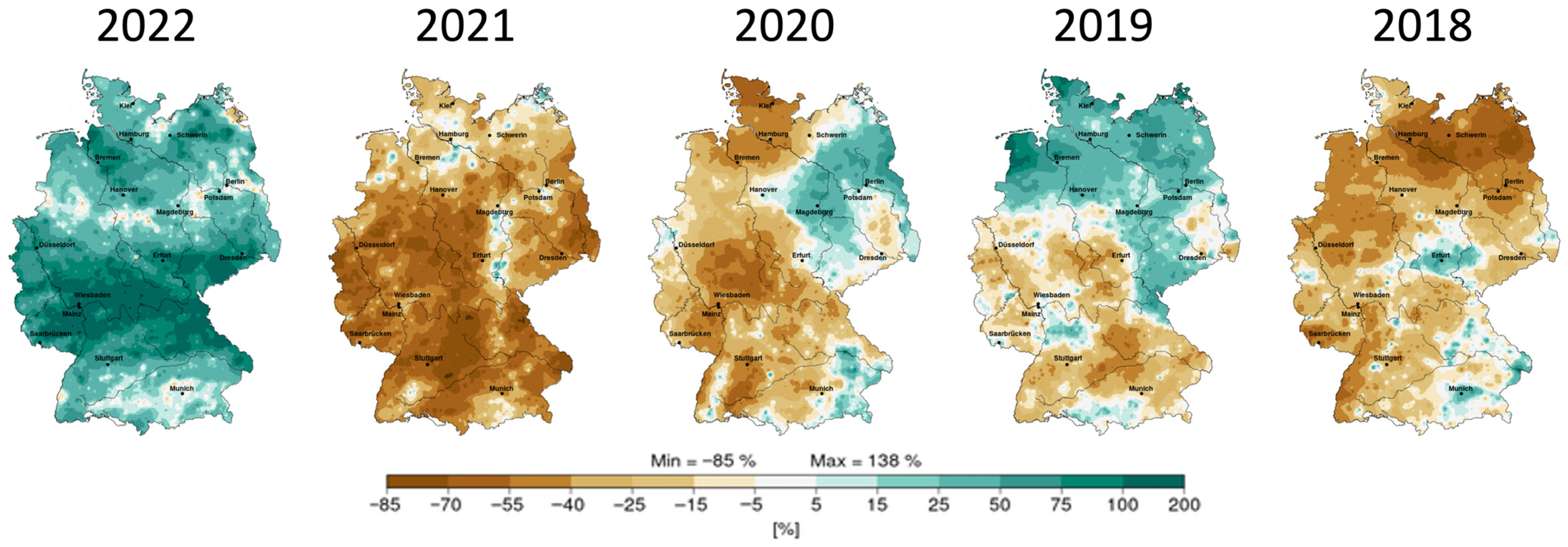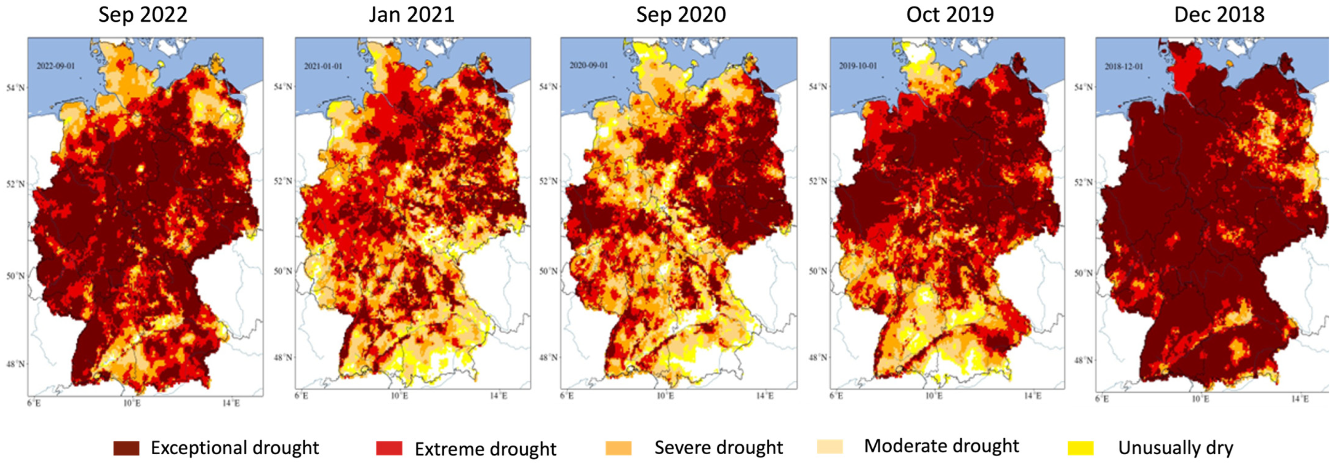 | 6.3 The soil moisture in the potential application area was so low in the last 5 years that the Drought Monitor for the total soil column indicated a drought in the month with the highest drought level … Drought categories are indicated according to UFZ (see [93]) | 1 | x | 5 | ||||